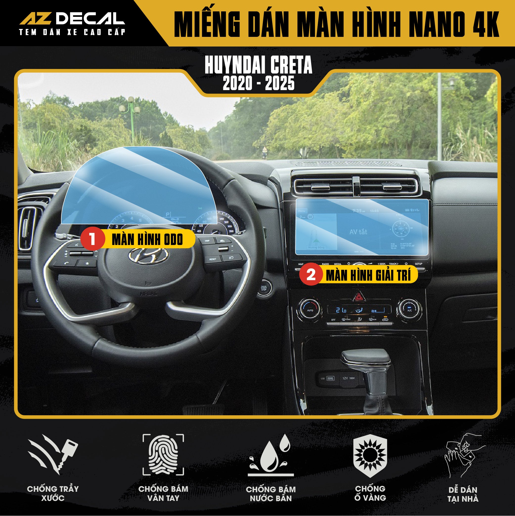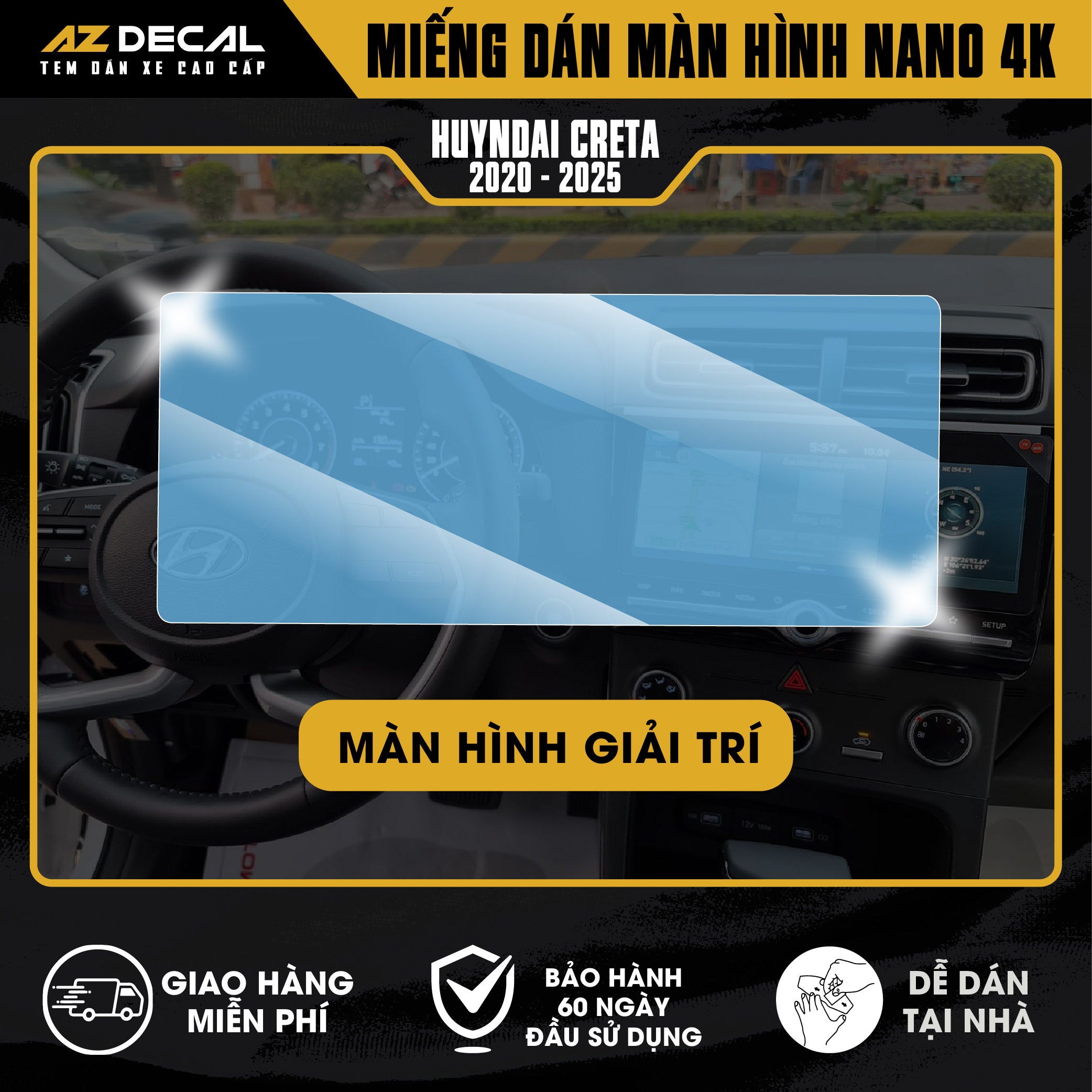 Dán bảo vệ màn hình ô tô Hyundai CRETA 2020-2025 Nano 4K chống trầy xước tốt nhất, bền bỉ chất lượng. Film dán cao cấp có độ trong cao cho độ hiển thị sắc nét như màn hình chính đồng thời còn giúp chống phản chiếu chống chói bám vân tay vệ sinh lau chùi dễ dàng.