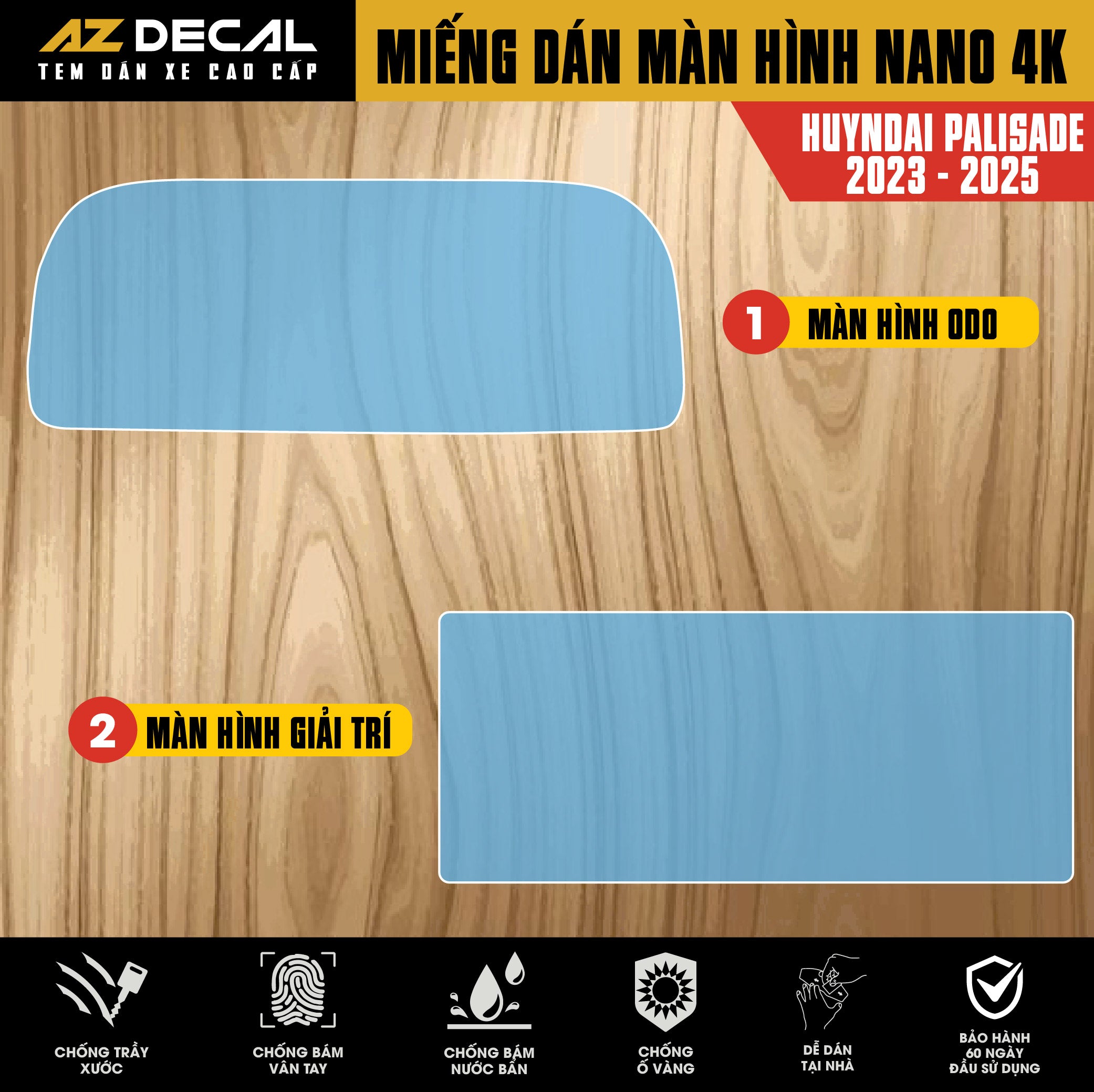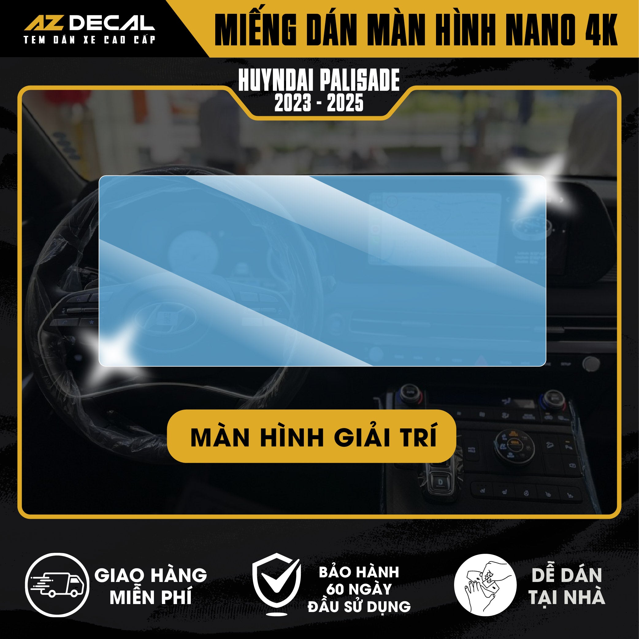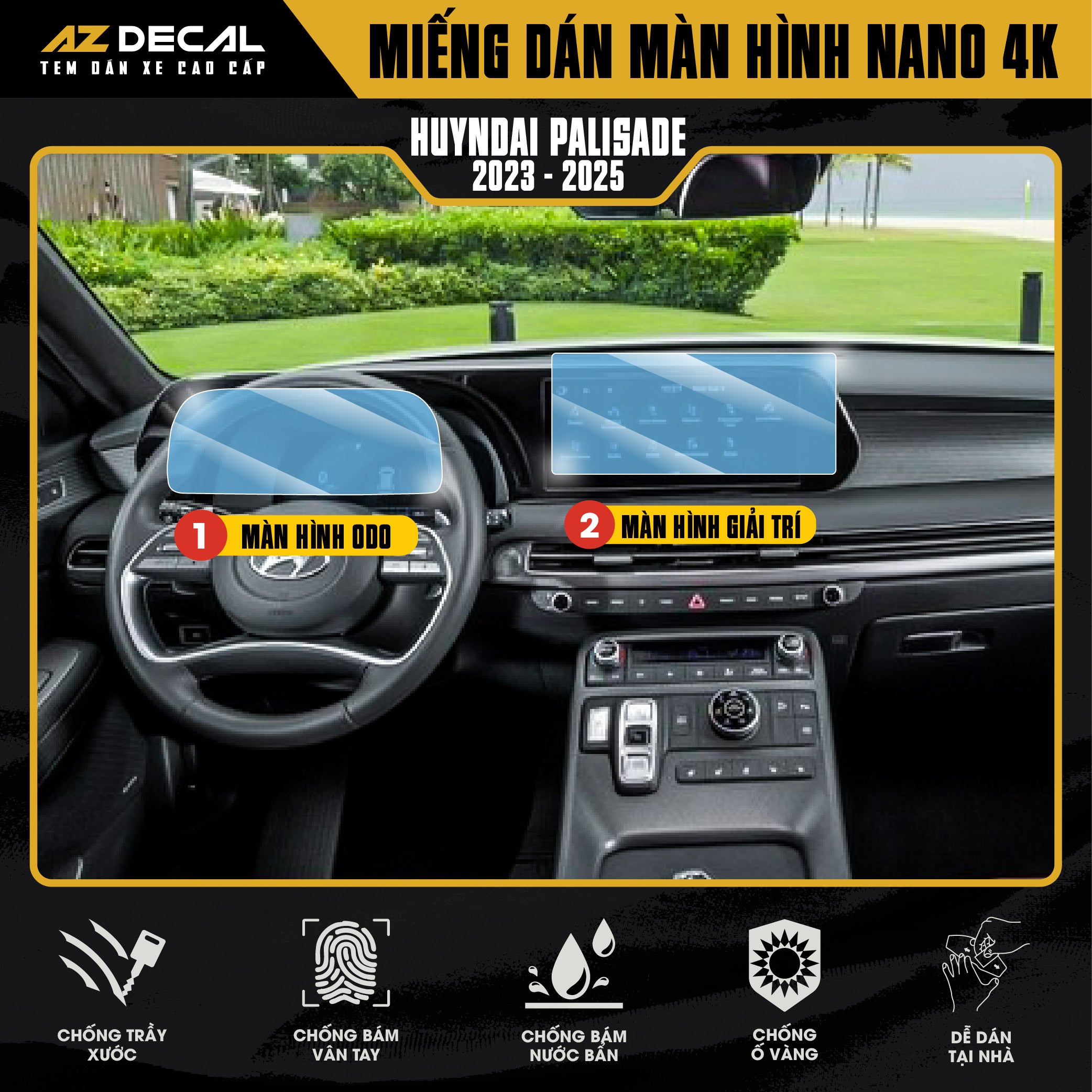 Dán bảo vệ màn hình ô tô Hyundai PALISADE 2023-2025 Nano 4K chống trầy xước tốt nhất, bền bỉ chất lượng. Film dán cao cấp có độ trong cao cho độ hiển thị sắc nét như màn hình chính đồng thời còn giúp chống phản chiếu chống chói bám vân tay vệ sinh lau chùi dễ dàng.