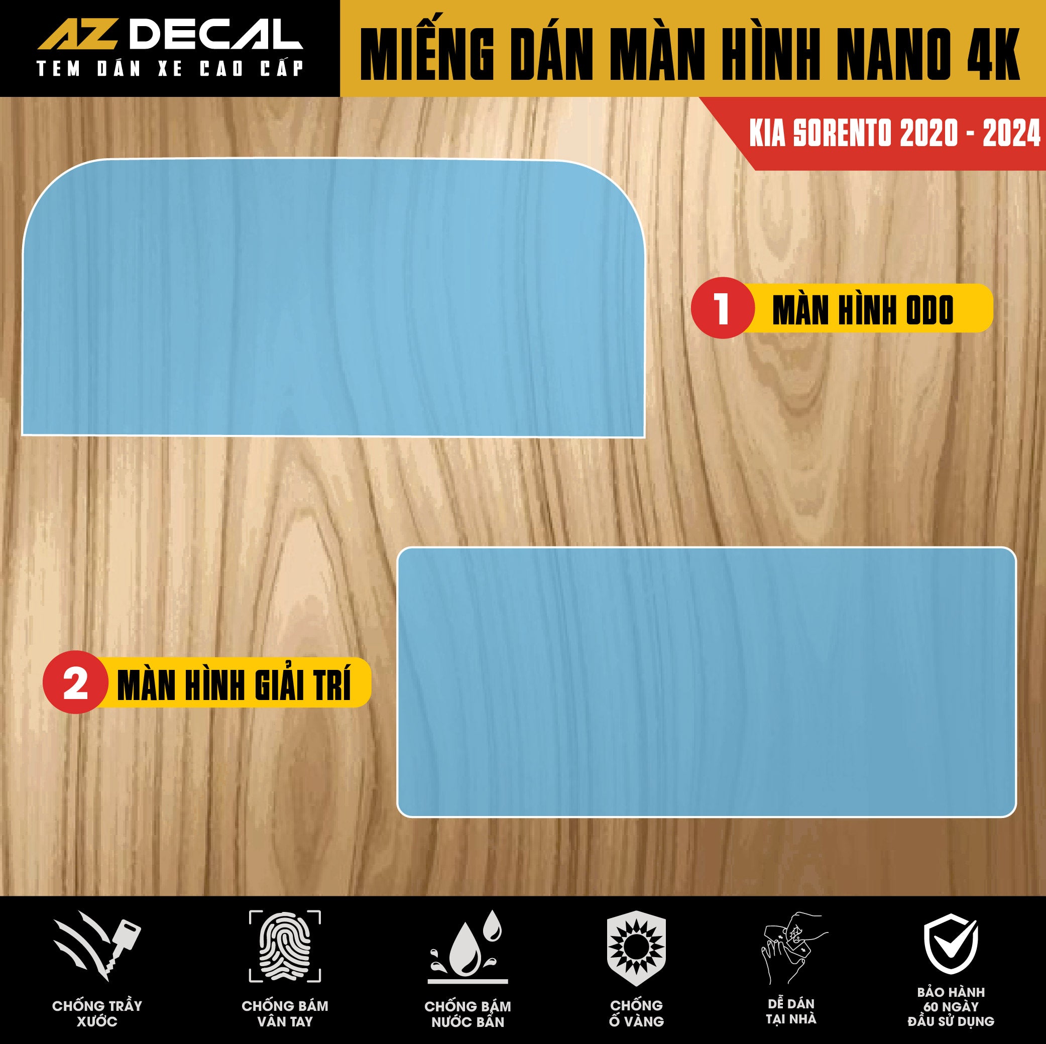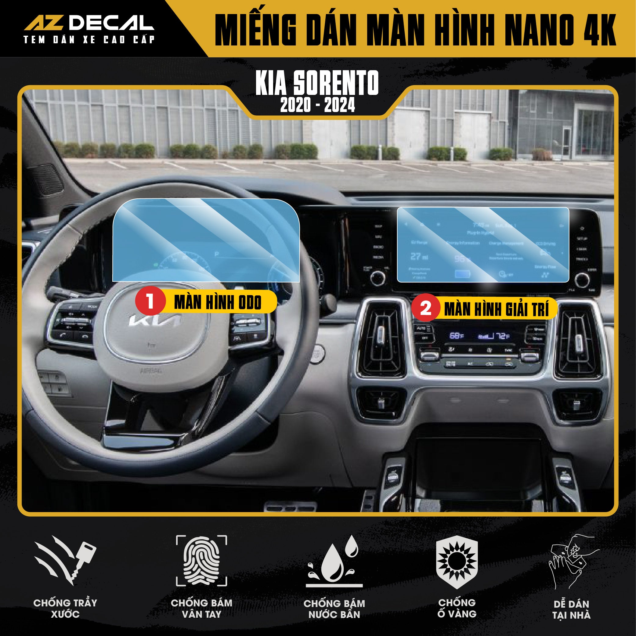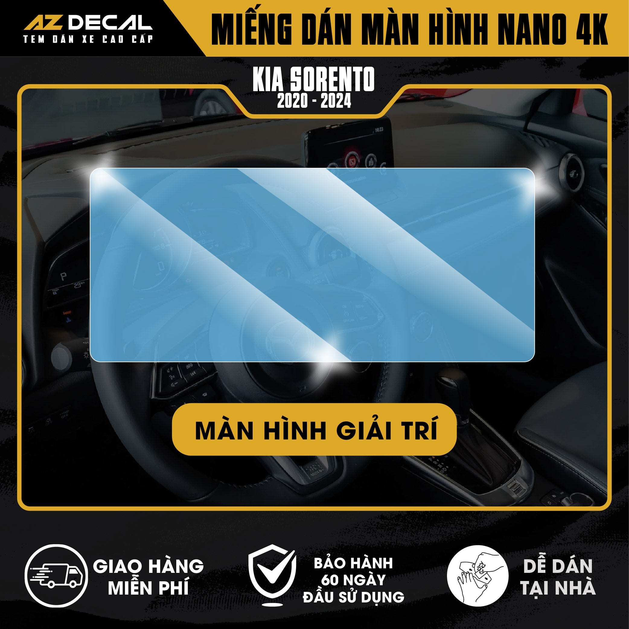 Dán bảo vệ màn hình ô tô KIA SORENTO 2020-2024 Nano 4K chống trầy xước tốt nhất, bền bỉ chất lượng. Film dán cao cấp có độ trong cao cho độ hiển thị sắc nét như màn hình chính đồng thời còn giúp chống phản chiếu chống chói bám vân tay vệ sinh lau chùi dễ dàng.