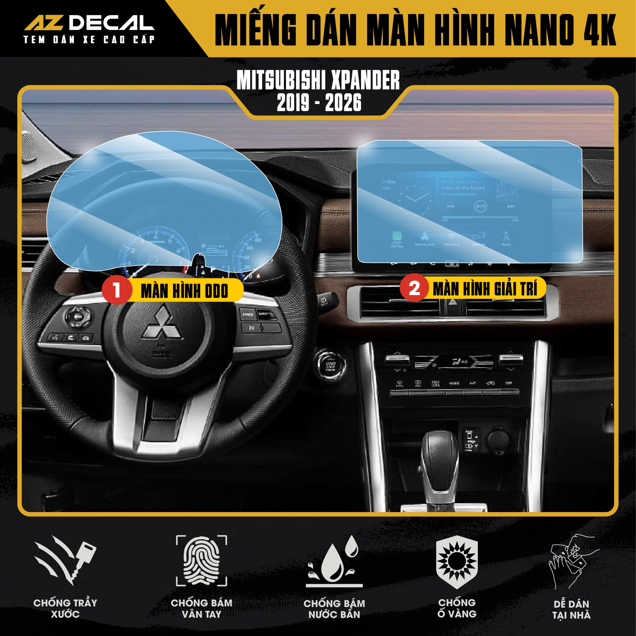 Dán bảo vệ màn hình ô tô Mitsubishi XPANDER 2019-2026 Nano 4K chống trầy xước tốt nhất, bền bỉ chất lượng. Film dán cao cấp có độ trong cao cho độ hiển thị sắc nét như màn hình chính đồng thời còn giúp chống phản chiếu chống chói bám vân tay vệ sinh lau chùi dễ dàng.