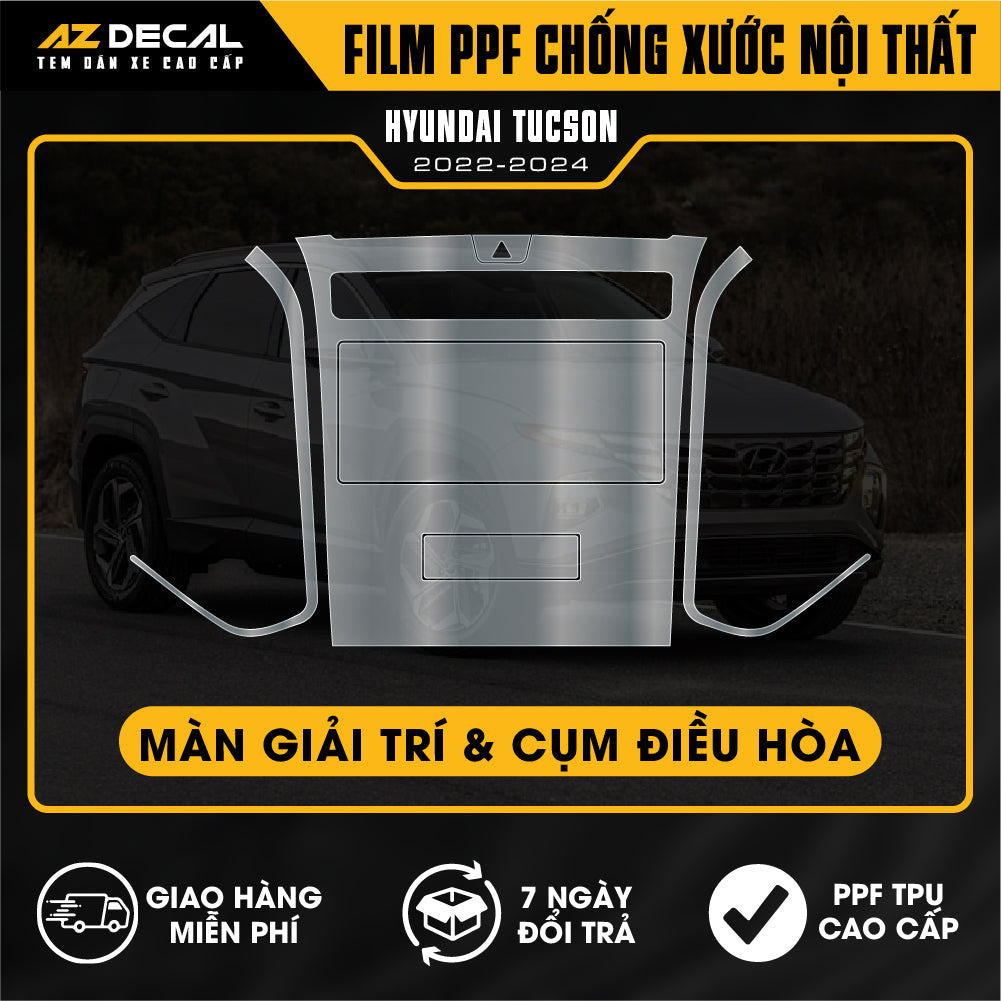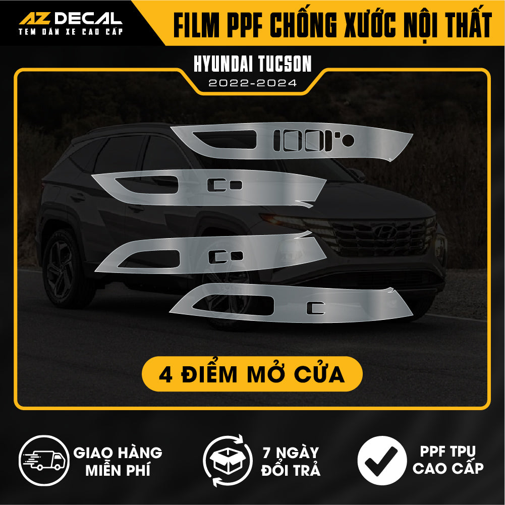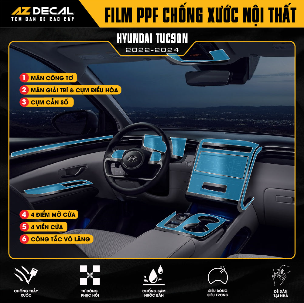 Dán PPF nội thất ô tô Hyundai Tucson - miếng dán dẻo trong suốt bảo vệ TỐT NHẤT số 1 hiện nay. Chống xước hiệu quả, tăng độ sáng bóng cho nội thất xe dán chuẩn đẹp cho các phiên bản đời khác nhau của Hyundai Tucson 2022, 2023, 2024