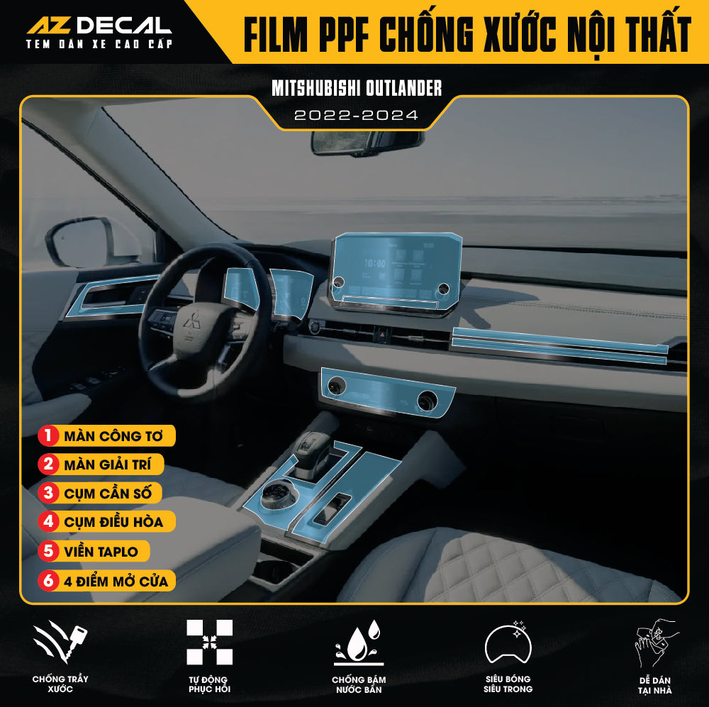 Dán PPF nội thất ô tô Mitsubishi Outlander chống xước bảo vệ tốt nhất hiện nay. Không chỉ bảo vệ mà còn giúp làm mới tăng độ sáng bóng cho nội thất xe. Dán bền bỉ không bong tróc và nói không với việc bị ố vàng - tham khảo ngay!