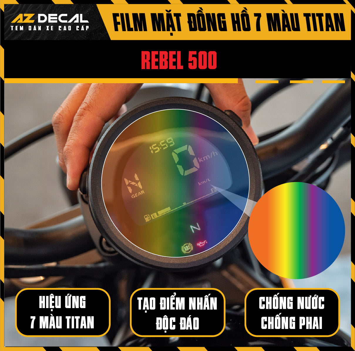 Miếng dán mặt đồng hồ 7 màu titan xe Honda Rebel 300 / 500 - Film dán bảo vệ độc đáo mang đến trải nghiệm mới lạ. Là sản phẩm mới nhất của Azdecal.vn, một phụ kiện chuyên dùng để bảo vệ mặt đồng hồ số của xe máy.