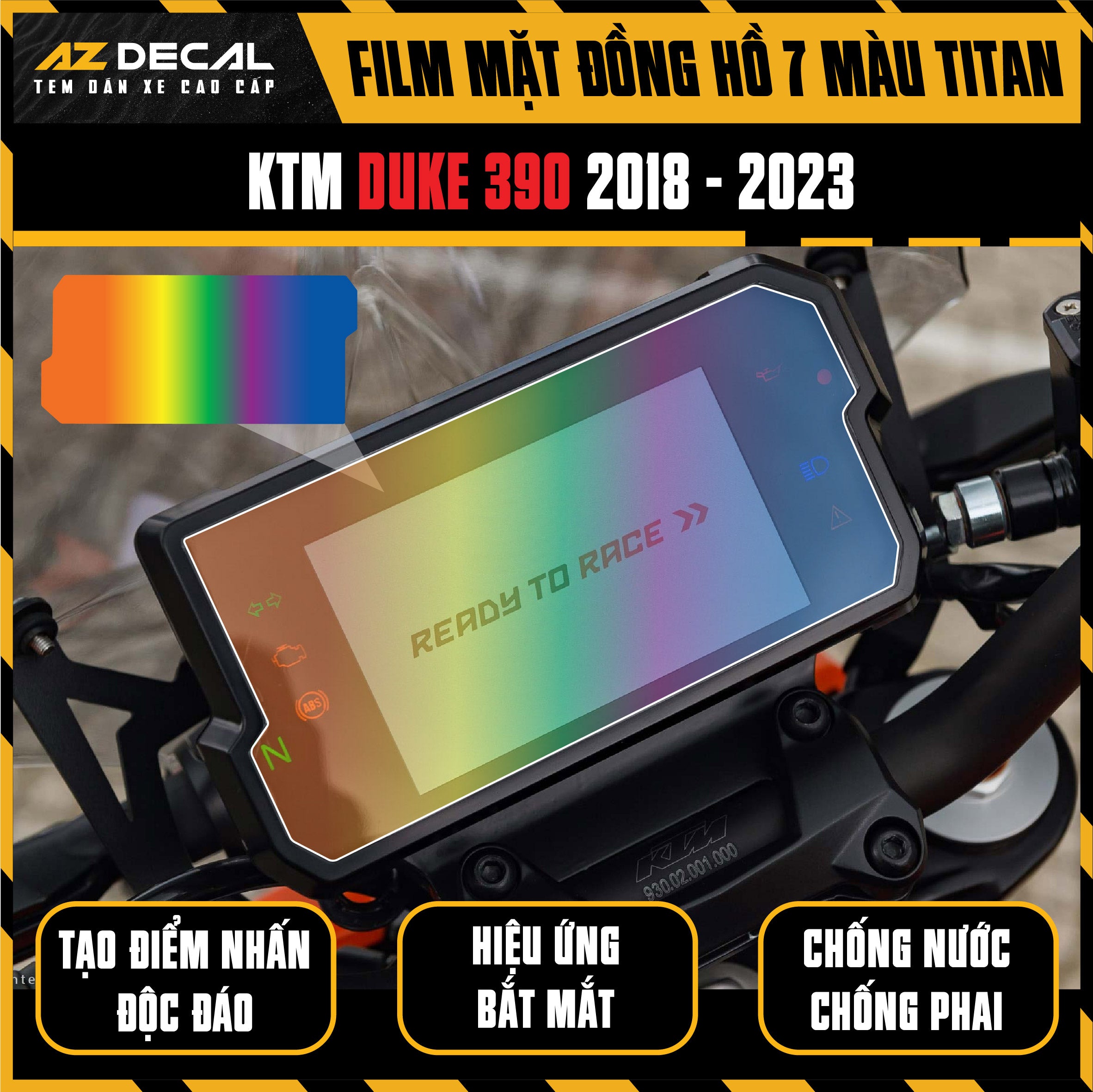 Miếng dán mặt đồng hồ 7 màu titan xe KTM DUKE 390 2018-2023 - Film dán bảo vệ độc đáo mang đến trải nghiệm mới lạ. Là sản phẩm mới nhất của Azdecal.vn, một phụ kiện chuyên dùng để bảo vệ mặt đồng hồ số của xe máy.