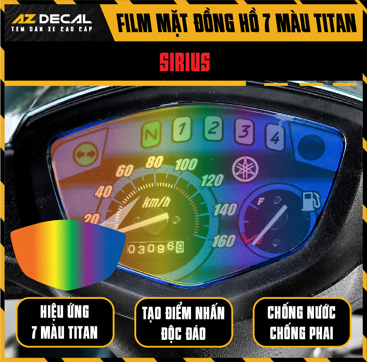 Miếng dán mặt đồng hồ 7 màu titan xe Yamaha Sirius - Film dán bảo vệ độc đáo mang đến trải nghiệm mới lạ. Là sản phẩm mới nhất của Azdecal.vn, một phụ kiện chuyên dùng để bảo vệ mặt đồng hồ số của xe máy.