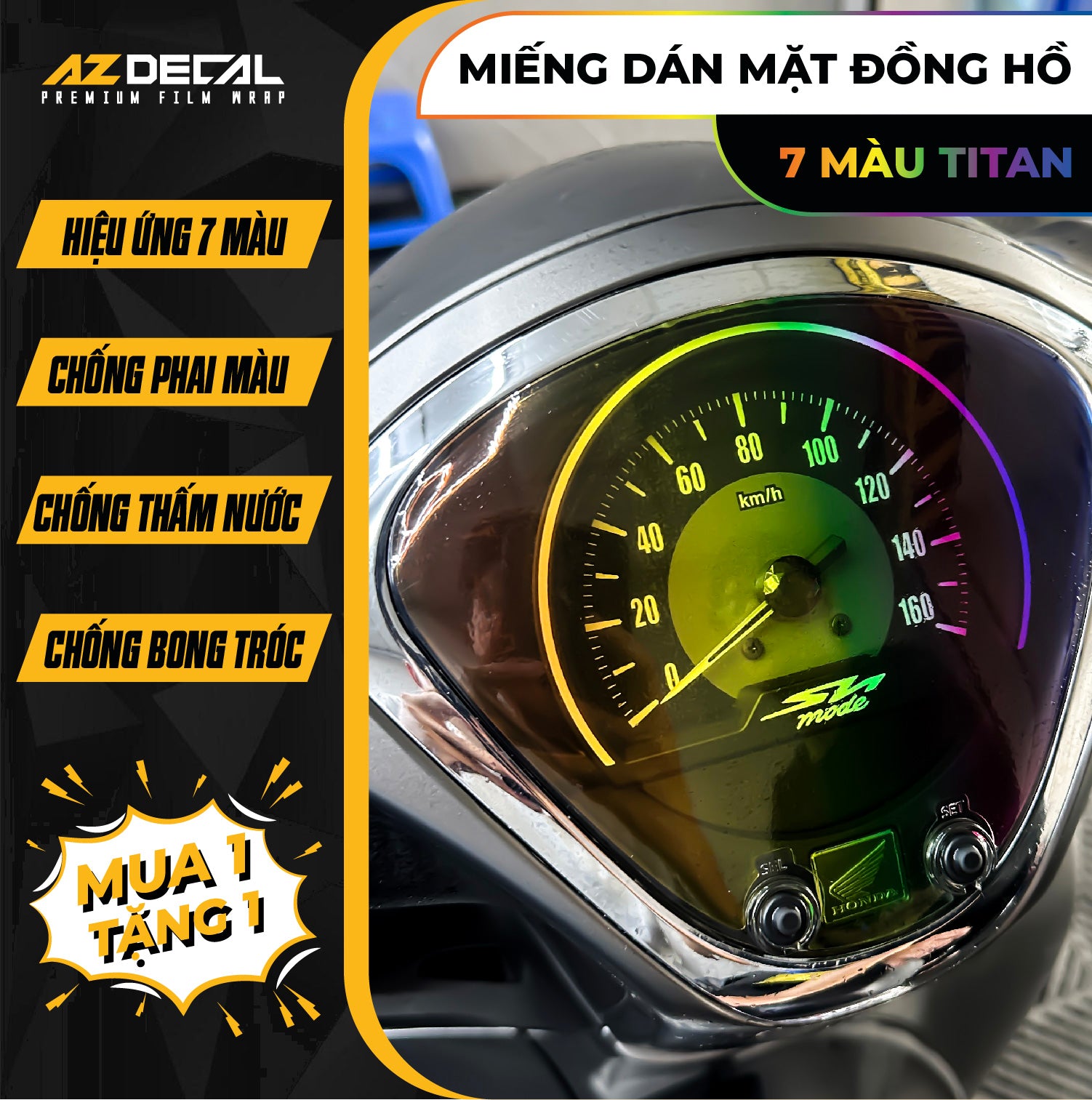 Miếng dán mặt đồng hồ 7 màu titan xe Yamaha Freego - Film dán bảo vệ độc đáo mang đến trải nghiệm mới lạ. Là sản phẩm mới nhất của Azdecal.vn, một phụ kiện chuyên dùng để bảo vệ mặt đồng hồ số của xe máy.