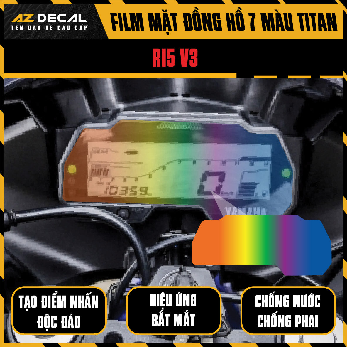 Miếng dán mặt đồng hồ 7 màu titan xe Yamaha R15 V3 - Film dán bảo vệ độc đáo mang đến trải nghiệm mới lạ. Là sản phẩm mới nhất của Azdecal.vn, một phụ kiện chuyên dùng để bảo vệ mặt đồng hồ số của xe máy.