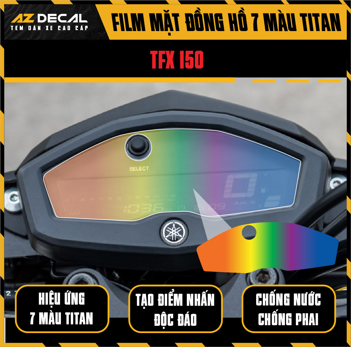 Miếng dán mặt đồng hồ 7 màu titan xe Yamaha TFX 150 - Film dán bảo vệ độc đáo mang đến trải nghiệm mới lạ. Là sản phẩm mới nhất của Azdecal.vn, một phụ kiện chuyên dùng để bảo vệ mặt đồng hồ số của xe máy.