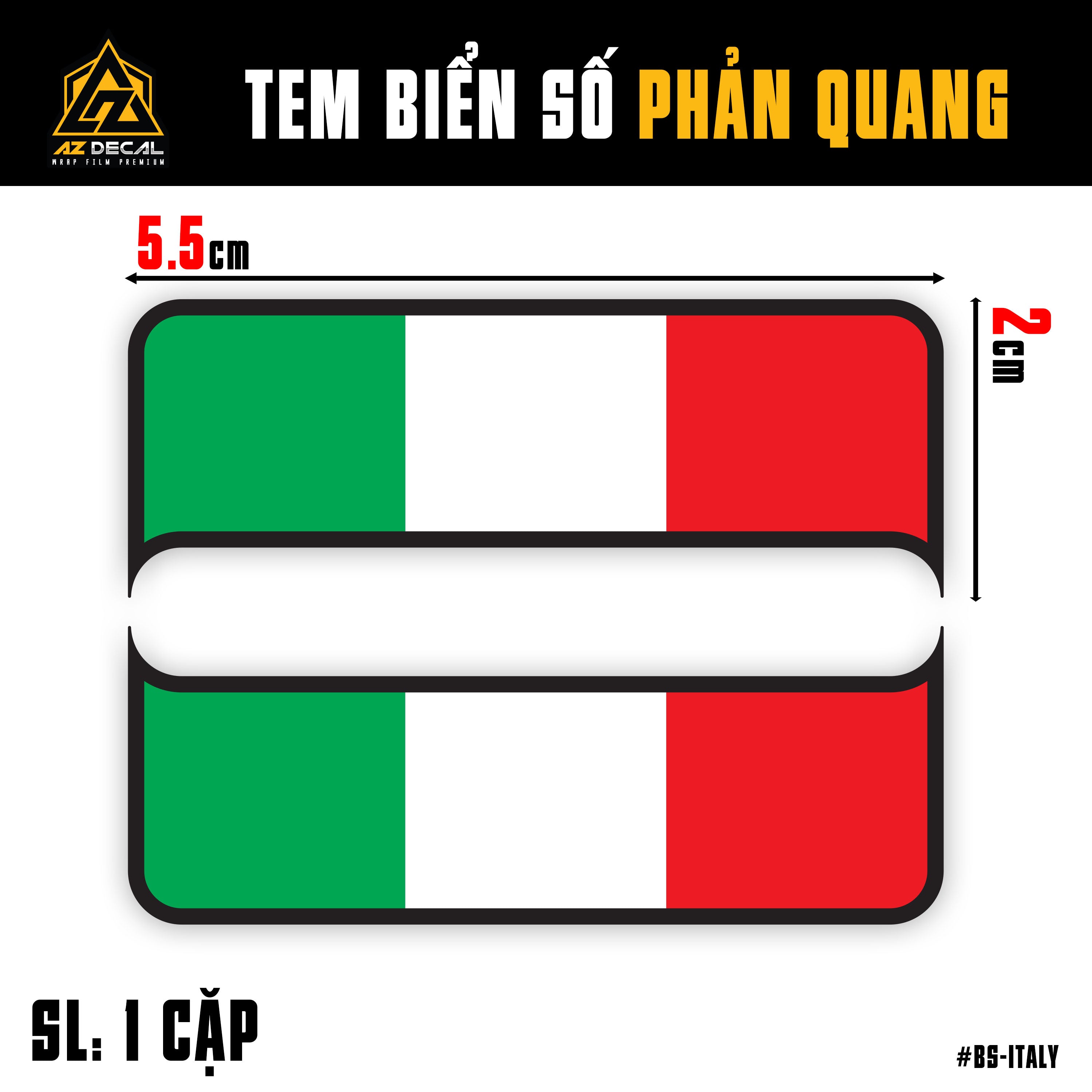 Tem phản quang dán biển số xe máy mẫu cờ các nước Italia, Đức, Anh, Nhật, Pháp, in trên chất liệu decal cao cấp chống nước, chống phai màu, bám dính chắc chắn.