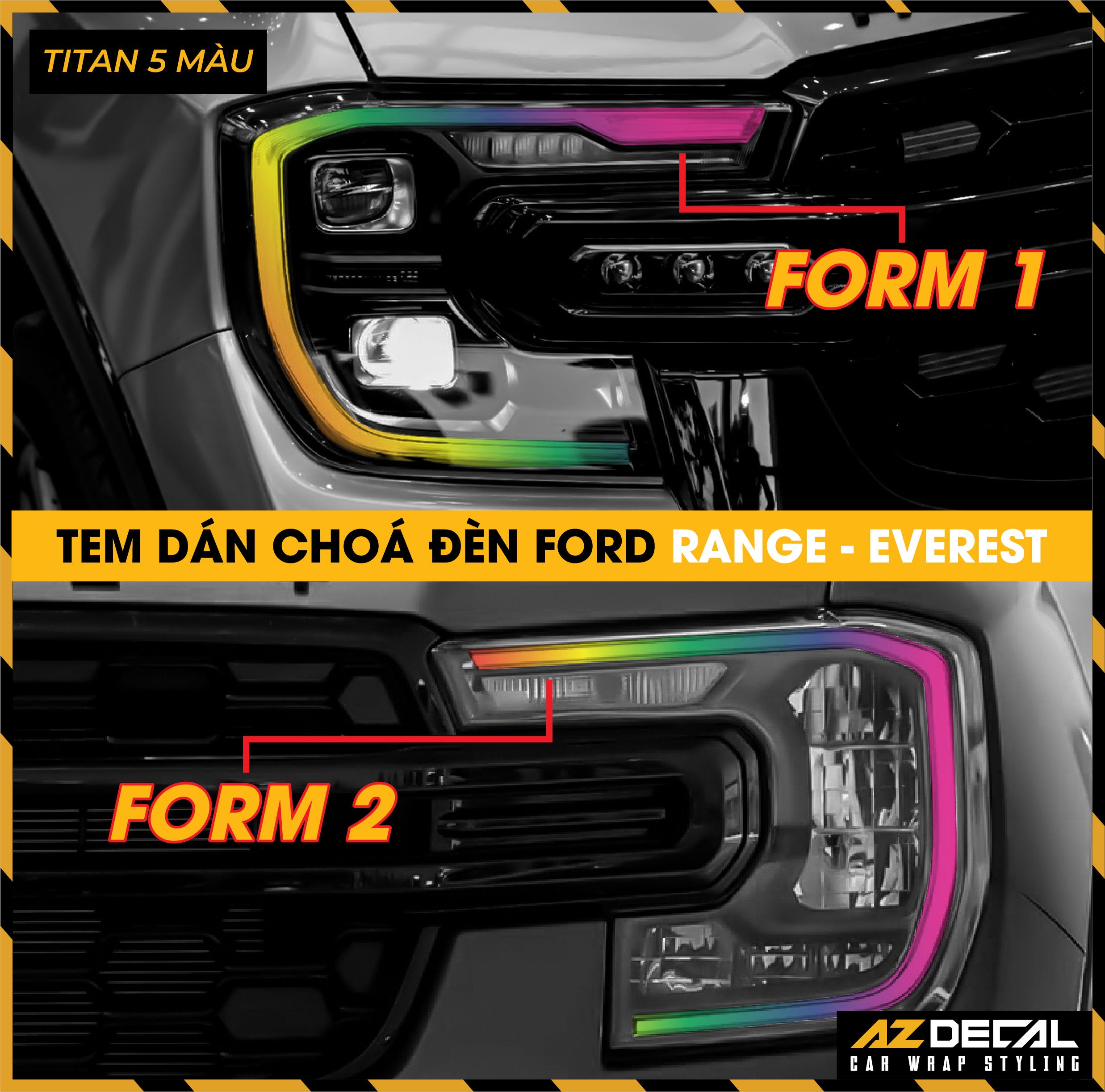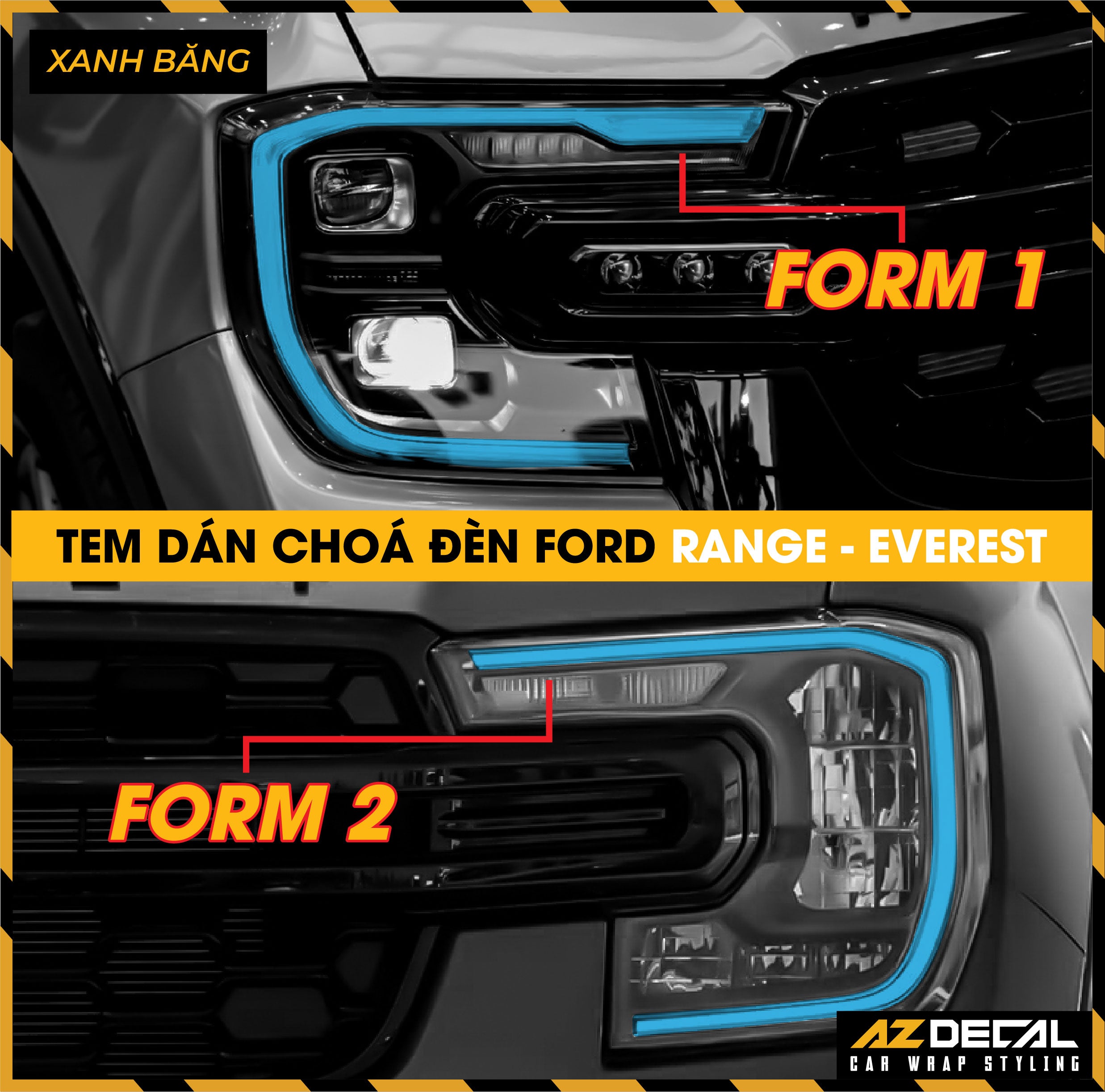 Tem dán choá đèn ô tô Ford Ranger / Everest bảo vệ và trang trí độc đáo tạo điểm nhấn mới lạ. Film dán cao cấp chống thấm nước phai màu, che dấu vết xước cũ chống trầy xước hiệu quả.