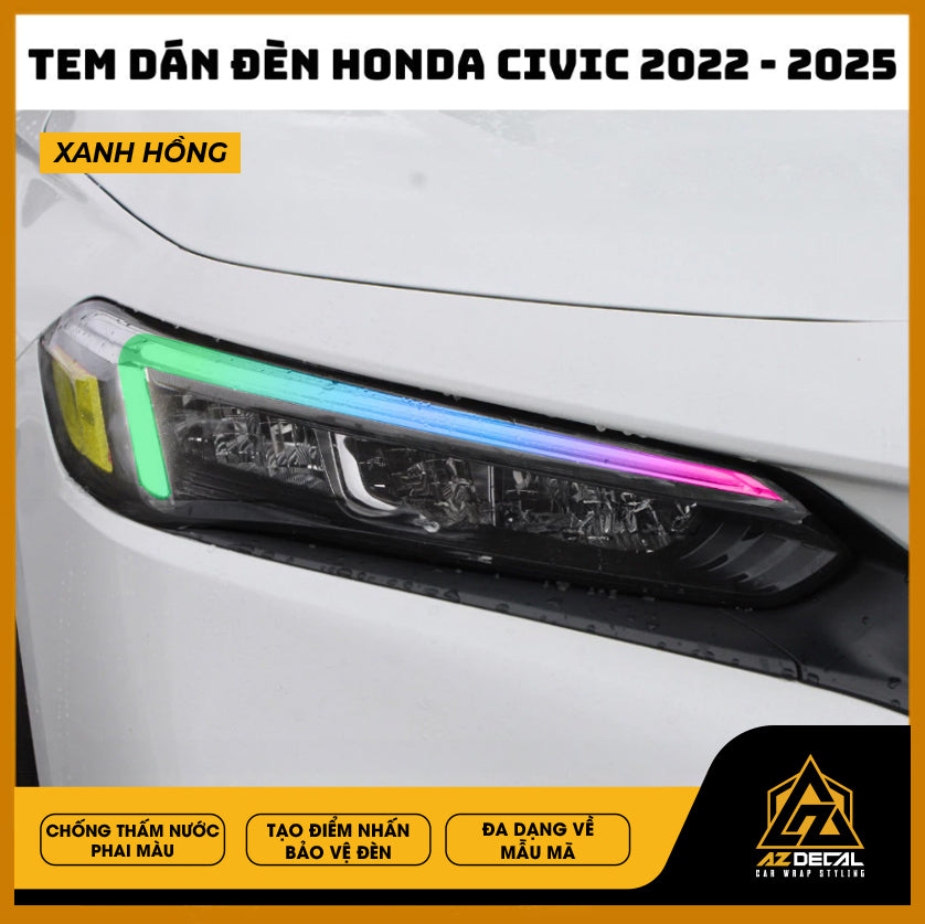 Tem dán choá đèn ô tô Honda Civic 2022-2025 bảo vệ và trang trí độc đáo tạo điểm nhấn mới lạ. Film dán cao cấp chống thấm nước phai màu, che dấu vết xước cũ chống trầy xước hiệu quả.
