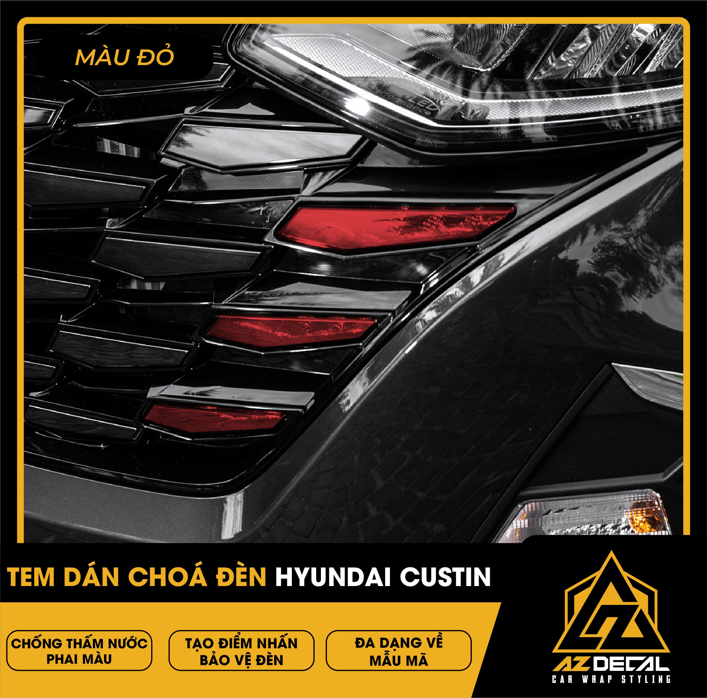Tem dán choá đèn ô tô Hyundai Custin bảo vệ và trang trí độc đáo tạo điểm nhấn mới lạ. Film dán cao cấp chống thấm nước phai màu, che dấu vết xước cũ chống trầy xước hiệu quả.