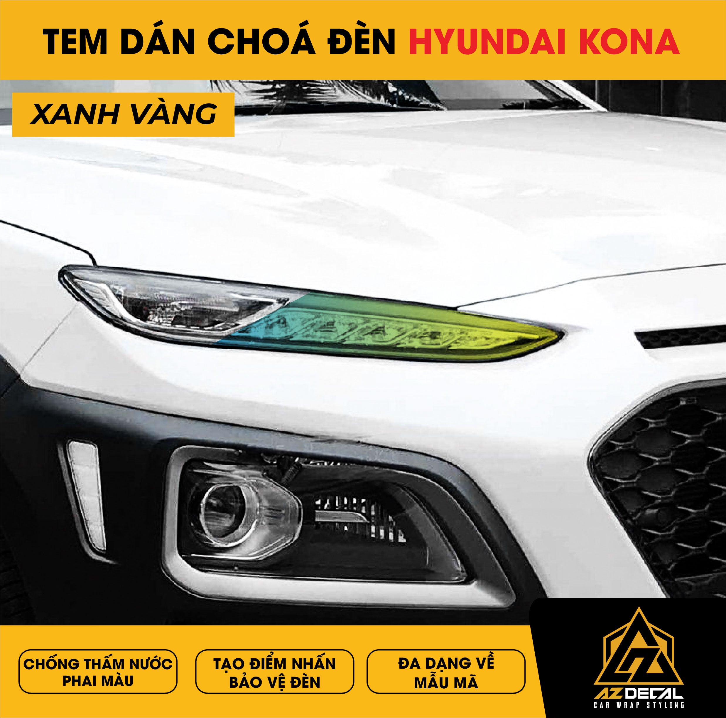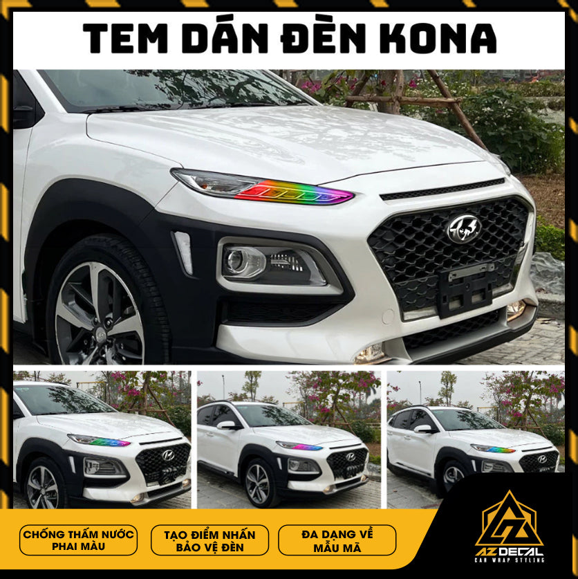Tem dán choá đèn ô tô Hyundai Kona bảo vệ và trang trí độc đáo tạo điểm nhấn mới lạ. Film dán cao cấp chống thấm nước phai màu, che dấu vết xước cũ chống trầy xước hiệu quả.