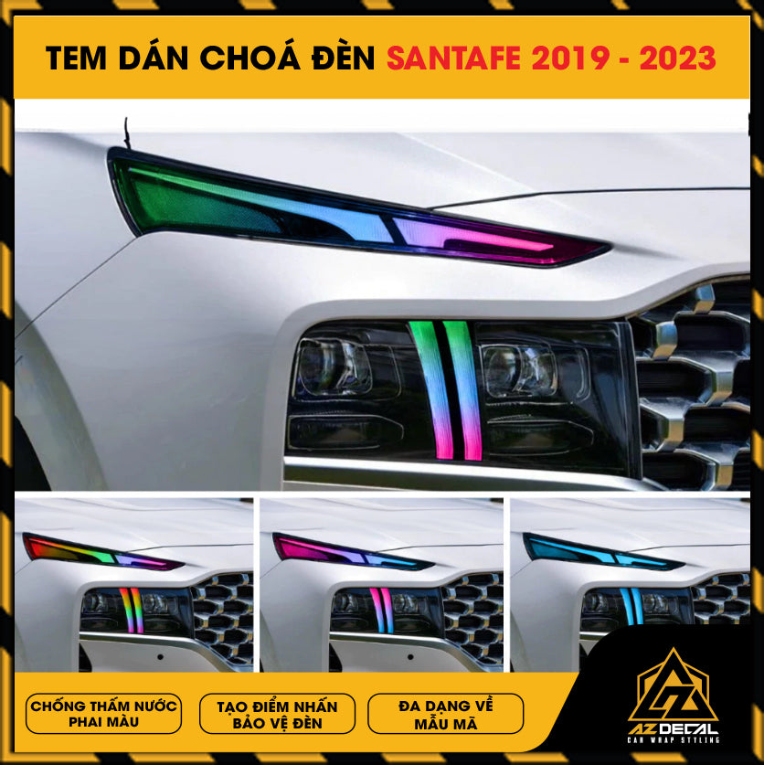 Tem dán choá đèn ô tô Hyundai Santafe 2019-2023 bảo vệ và trang trí độc đáo tạo điểm nhấn mới lạ. Film dán cao cấp chống thấm nước phai màu, che dấu vết xước cũ chống trầy xước hiệu quả.