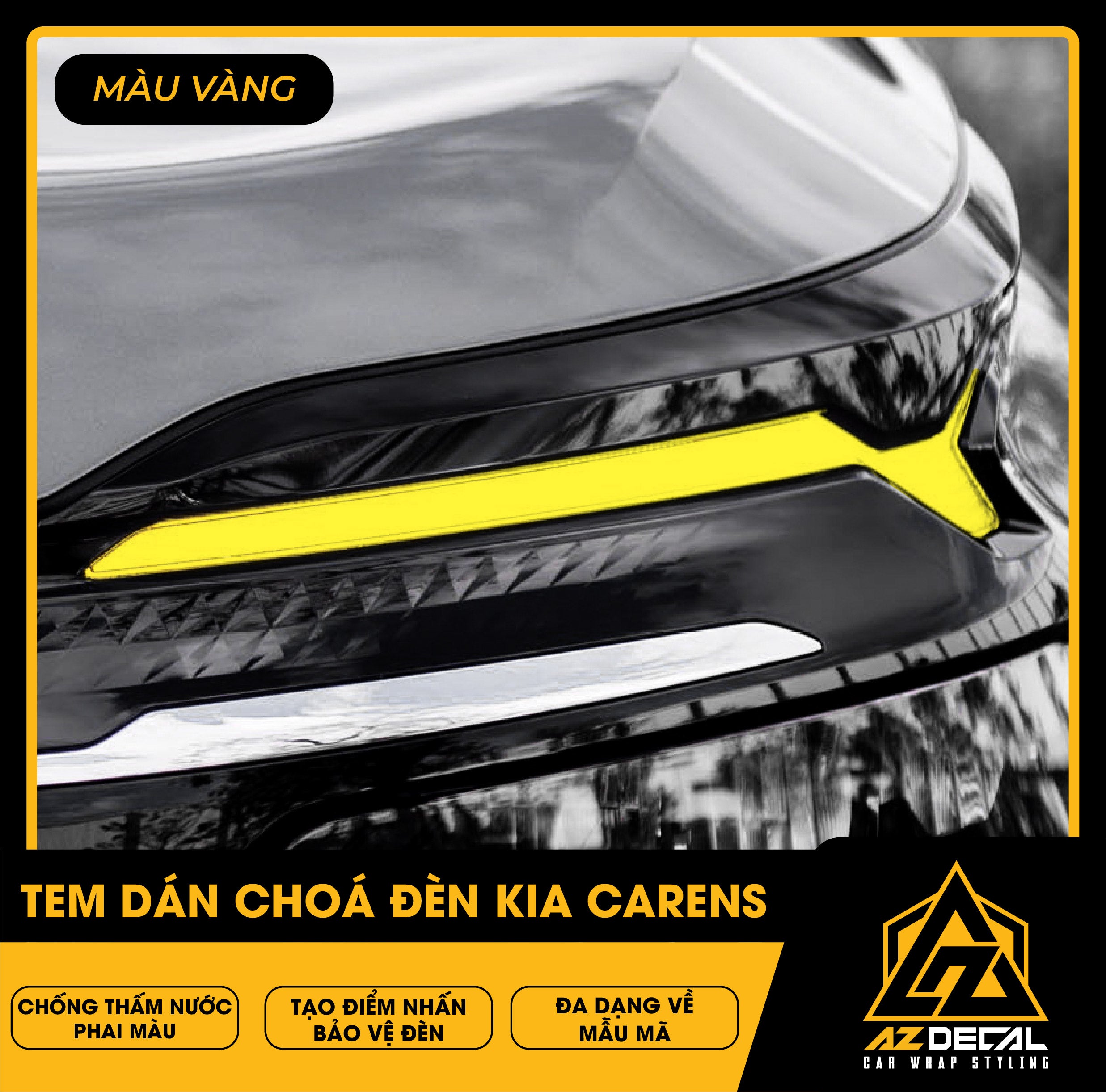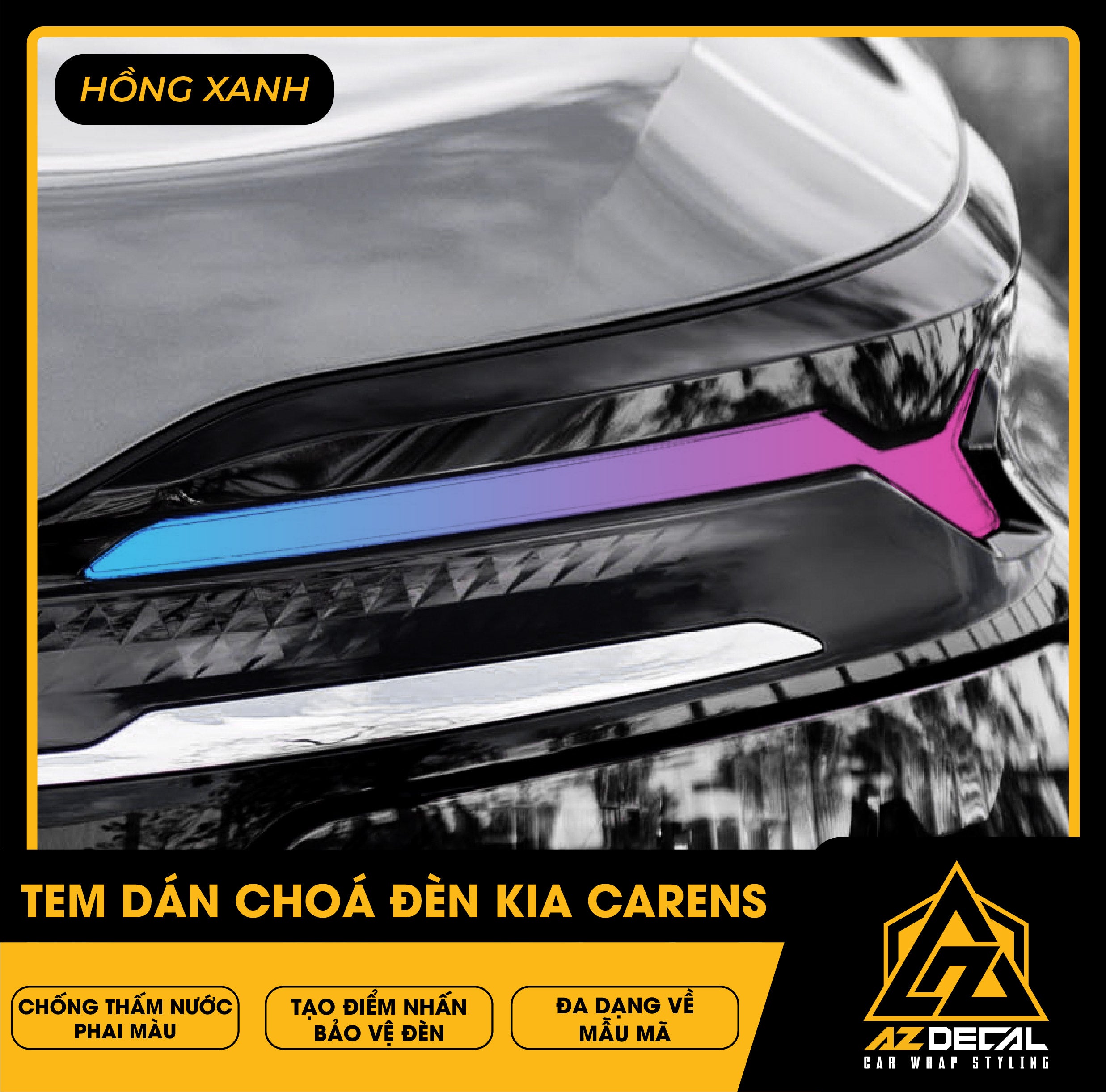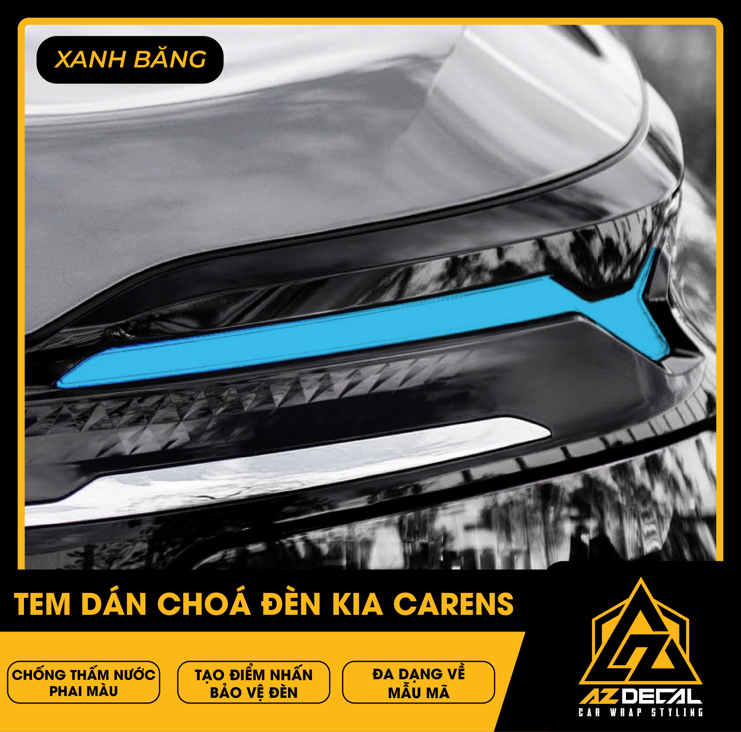 Tem dán choá đèn ô tô Kia Carens bảo vệ và trang trí độc đáo tạo điểm nhấn mới lạ. Film dán cao cấp chống thấm nước phai màu, che dấu vết xước cũ chống trầy xước hiệu quả.