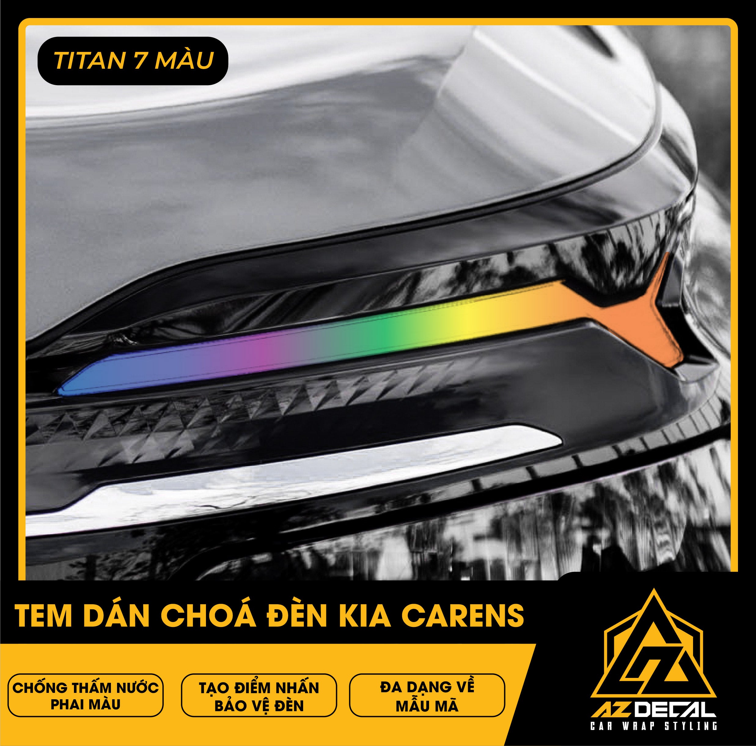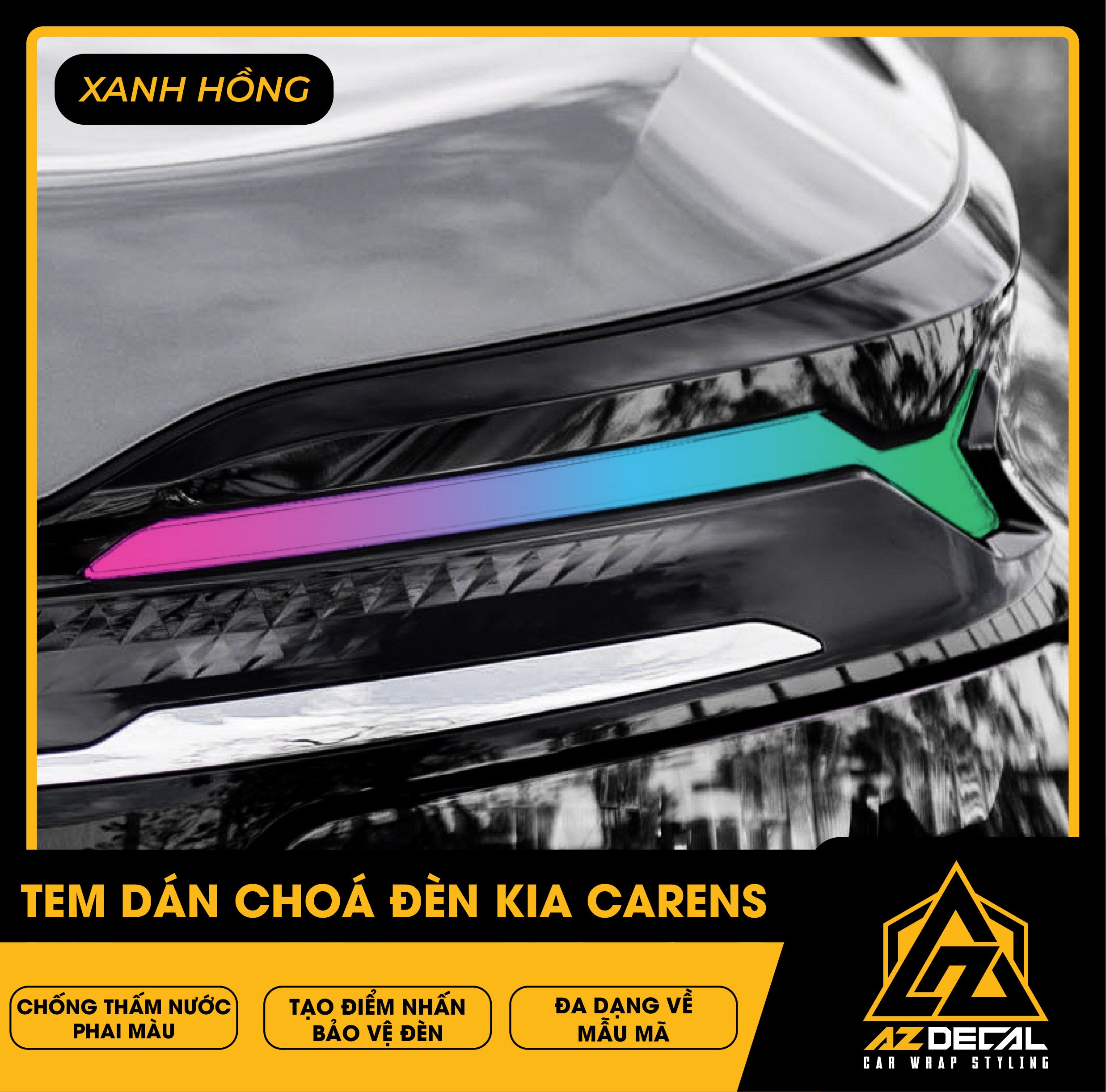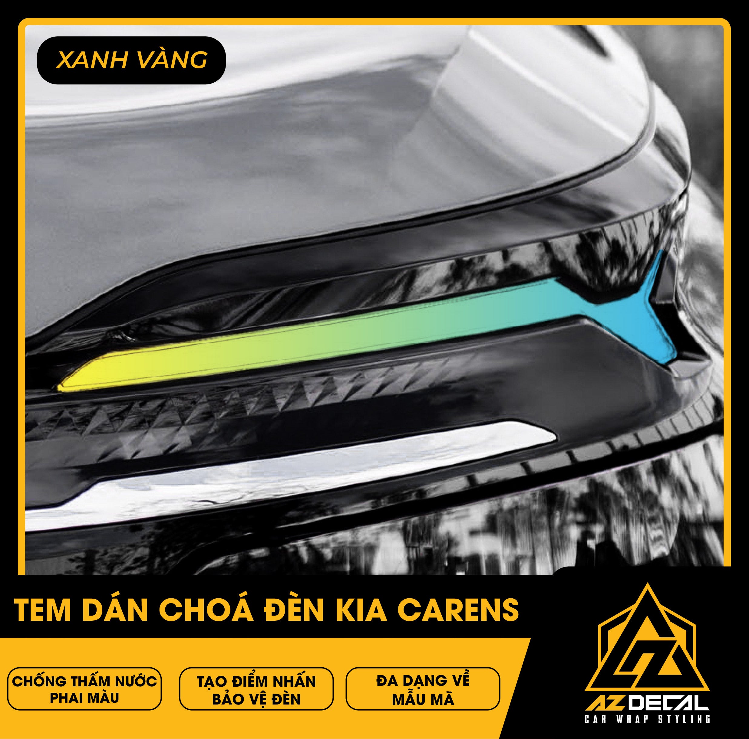 Tem dán choá đèn ô tô Kia Carens bảo vệ và trang trí độc đáo tạo điểm nhấn mới lạ. Film dán cao cấp chống thấm nước phai màu, che dấu vết xước cũ chống trầy xước hiệu quả.