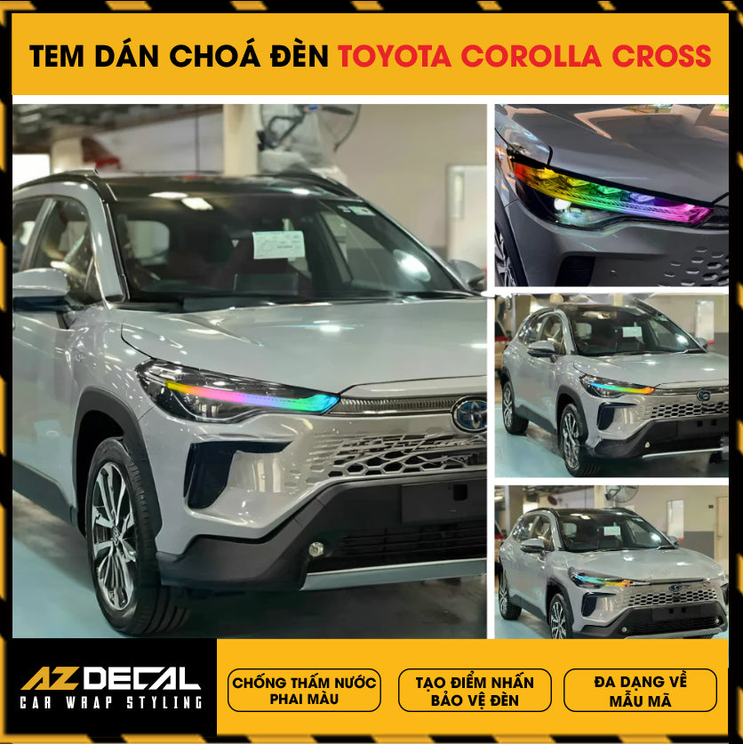 Tem dán choá đèn ô tô Toyota Corolla Cross bảo vệ và trang trí độc đáo tạo điểm nhấn mới lạ. Film dán cao cấp chống thấm nước phai màu, che dấu vết xước cũ chống trầy xước hiệu quả.