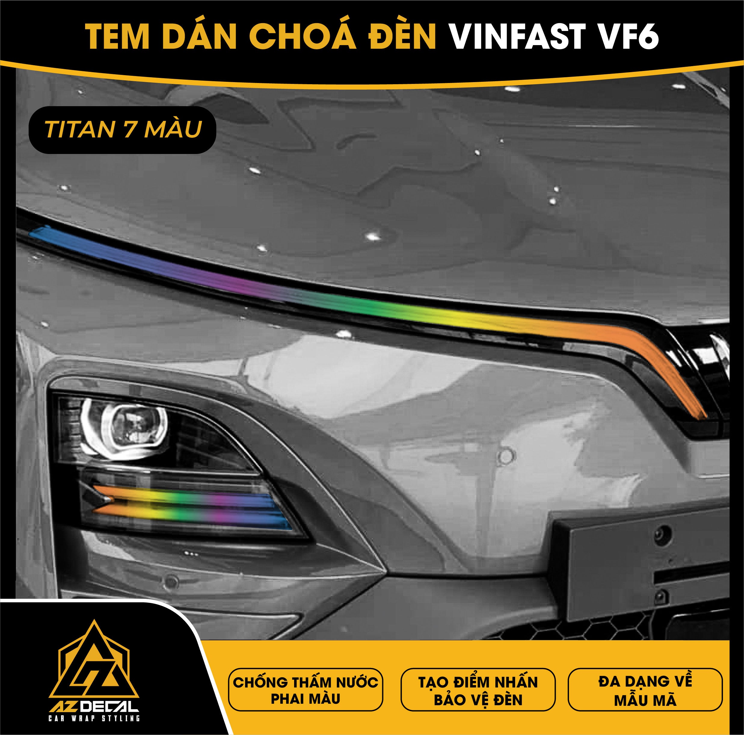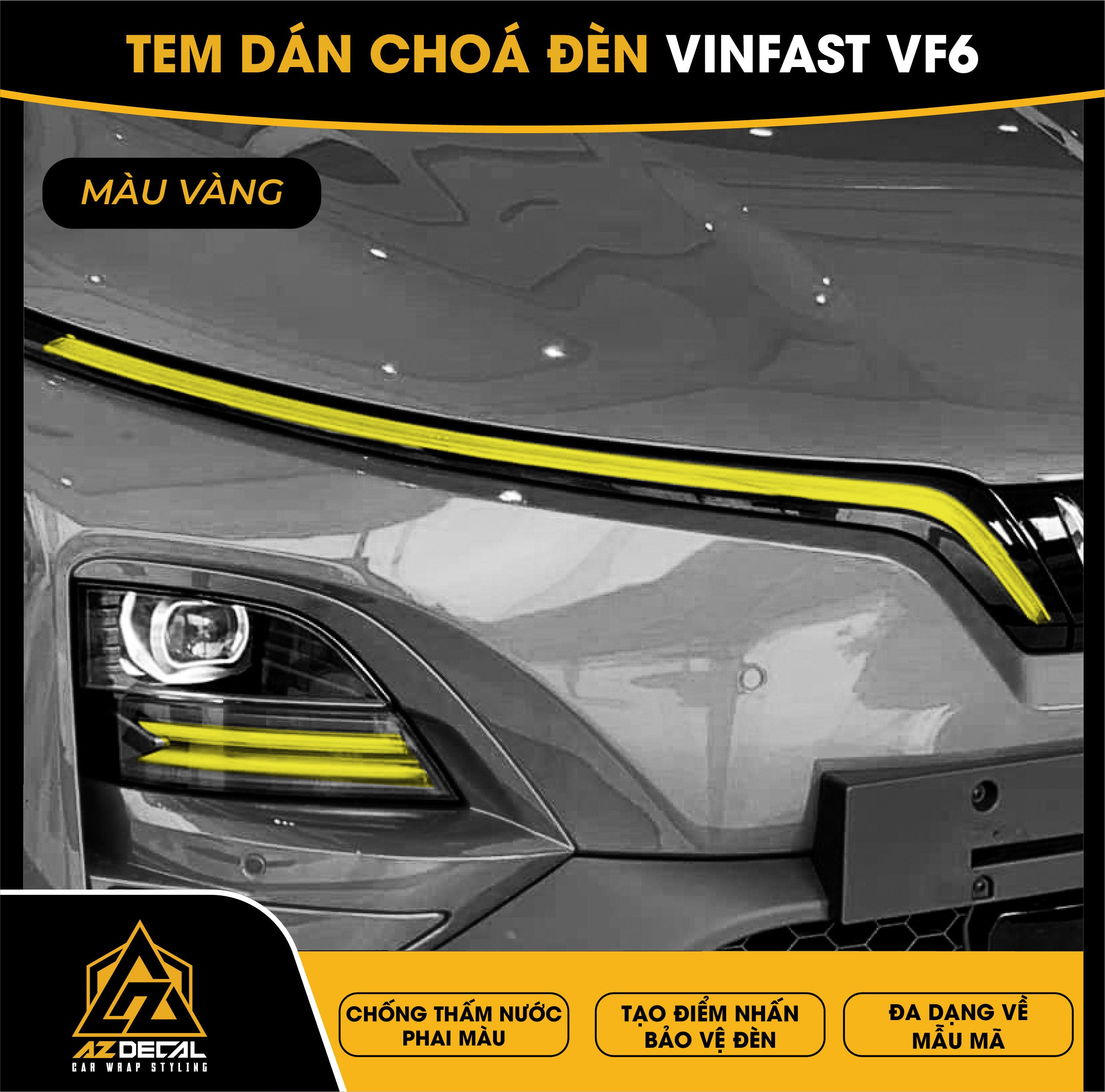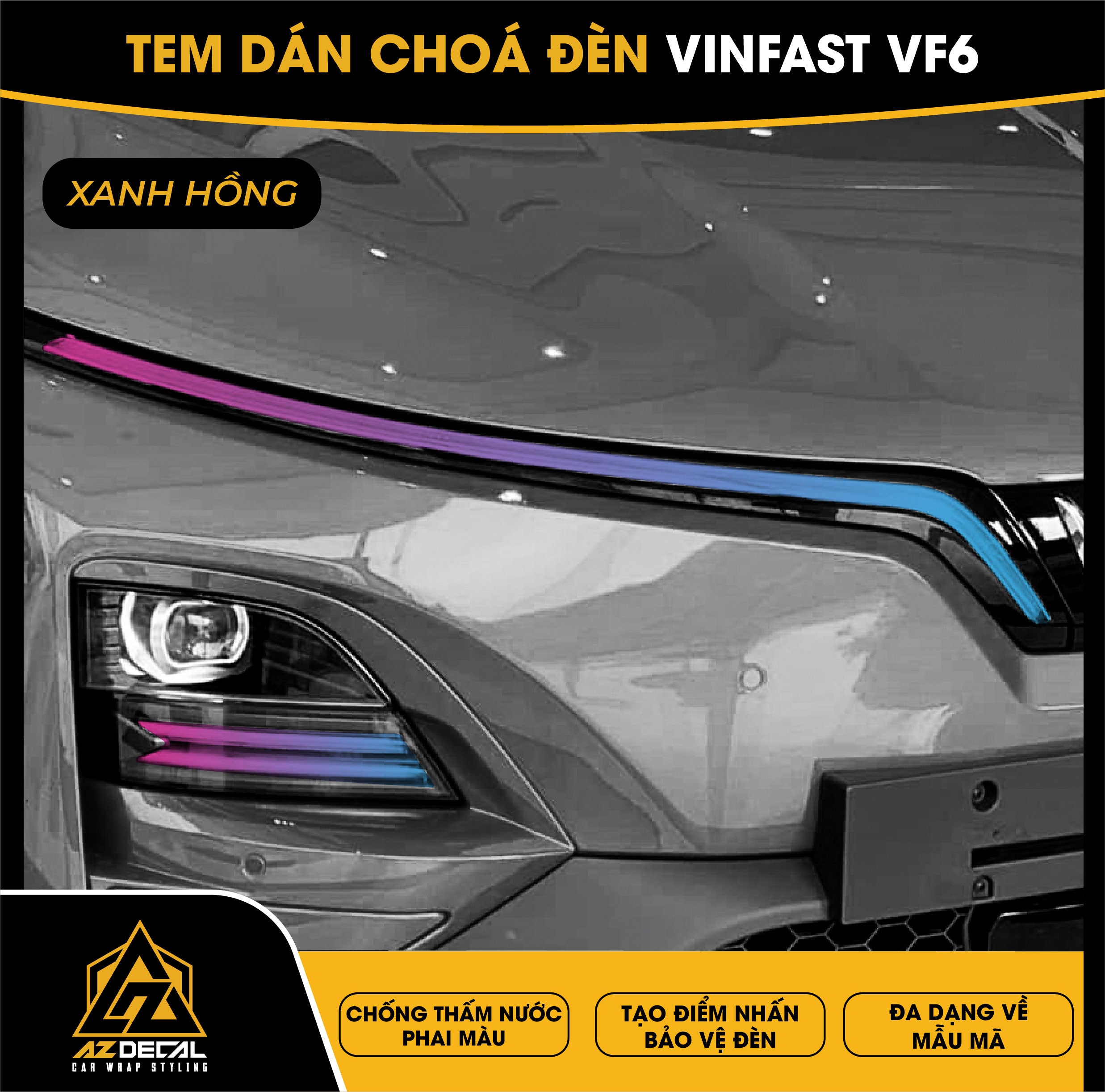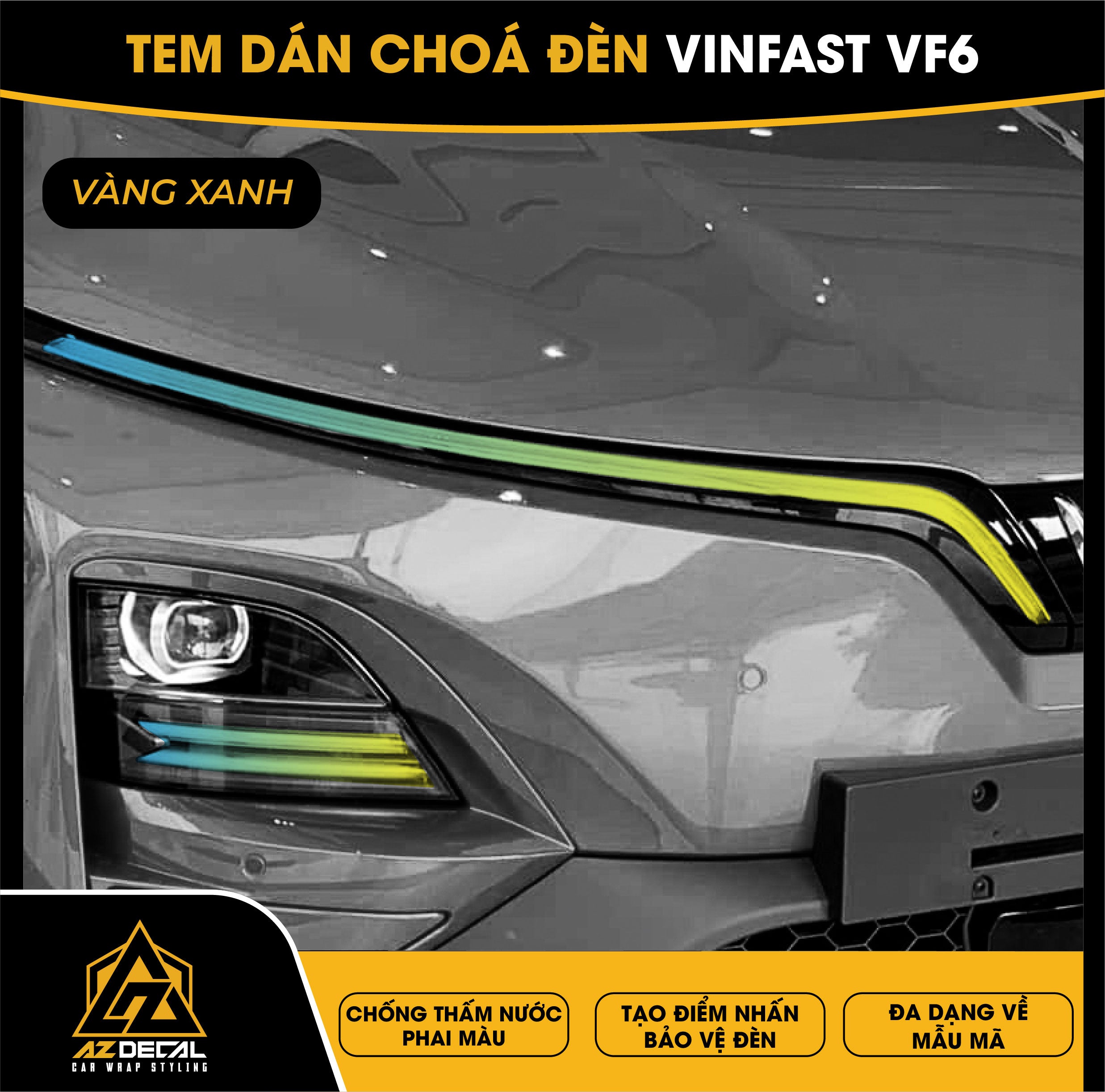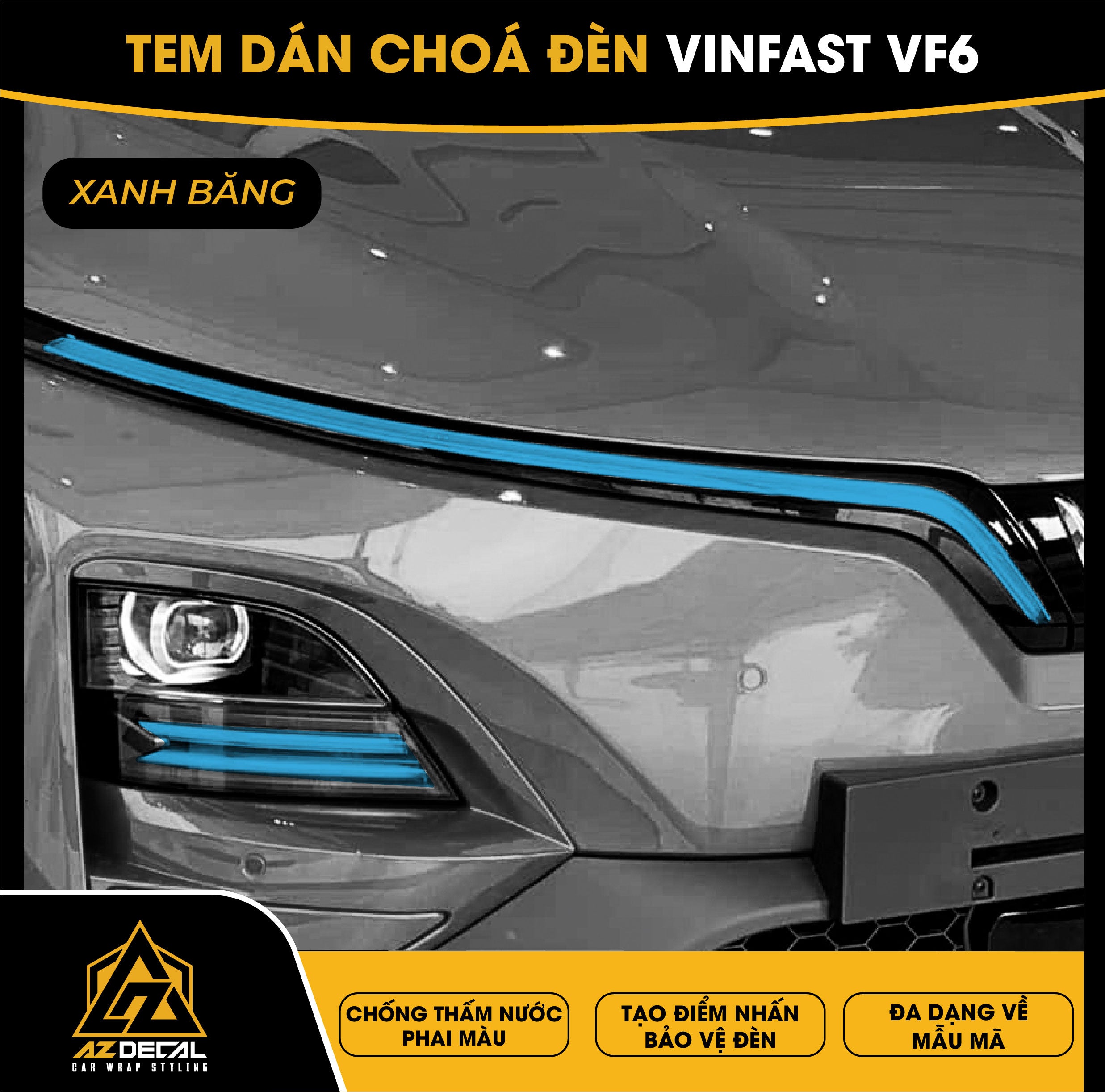 Tem dán choá đèn ô tô Vinfast VF6 bảo vệ và trang trí độc đáo tạo điểm nhấn mới lạ. Film dán cao cấp chống thấm nước phai màu, che dấu vết xước cũ chống trầy xước hiệu quả.