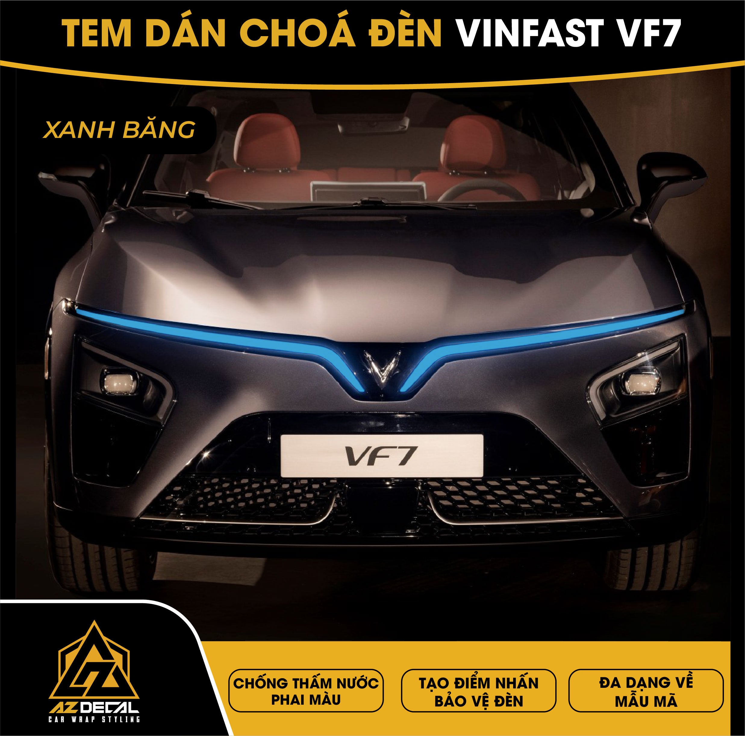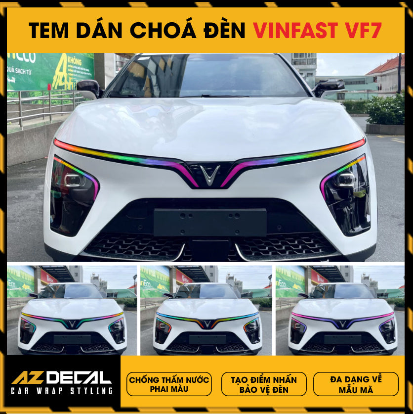 Tem dán choá đèn ô tô Vinfast VF7 bảo vệ và trang trí độc đáo tạo điểm nhấn mới lạ. Film dán cao cấp chống thấm nước phai màu, che dấu vết xước cũ chống trầy xước hiệu quả.