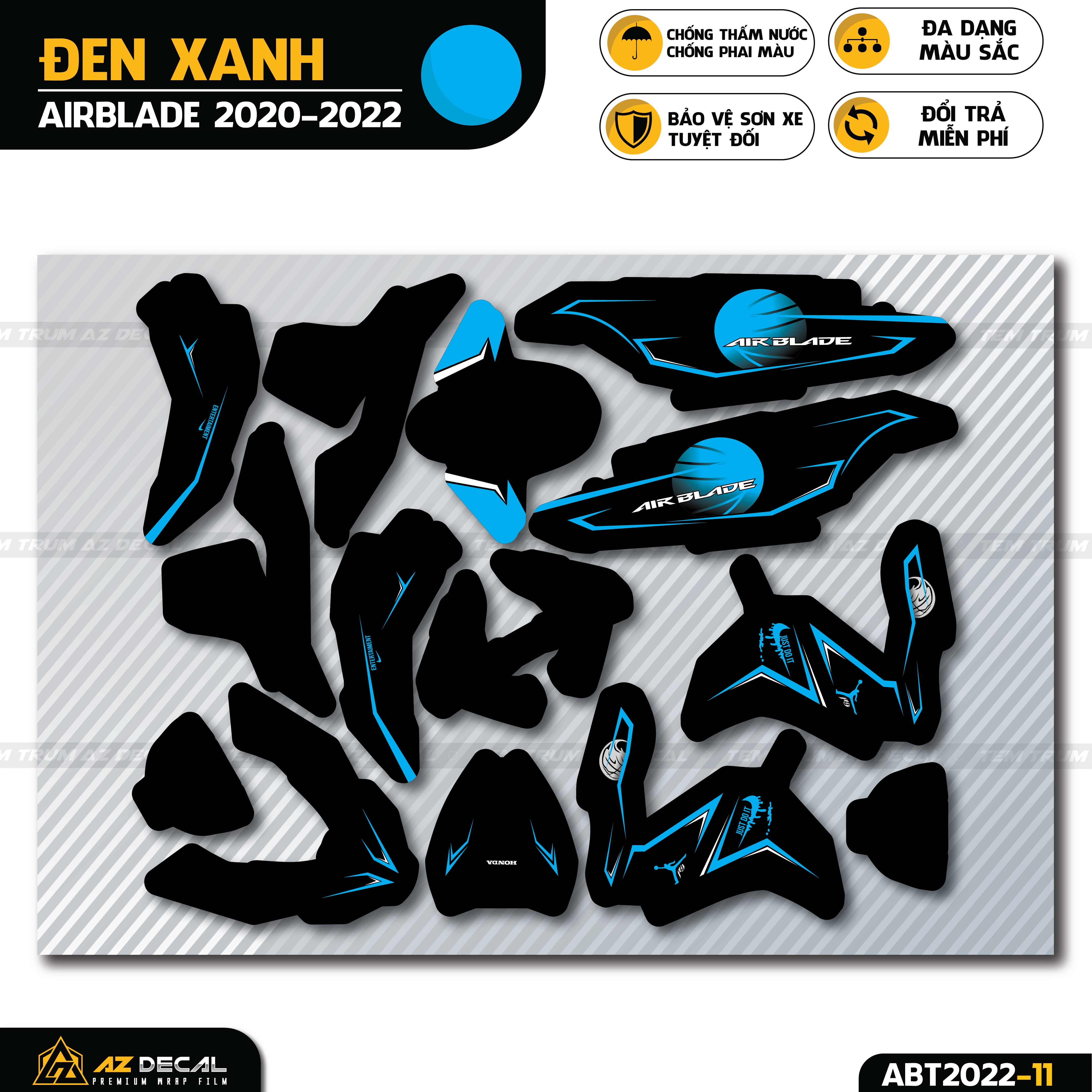 • Tem trùm AB thiết kế theo kích cỡ xe Honda Air Blade 2020 - 2022