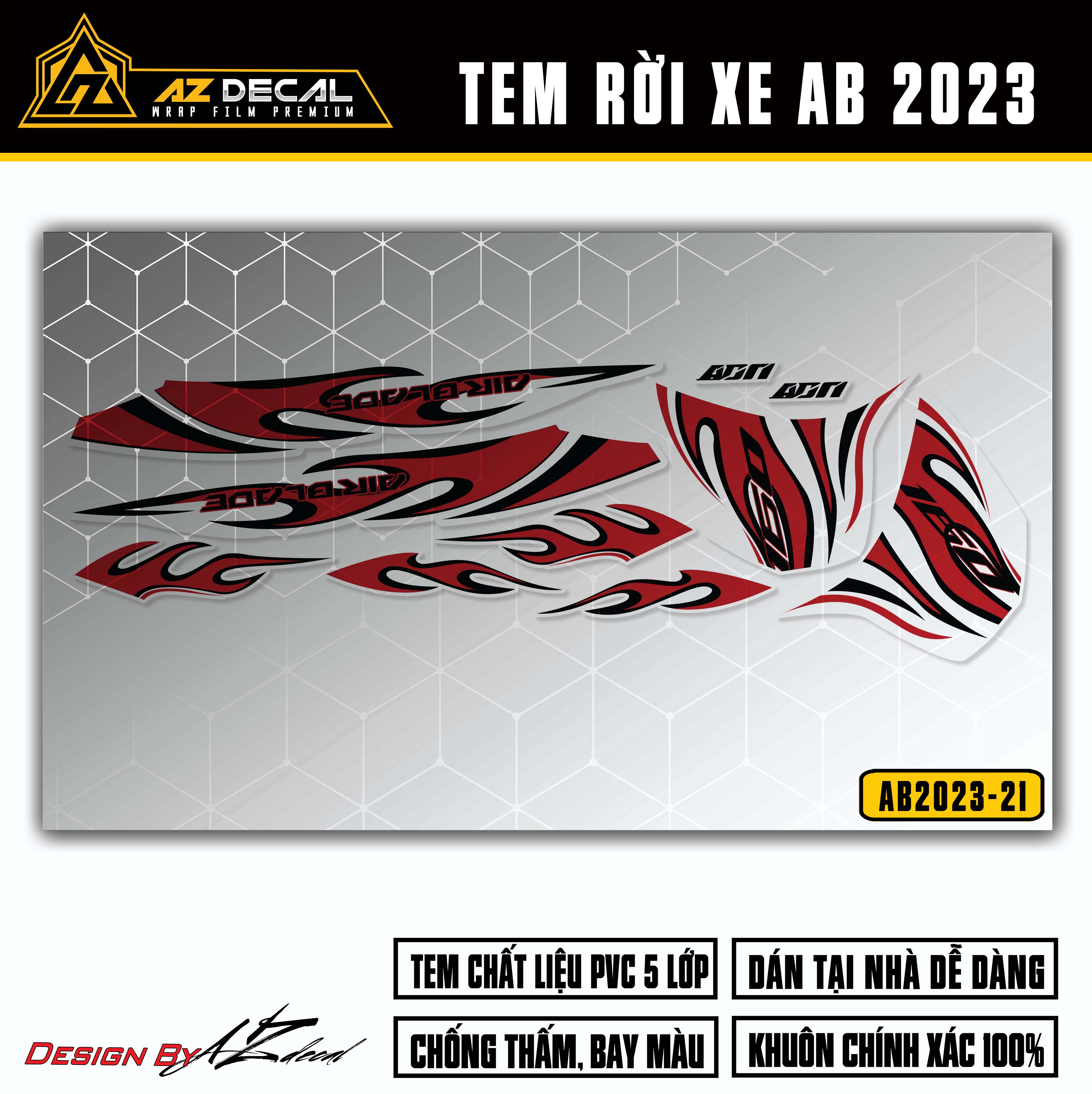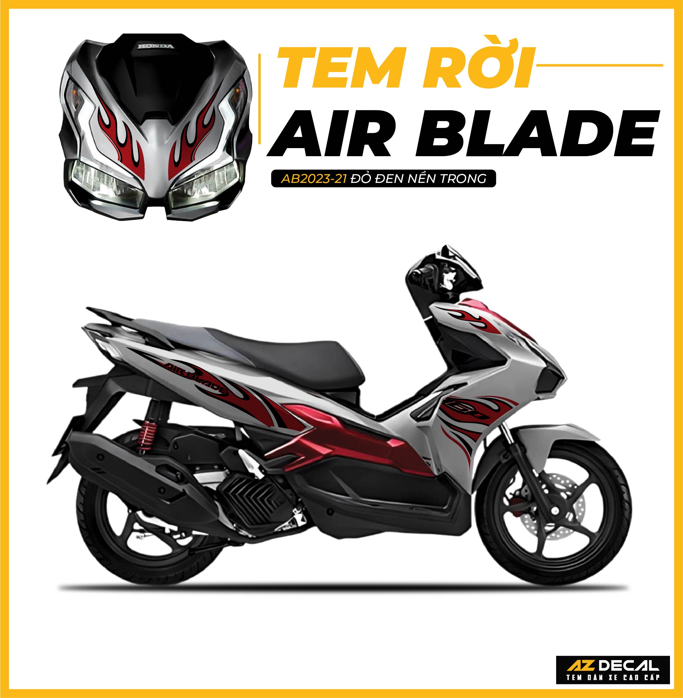 Dụng cụ cần thiết: Tem xe Air Blade tại Azdecal, kéo hoặc dao rọc giấy, khăn lau, thẻ gạt, máy sấy hoặc bật lửa.