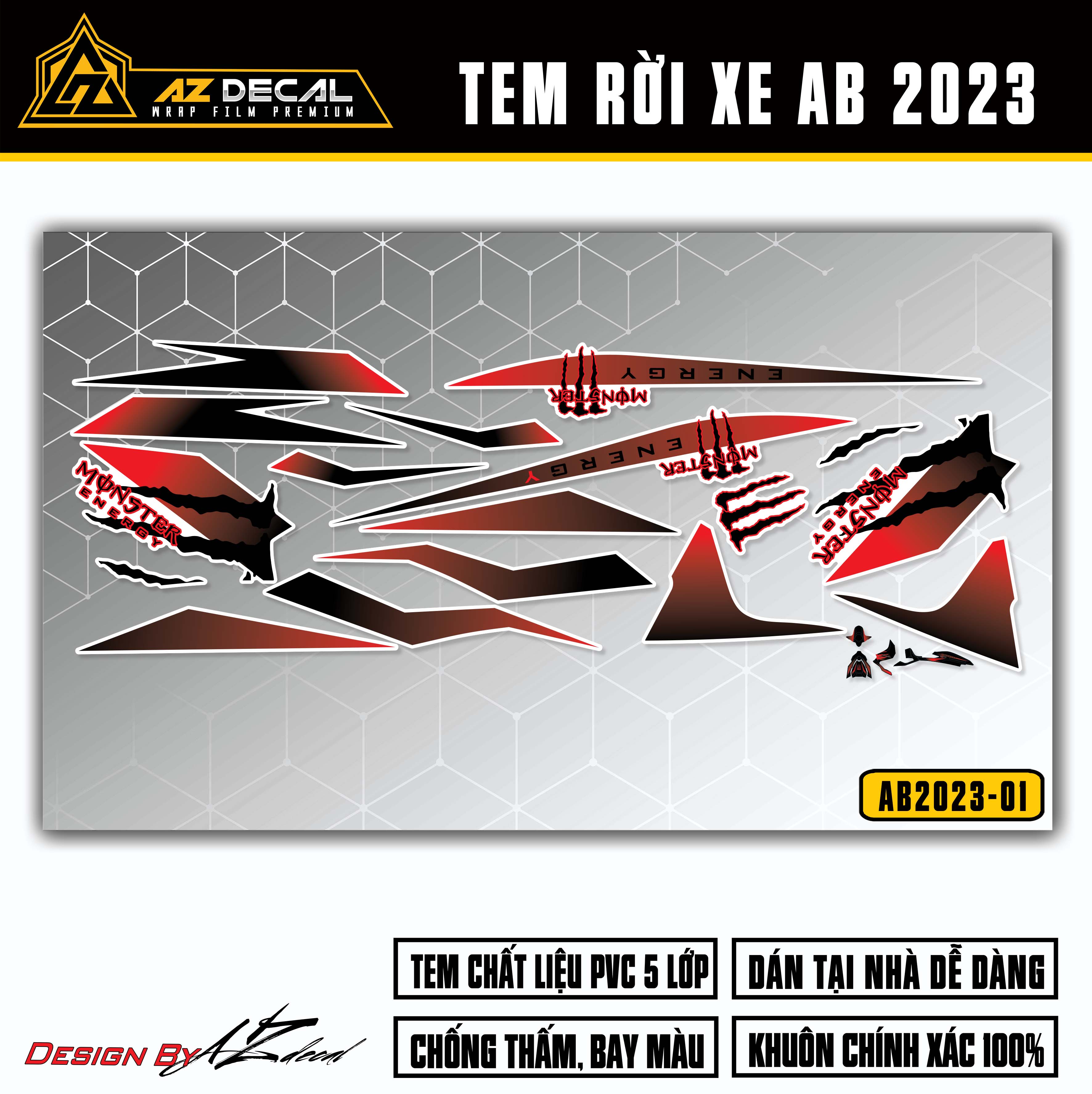 Tem dán xe AB 2023 160cxc 125cc màu đỏ đen phong cách Monster