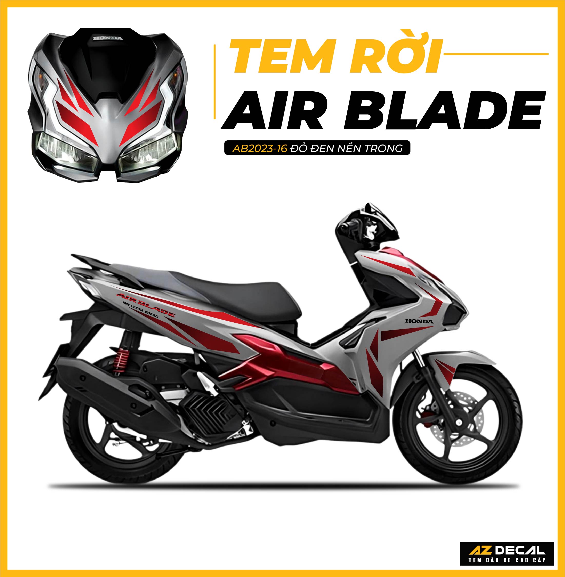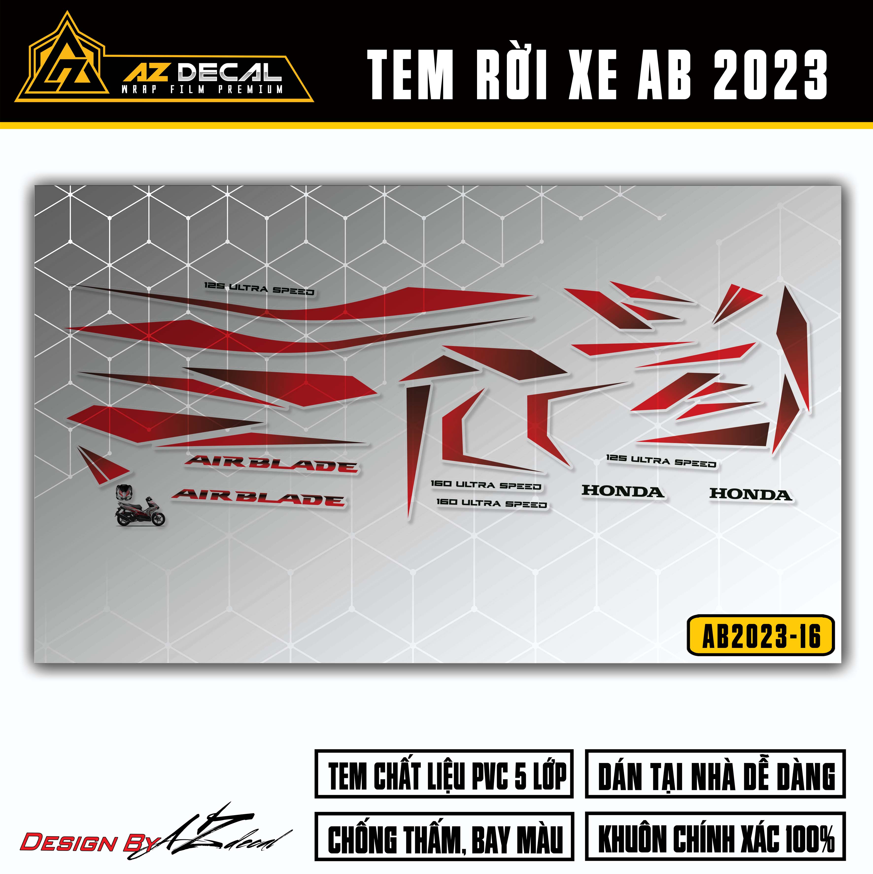 Dụng cụ cần thiết: Tem xe Air Blade 2023-2025 tại Azdecal, kéo hoặc dao rọc giấy, khăn lau, thẻ gạt, máy sấy hoặc bật lửa.