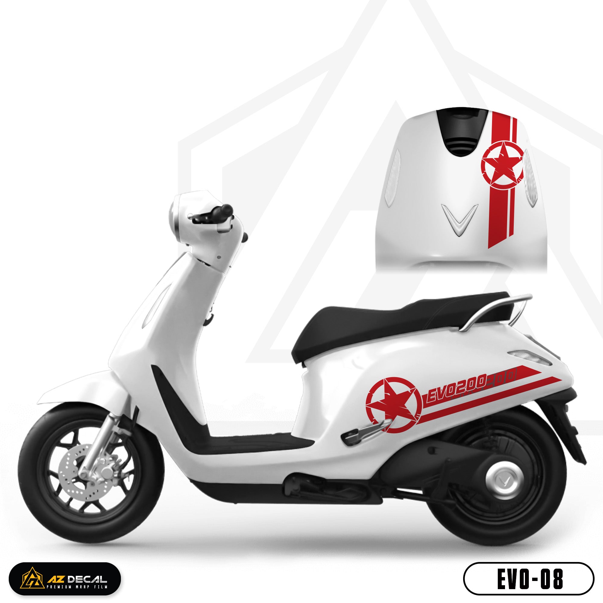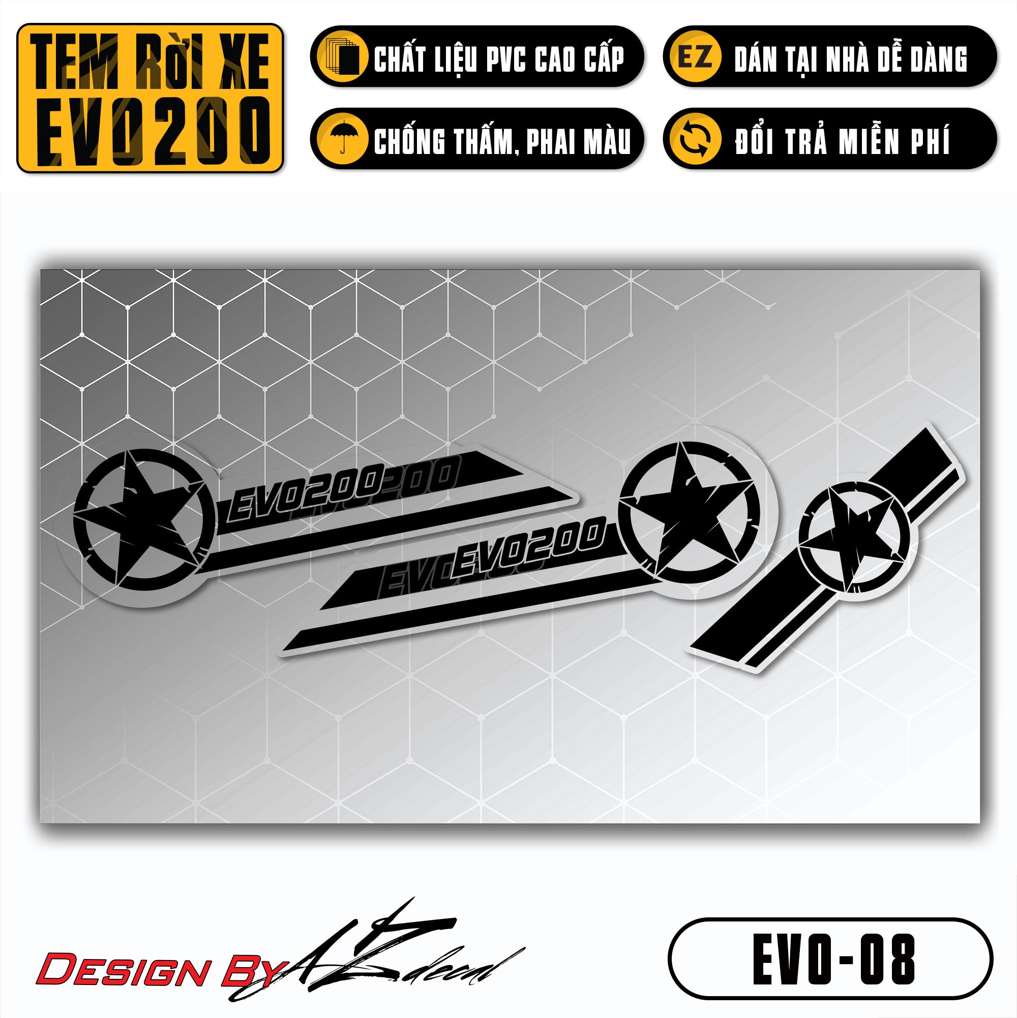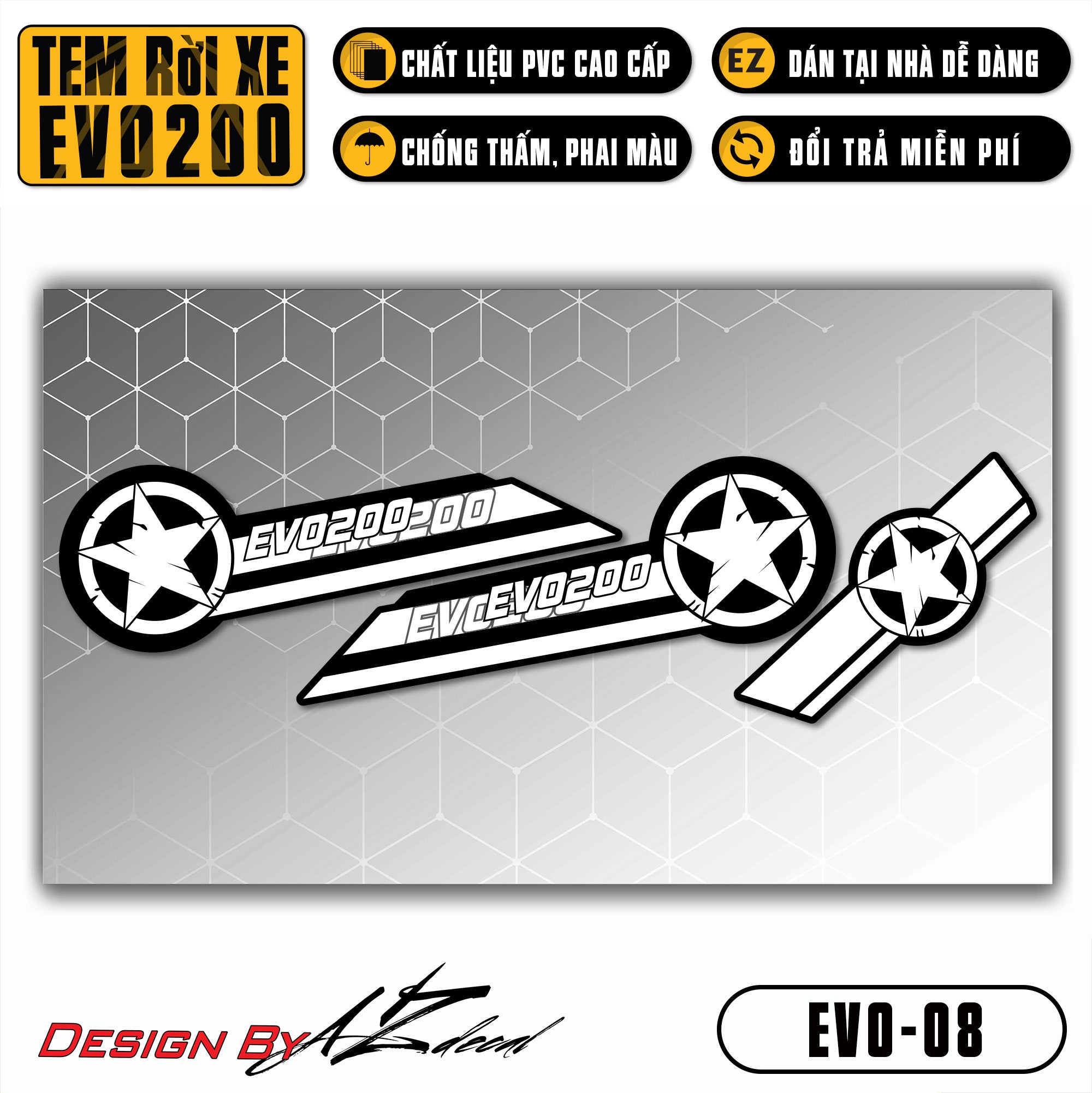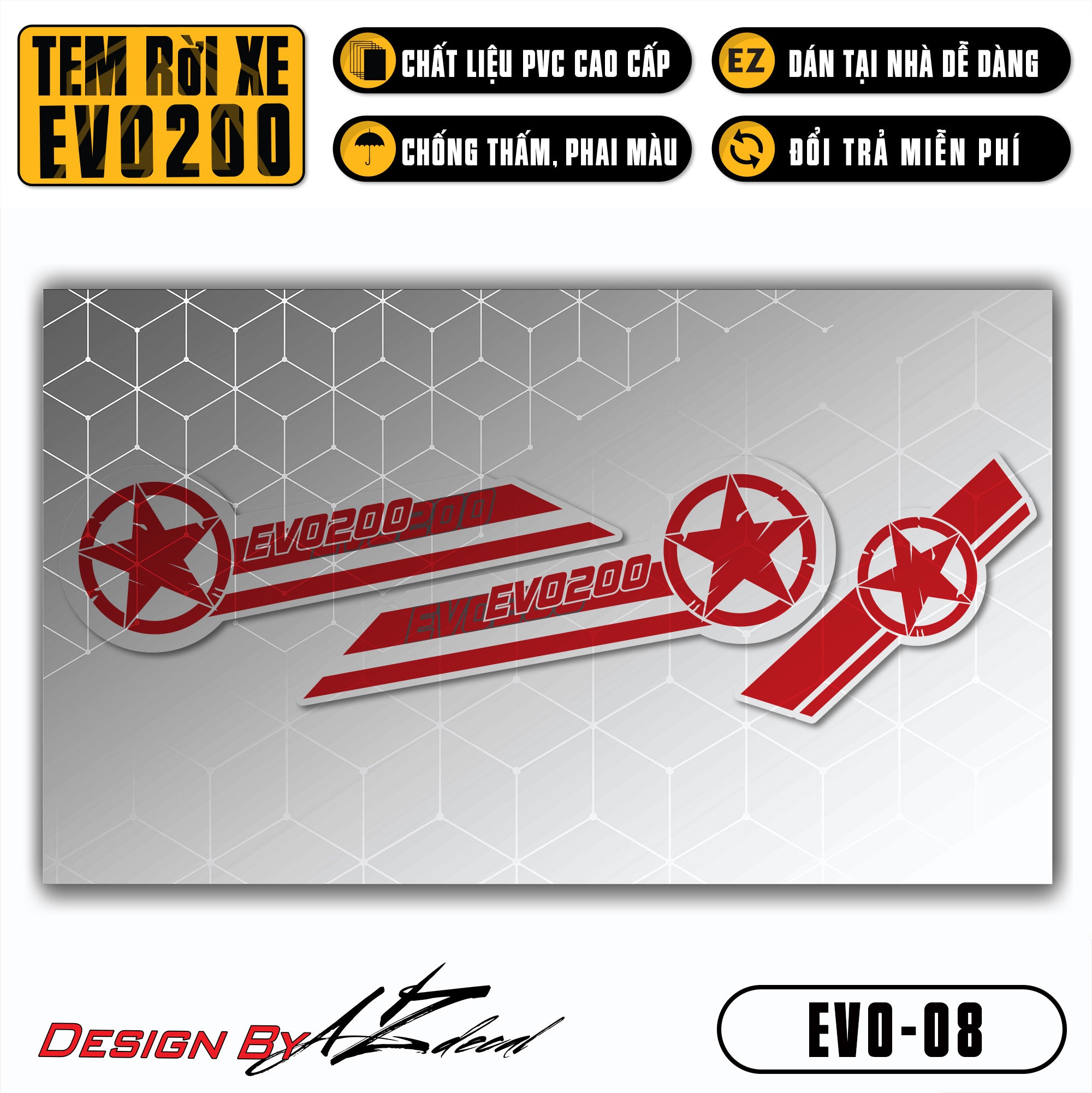 Bước 1: Chuẩn bị dụng cụ: tem xe Evo 200, bật lửa (hoặc máy sấy), kéo (hoặc dao rọc giấy), thẻ gạt tem (nếu có)