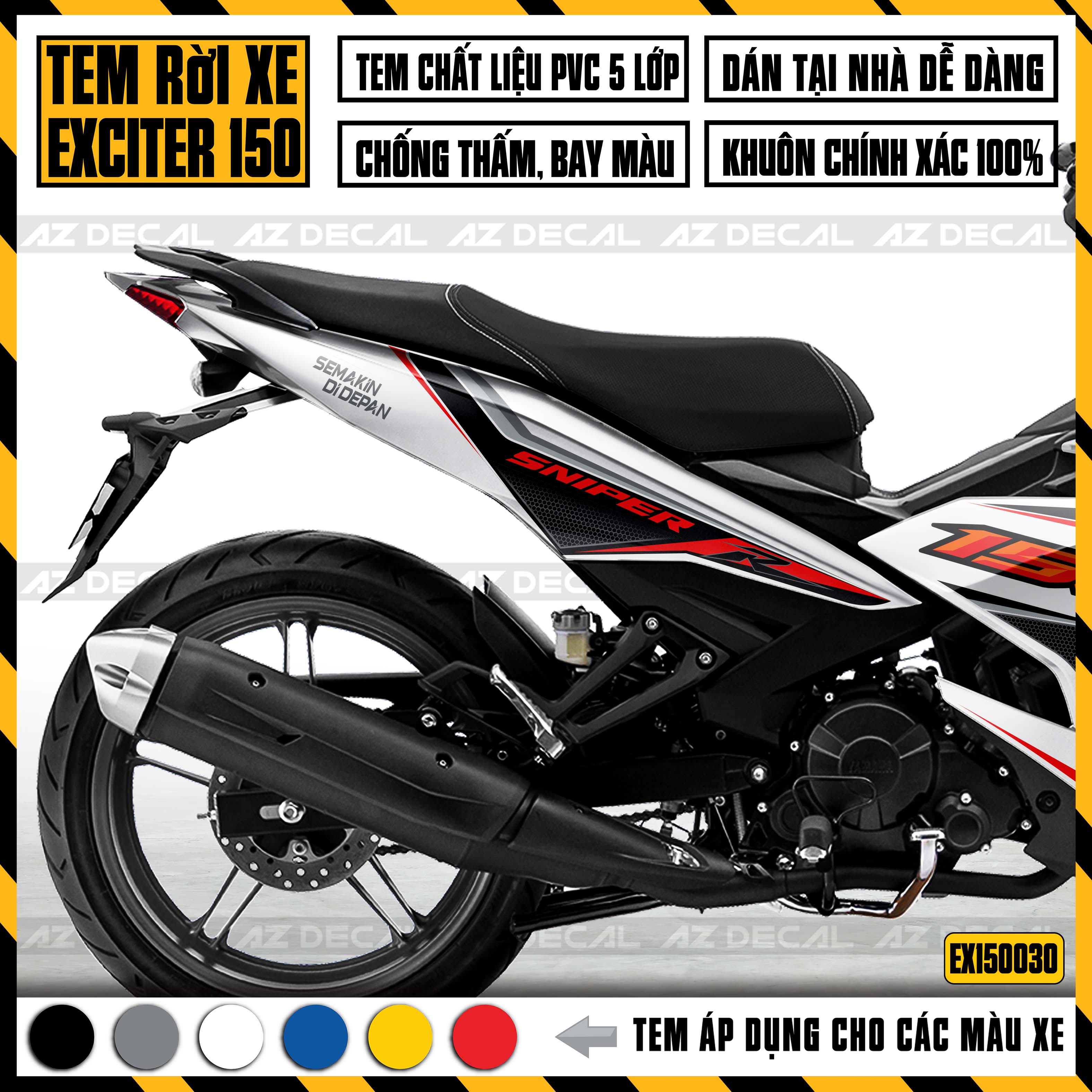 Với chất liệu cao cấp và công nghệ sản xuất hiện đại từ Nhật Bản, Azdecal tự hào đem đến cho khách hàng mẫu tem Exciter 150 với chất lượng hàng đầu.