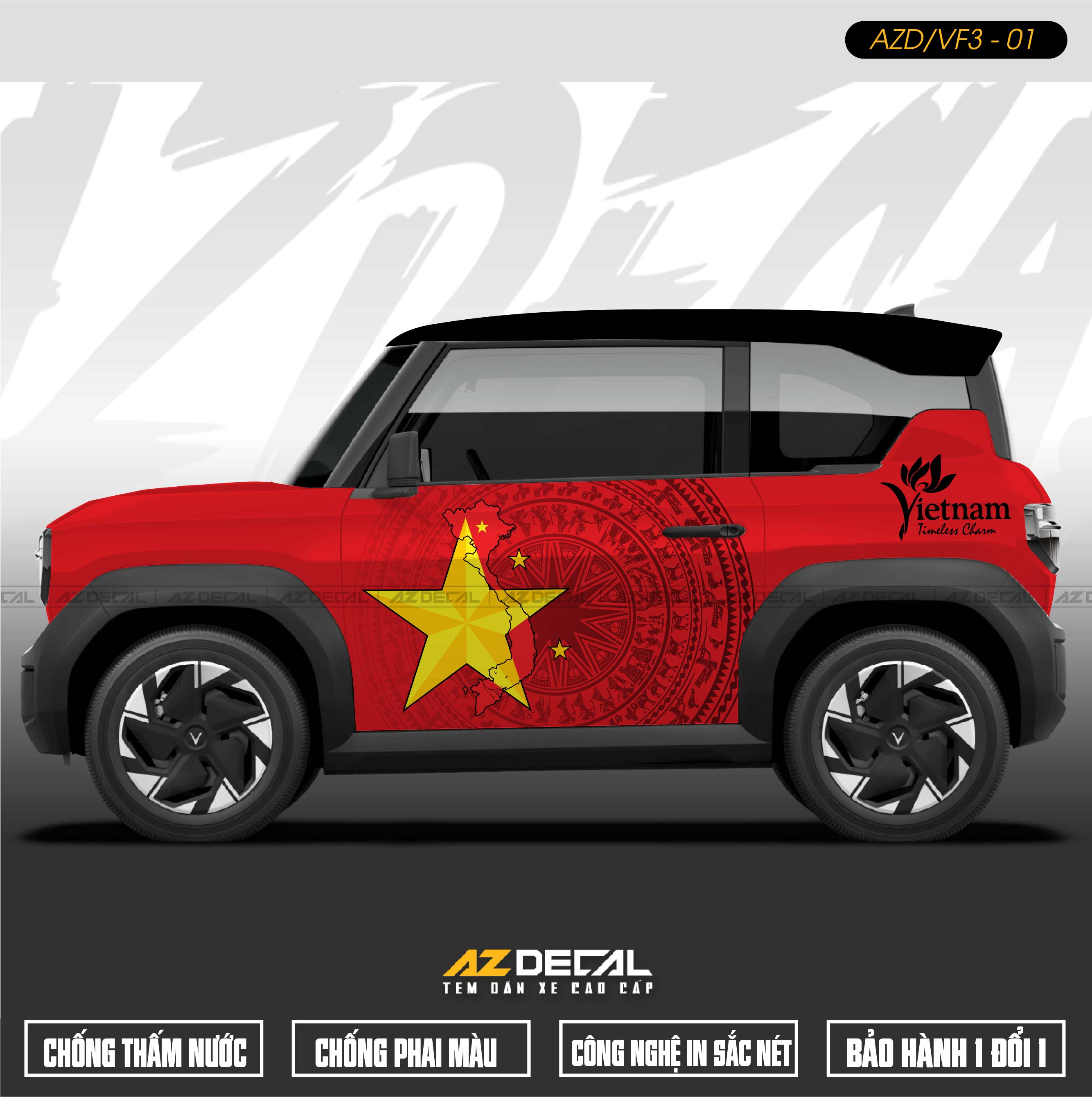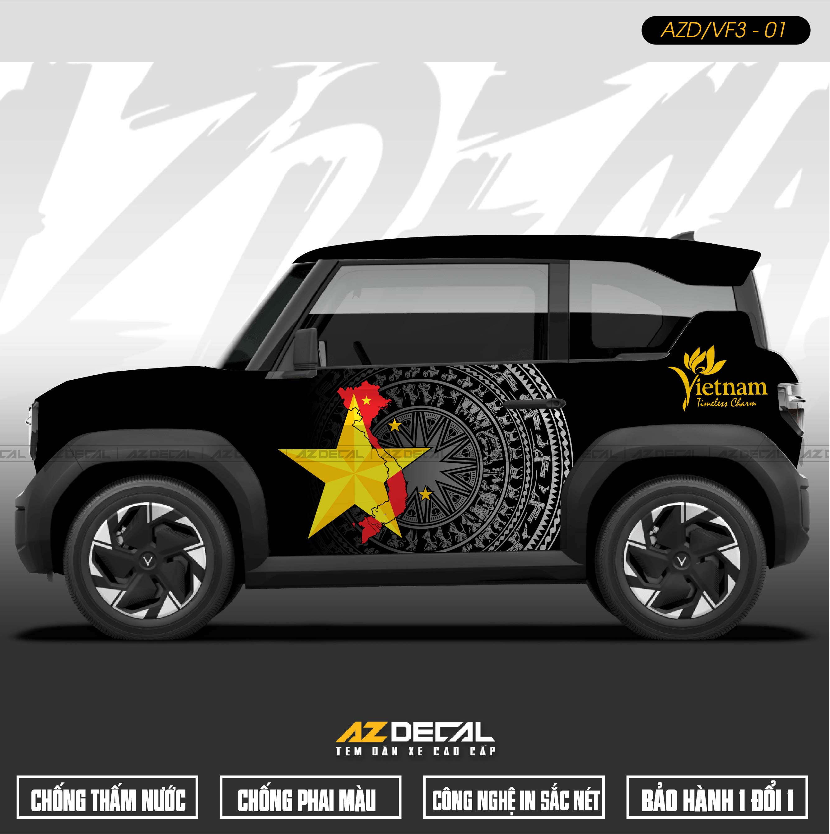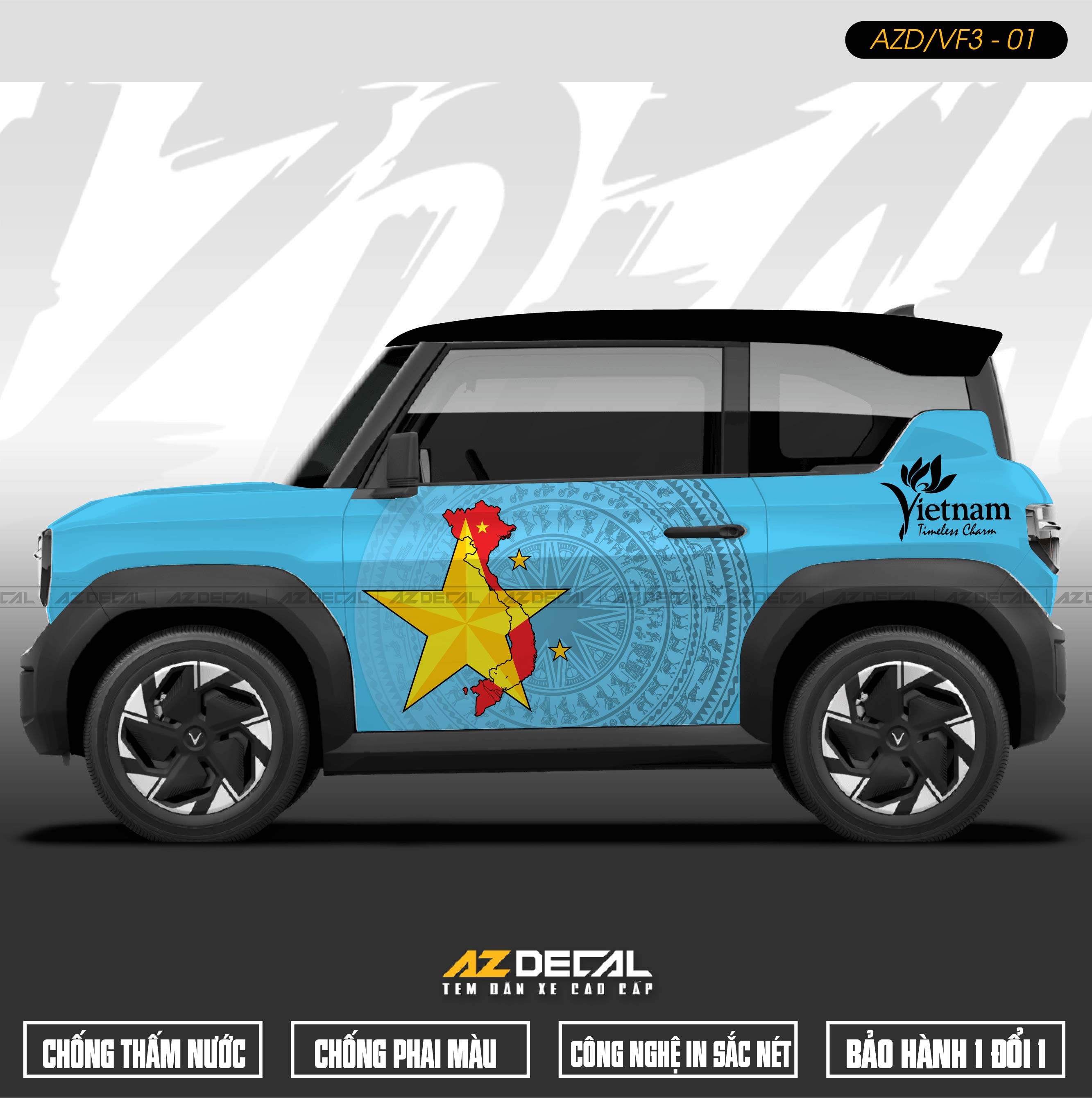 1. Dán tem xe Vinfast VF3 mẫu VF3-01 Trống Đồng