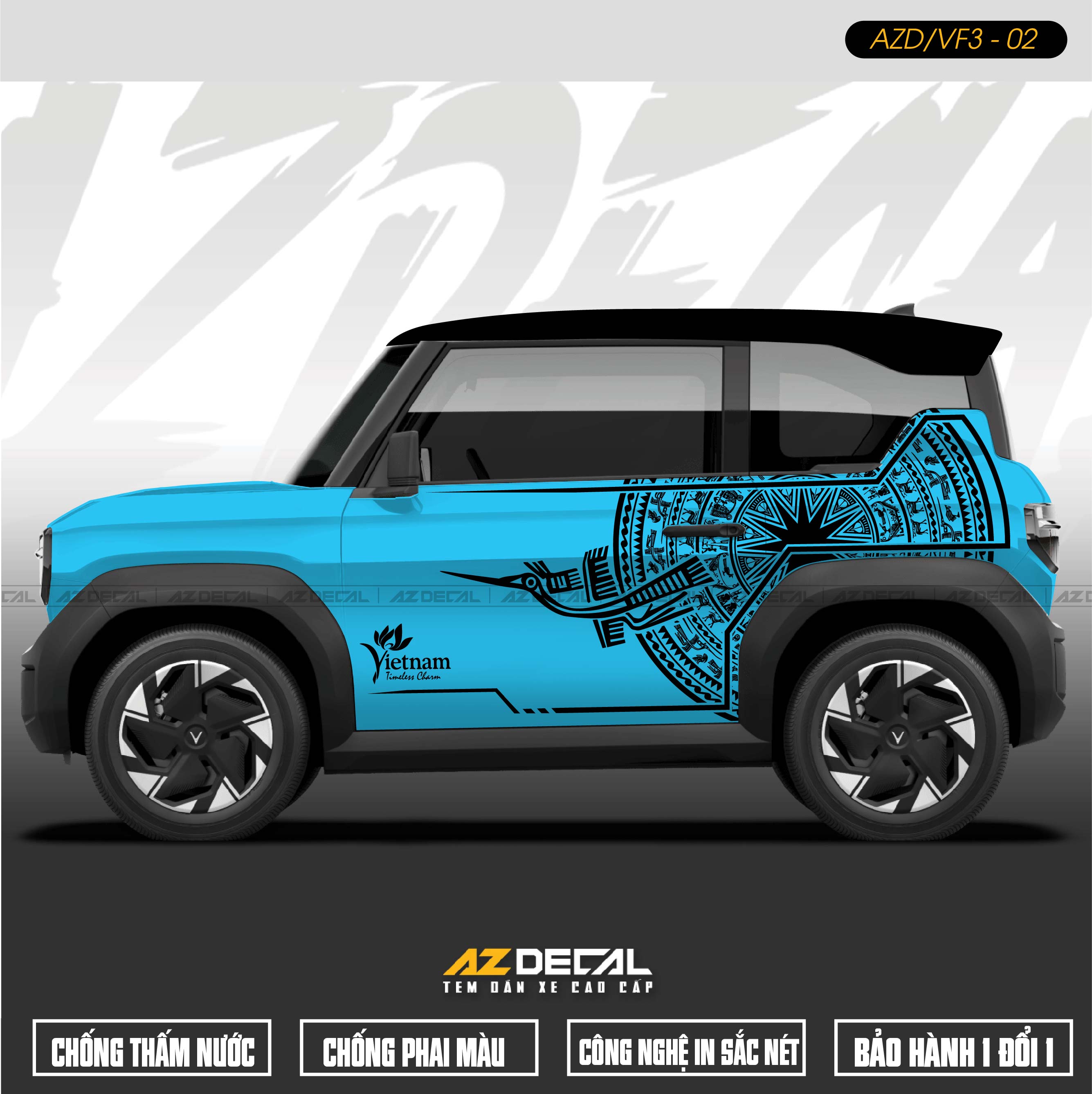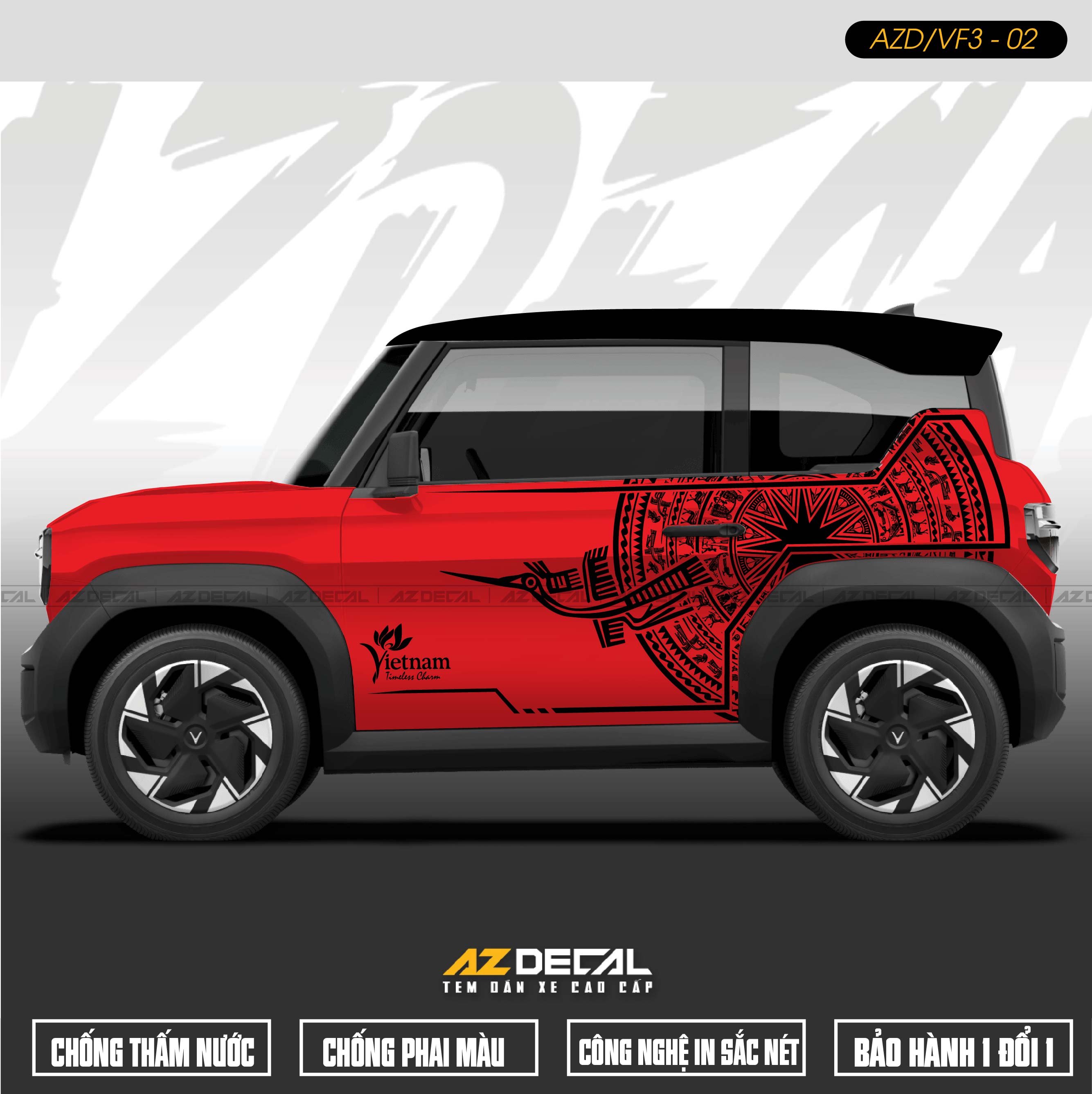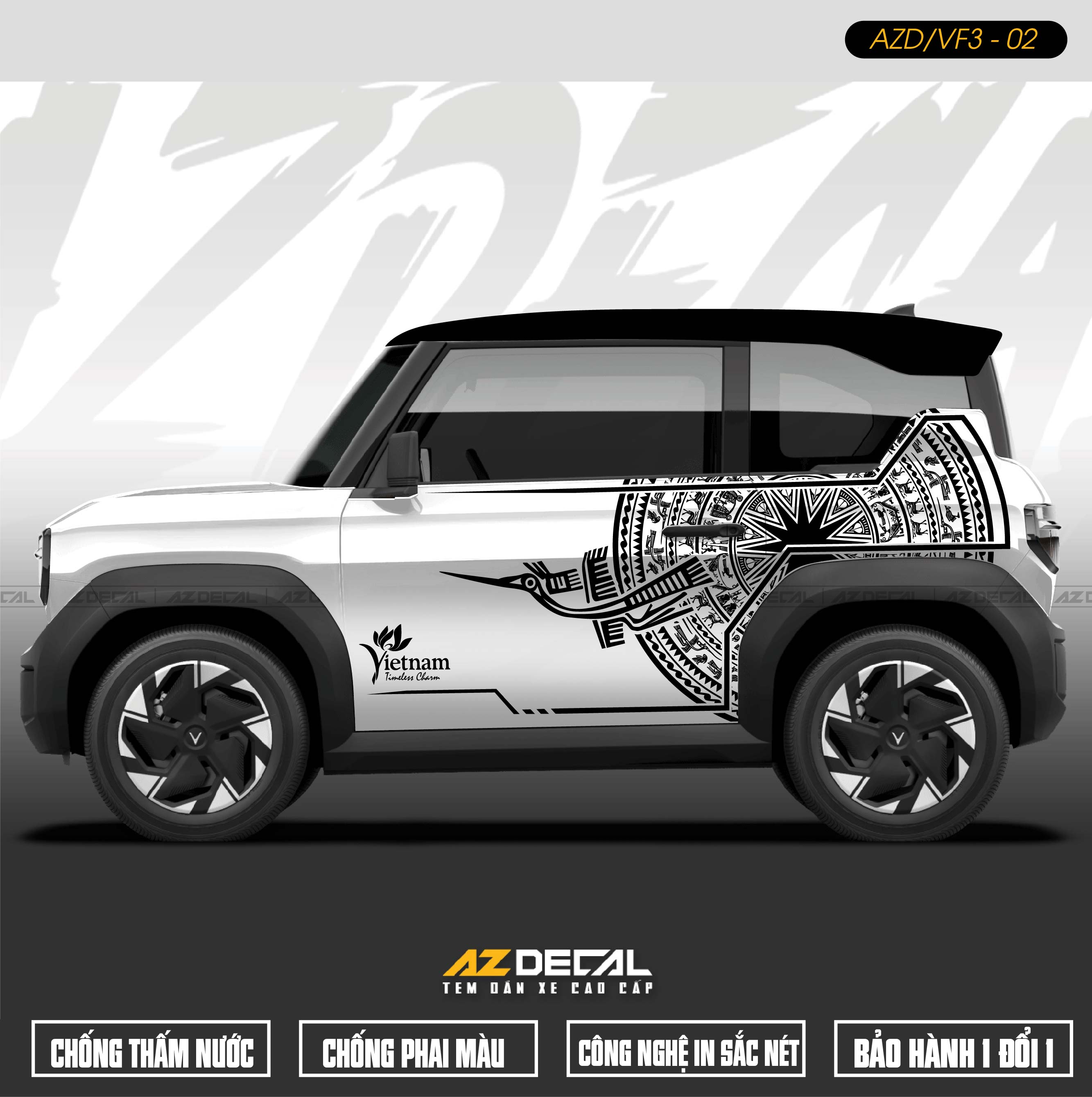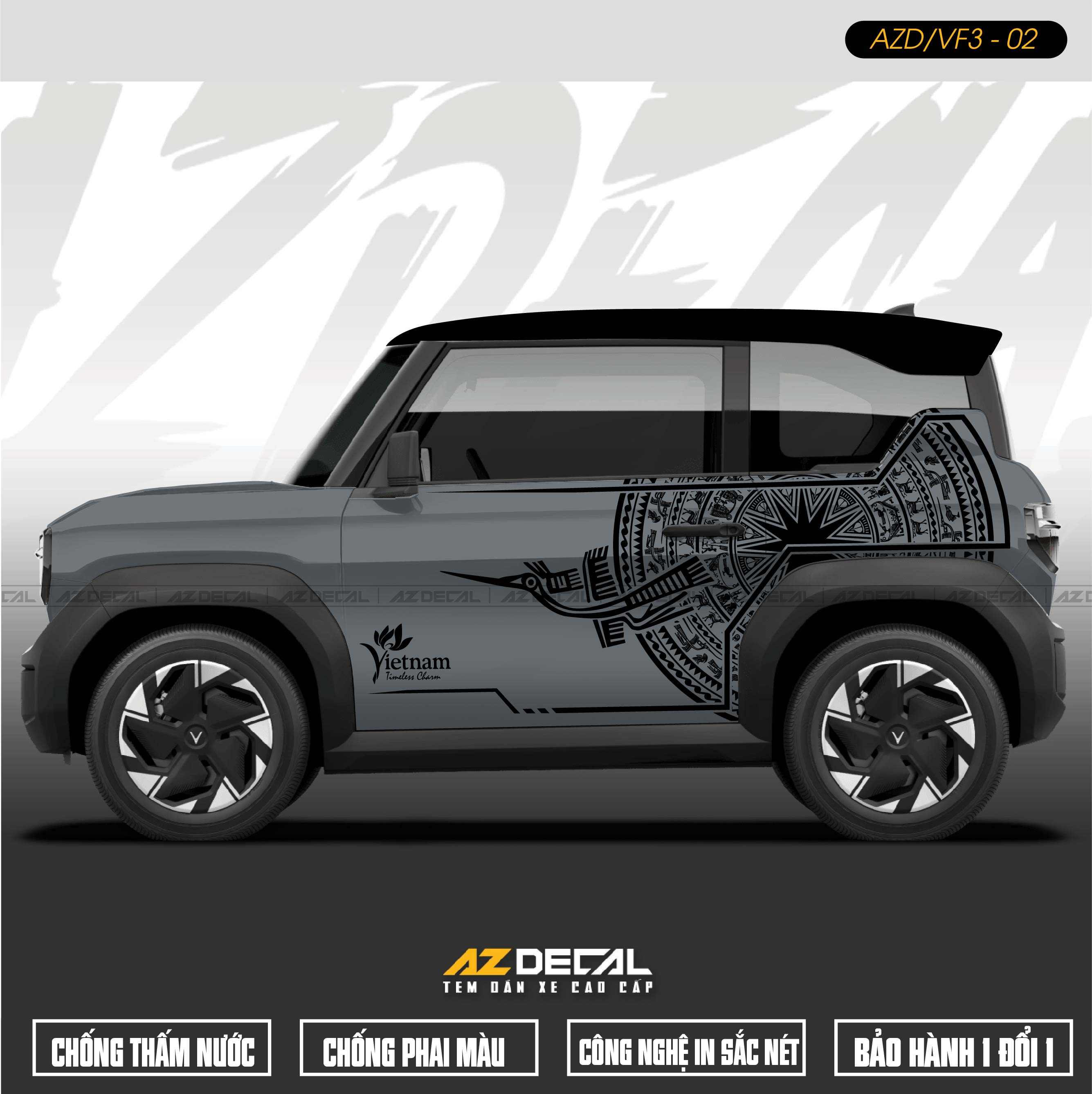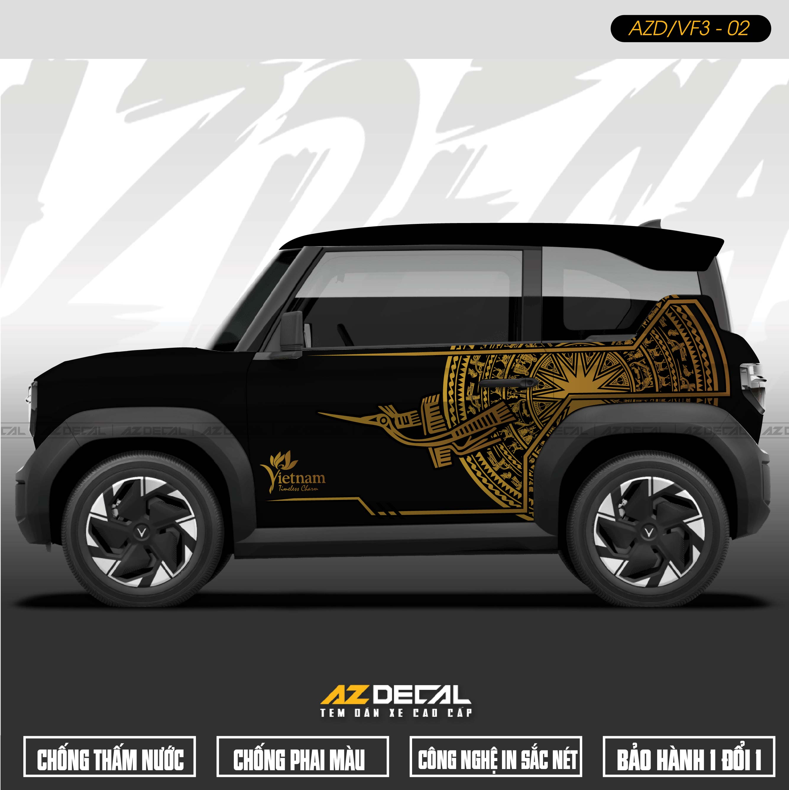1. Dán tem xe Vinfast VF3 mẫu VF3-02 Trống Đồng