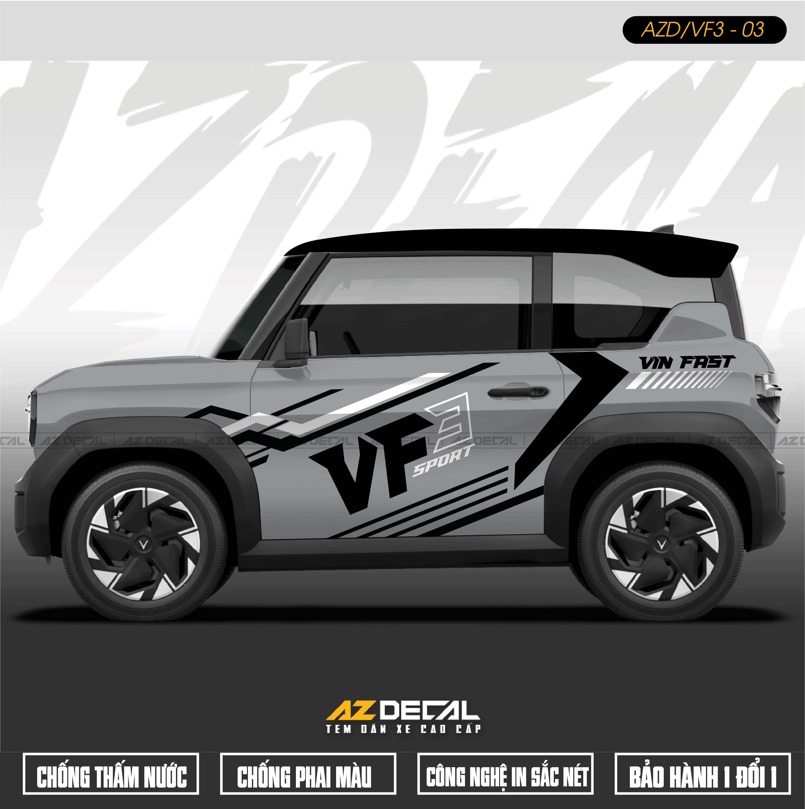 Tem Xe Vinfast VF3 Mẫu VF3-03 Sport - Thiết Kế Theo Yêu Cầu