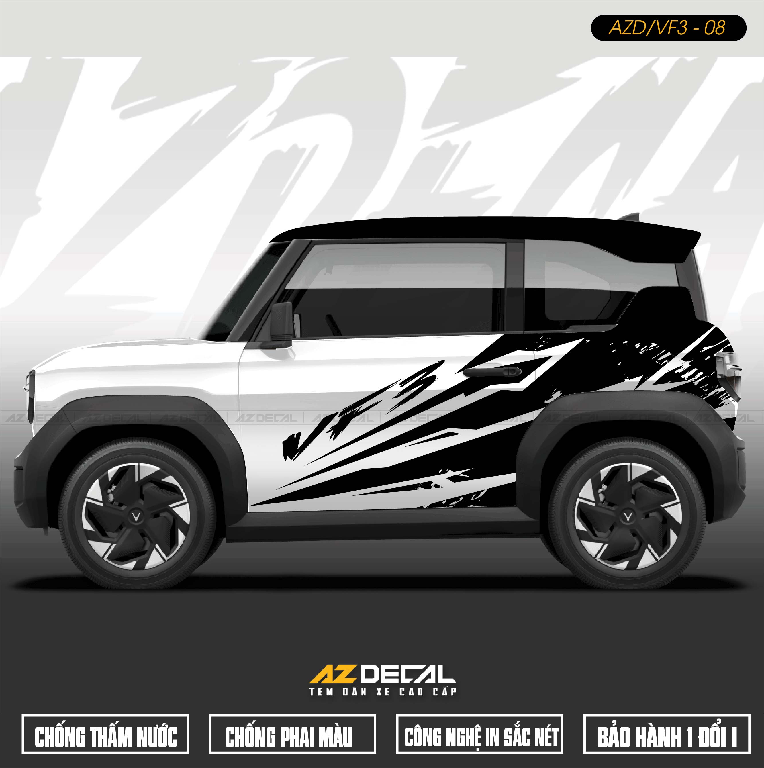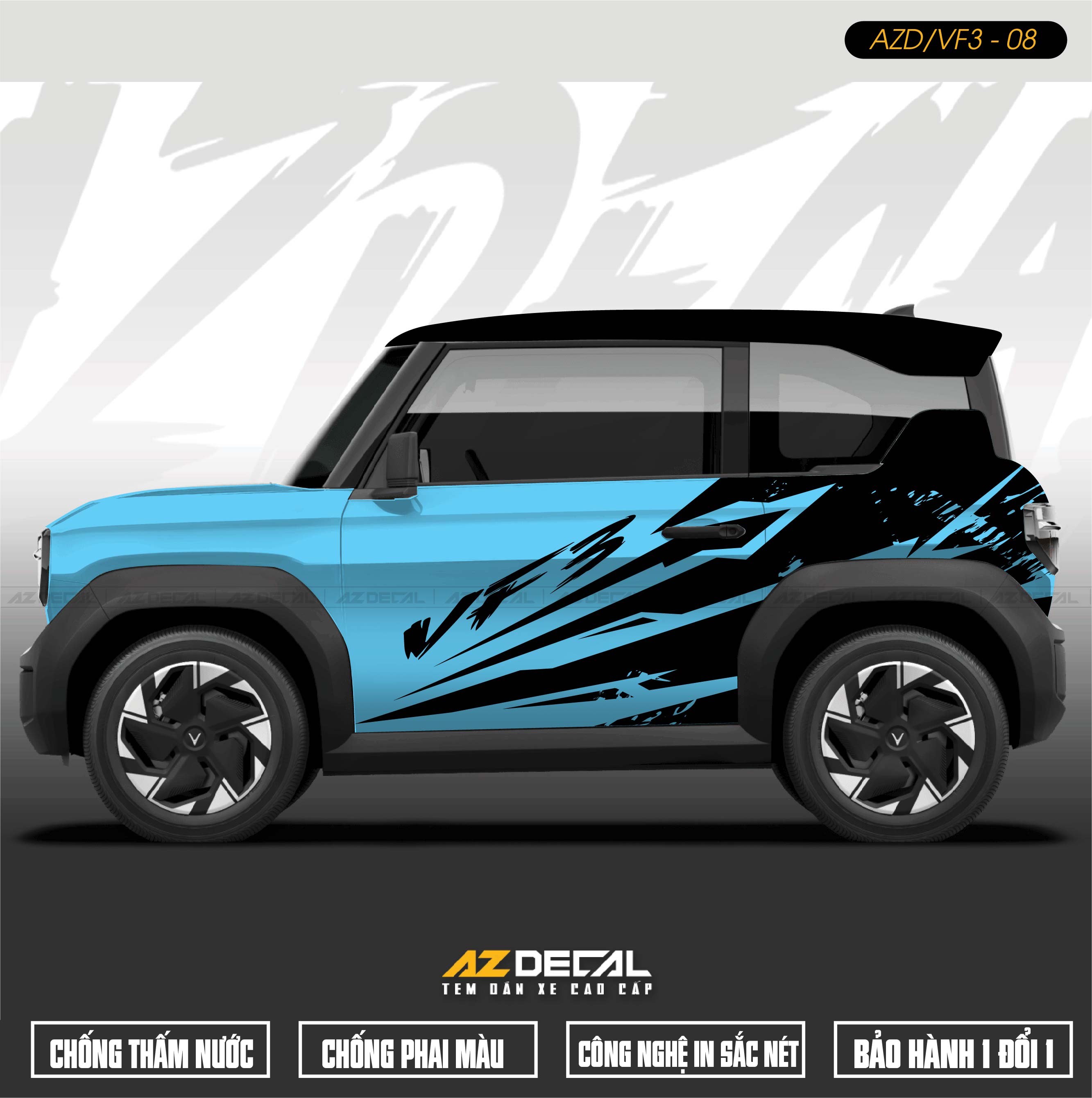 AZDECAL là đơn vị hàng đầu cung cấp các dịch vụ dán xe máy - ô tô, tem xe Vinfast VF3 tại Hà Nội, TPHCM, Đà Nẵng,... Đội ngũ thiết kế và thi công chuyên nghiệp, giàu kinh nghiệm. Cam kết: