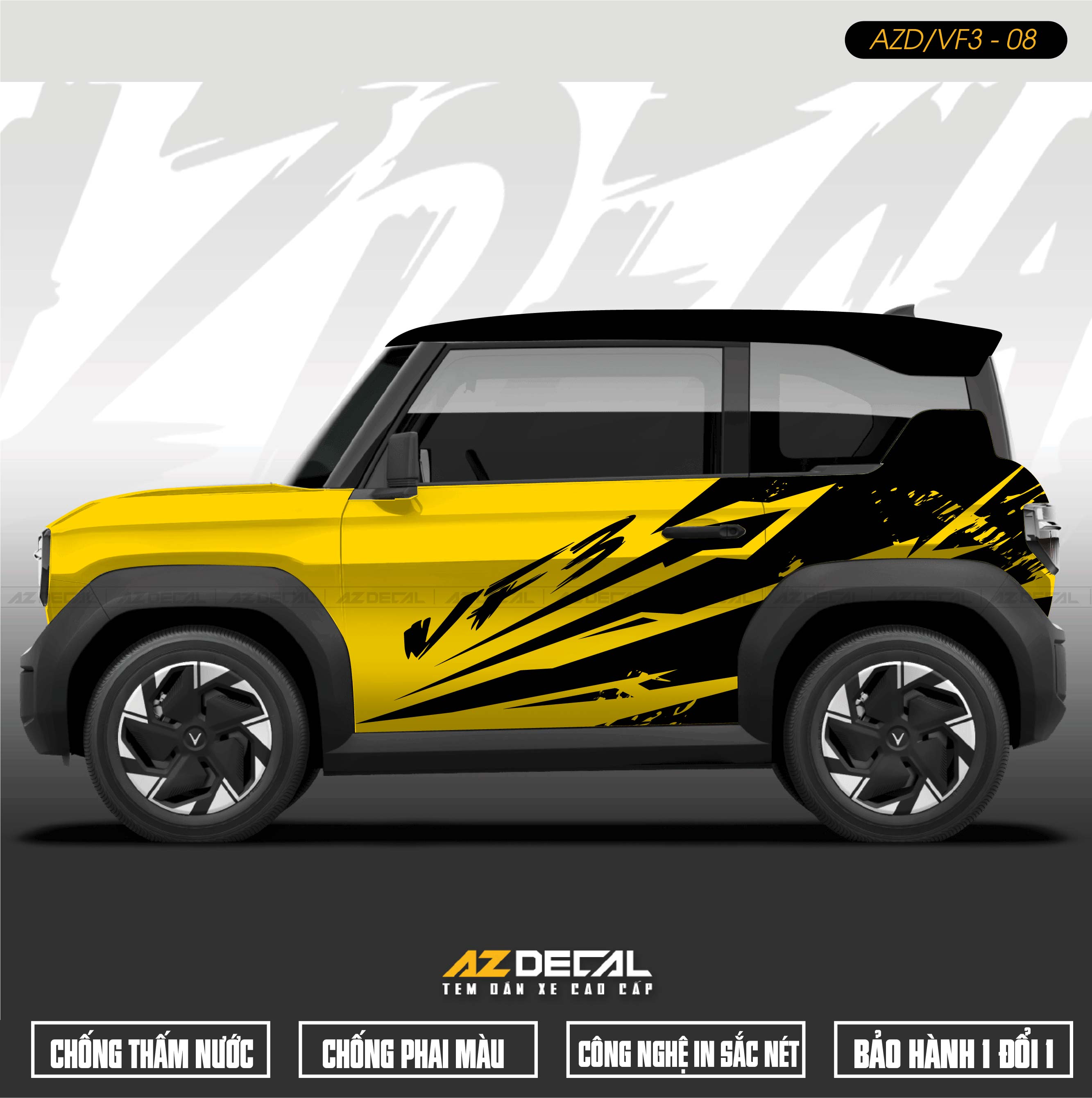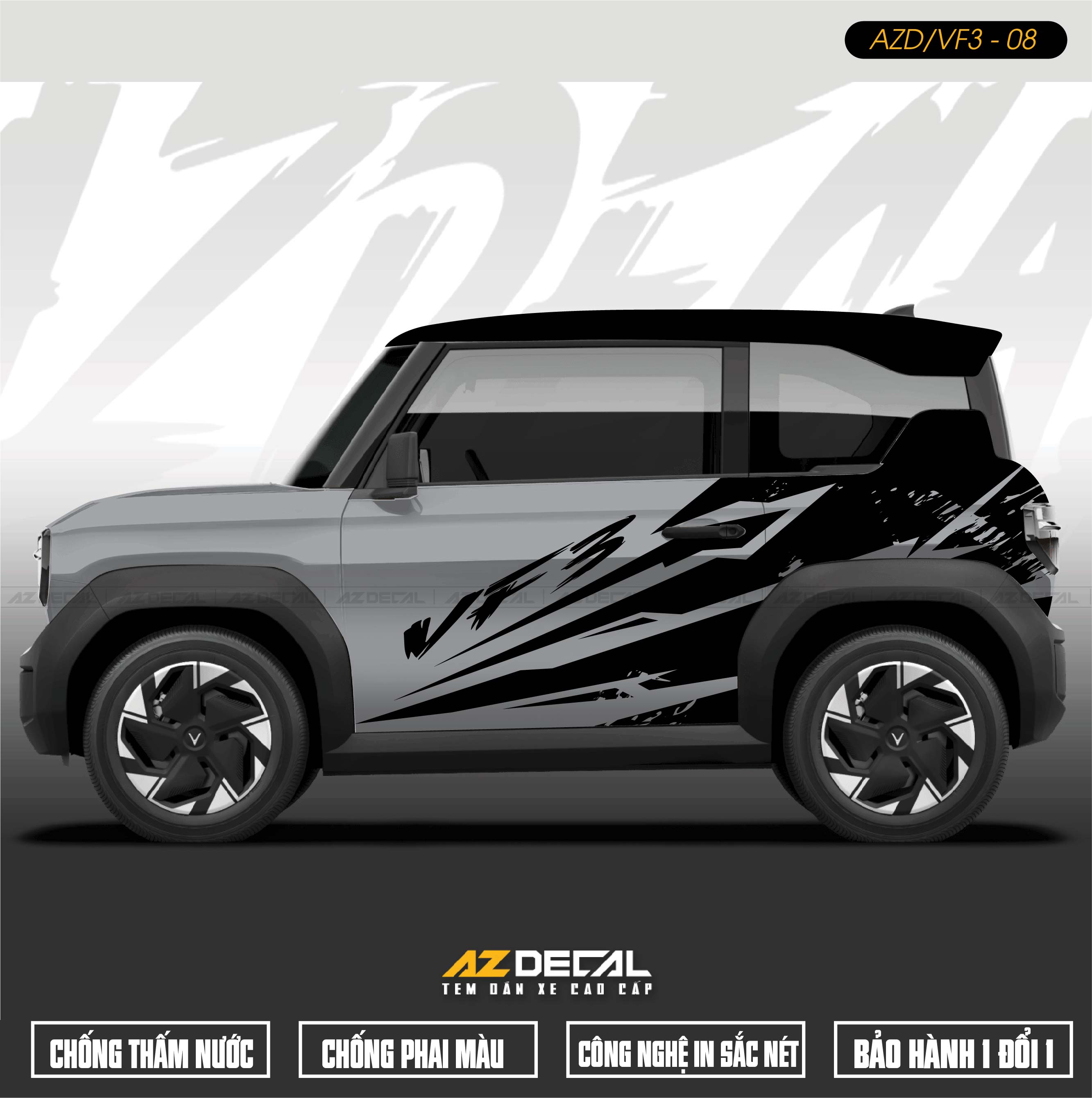 Dán tem Xe Vinfast VF3 - nâng tầm phong cách cho chiếc xe với những bộ tem đẹp độc mới lạ, thể thao, khỏe khoắn và ấn tượng. Mẫu mã đa dạng độc nhất được thiết kế và thi công tại AZDECAL.
