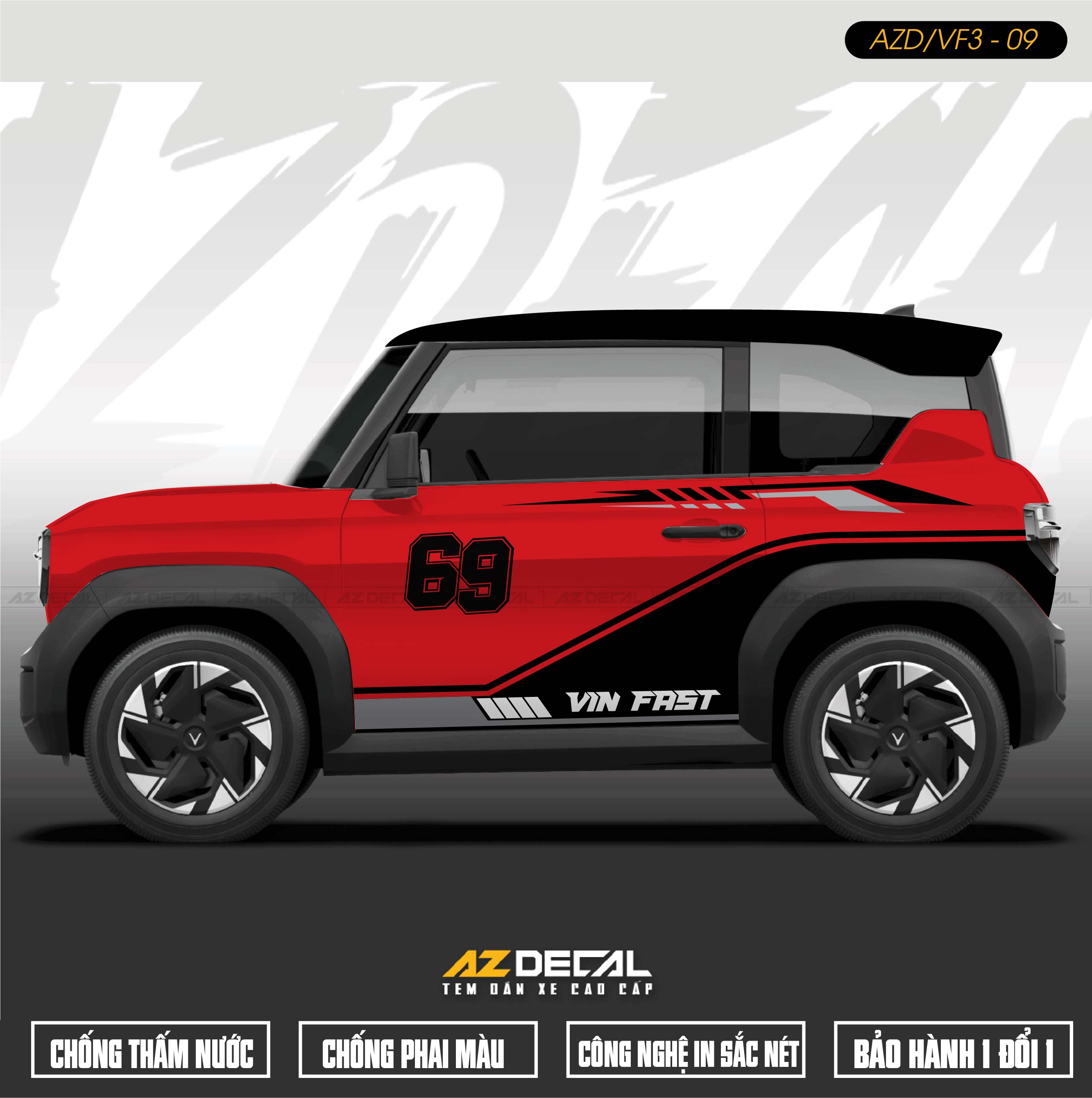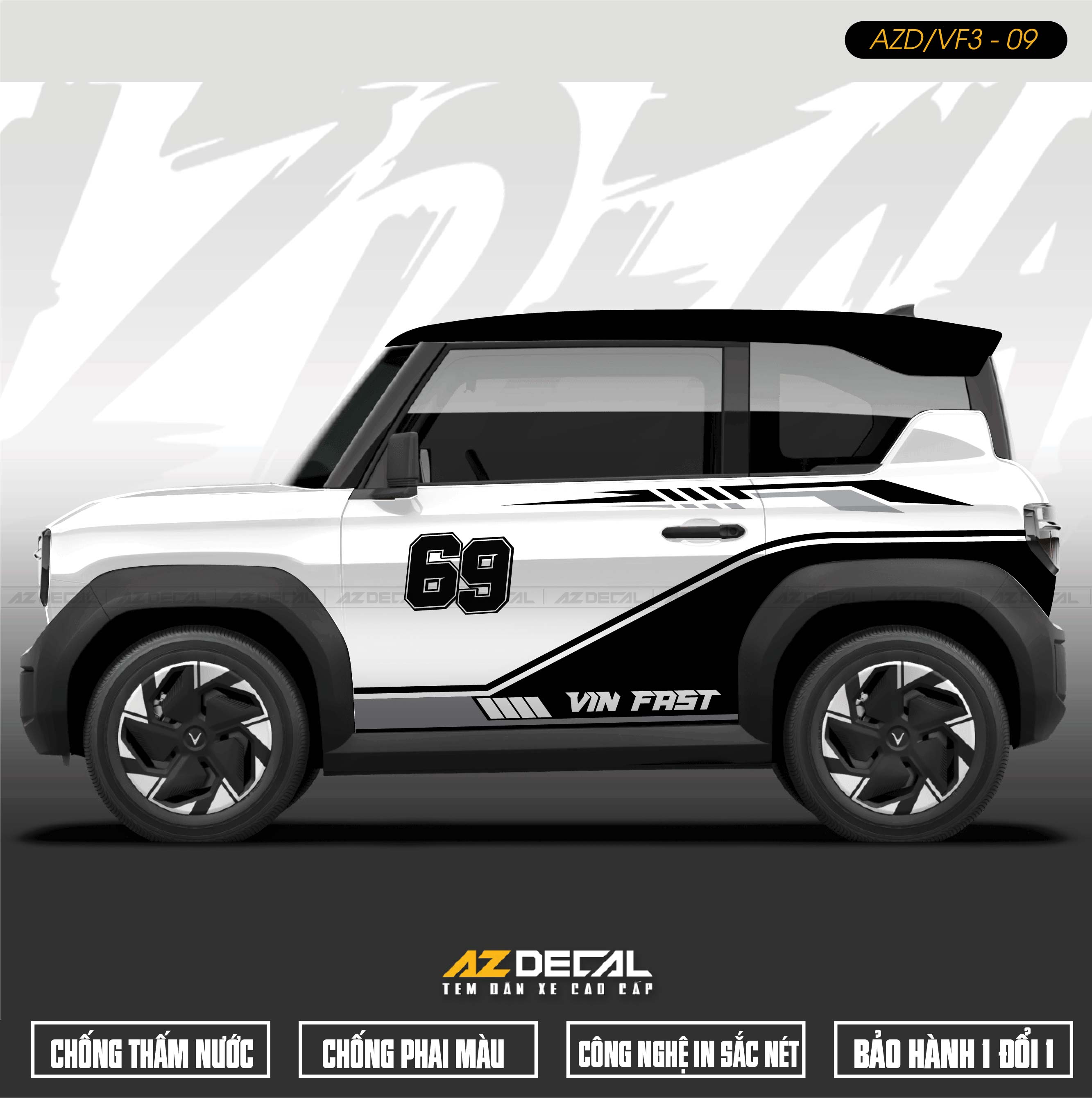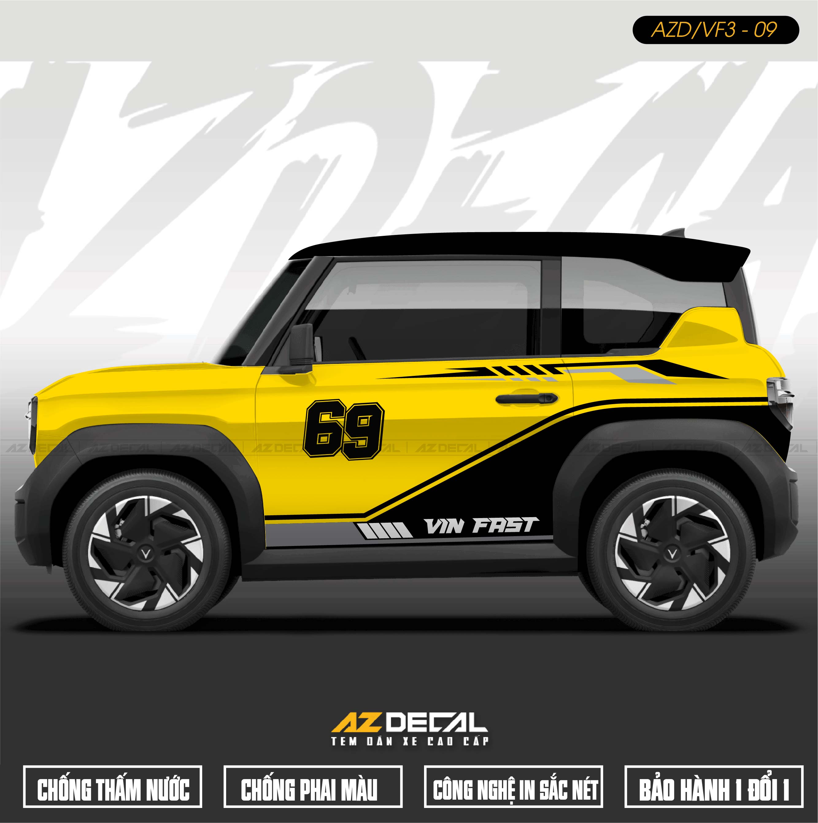 Dán tem Xe Vinfast VF3 - nâng tầm phong cách cho chiếc xe với những bộ tem đẹp độc mới lạ, thể thao, khỏe khoắn và ấn tượng. Mẫu mã đa dạng độc nhất được thiết kế và thi công tại AZDECAL.
