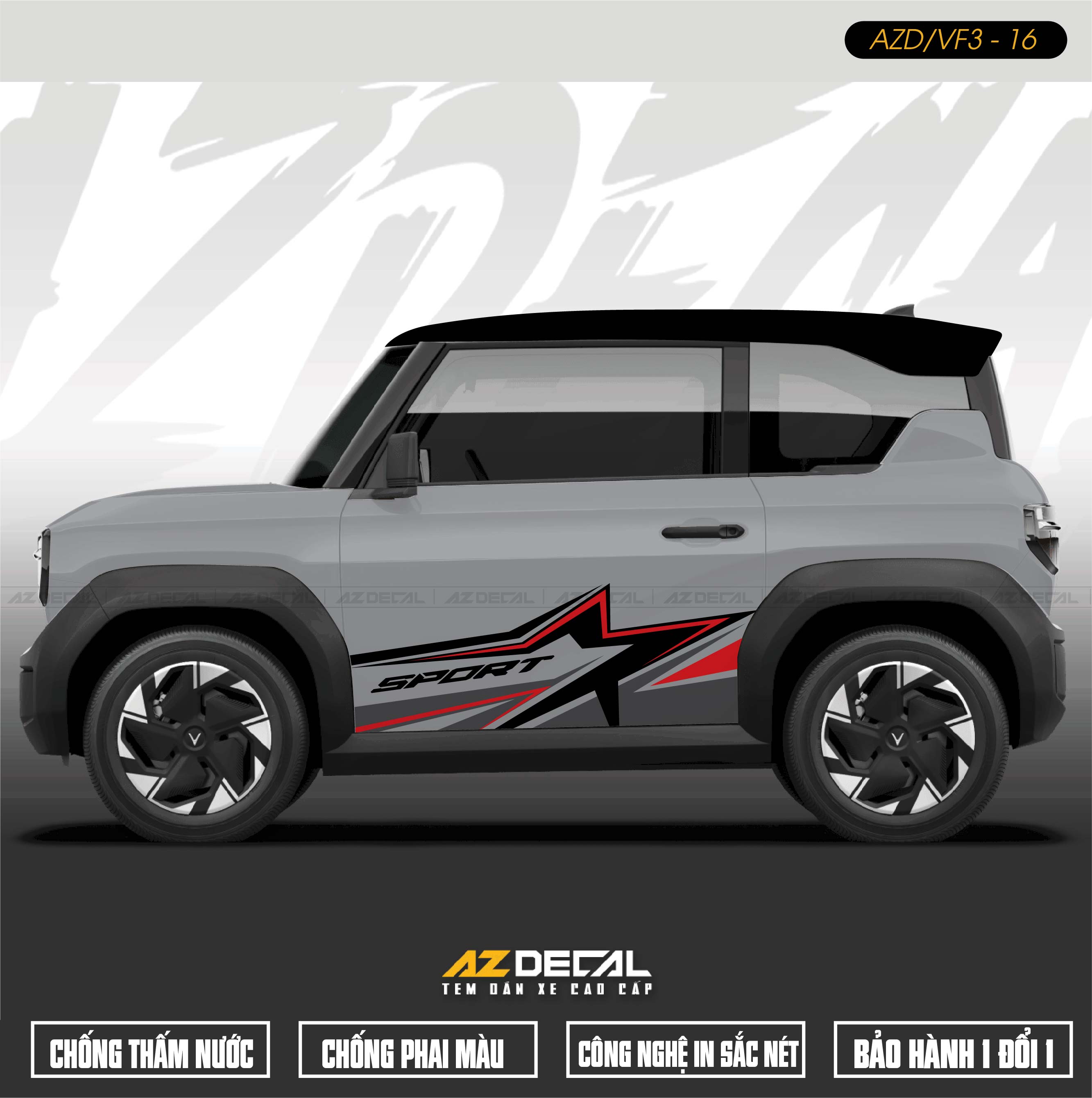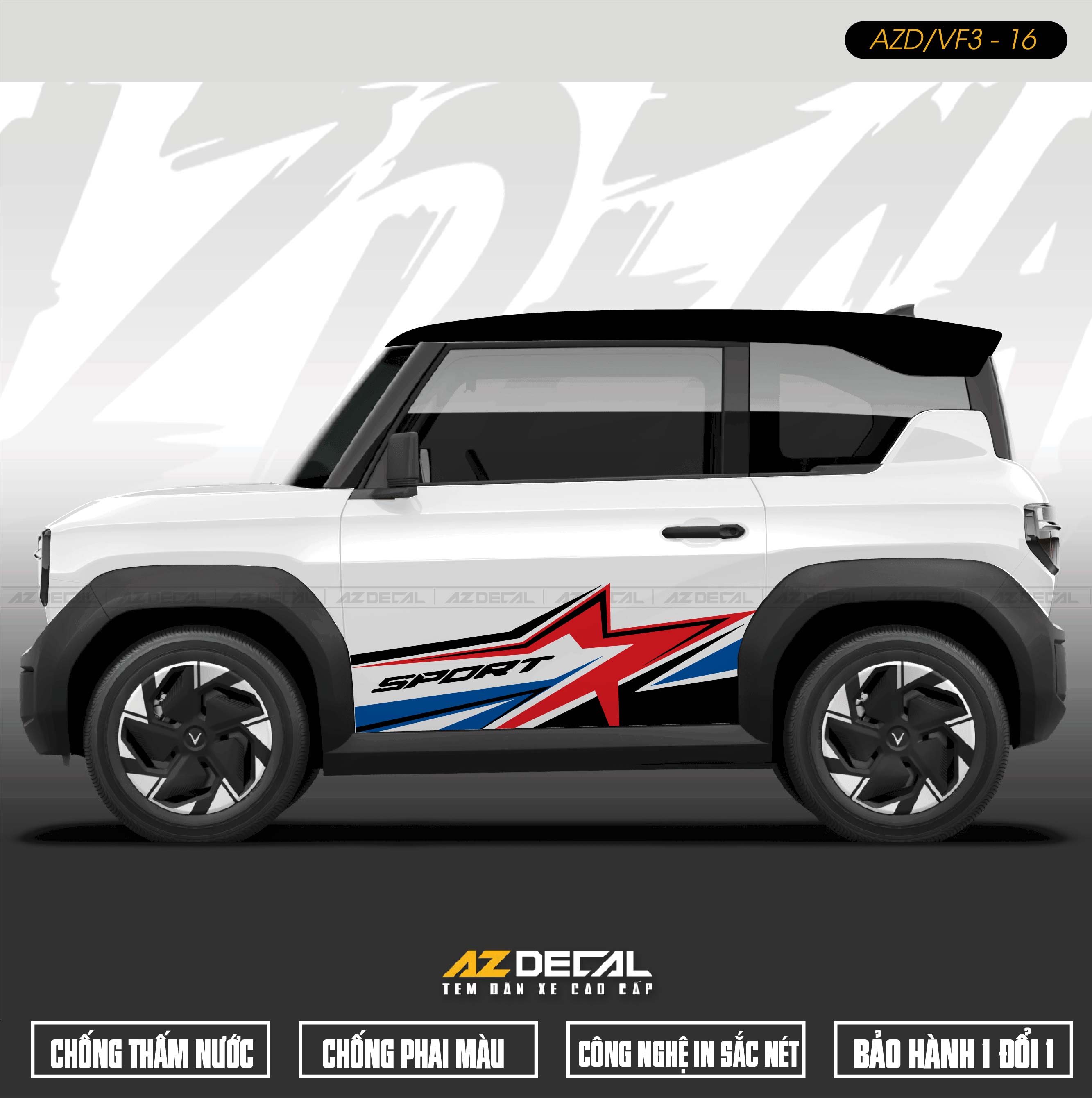 1. Dán tem xe Vinfast VF3 mẫu VF3-16 Sport