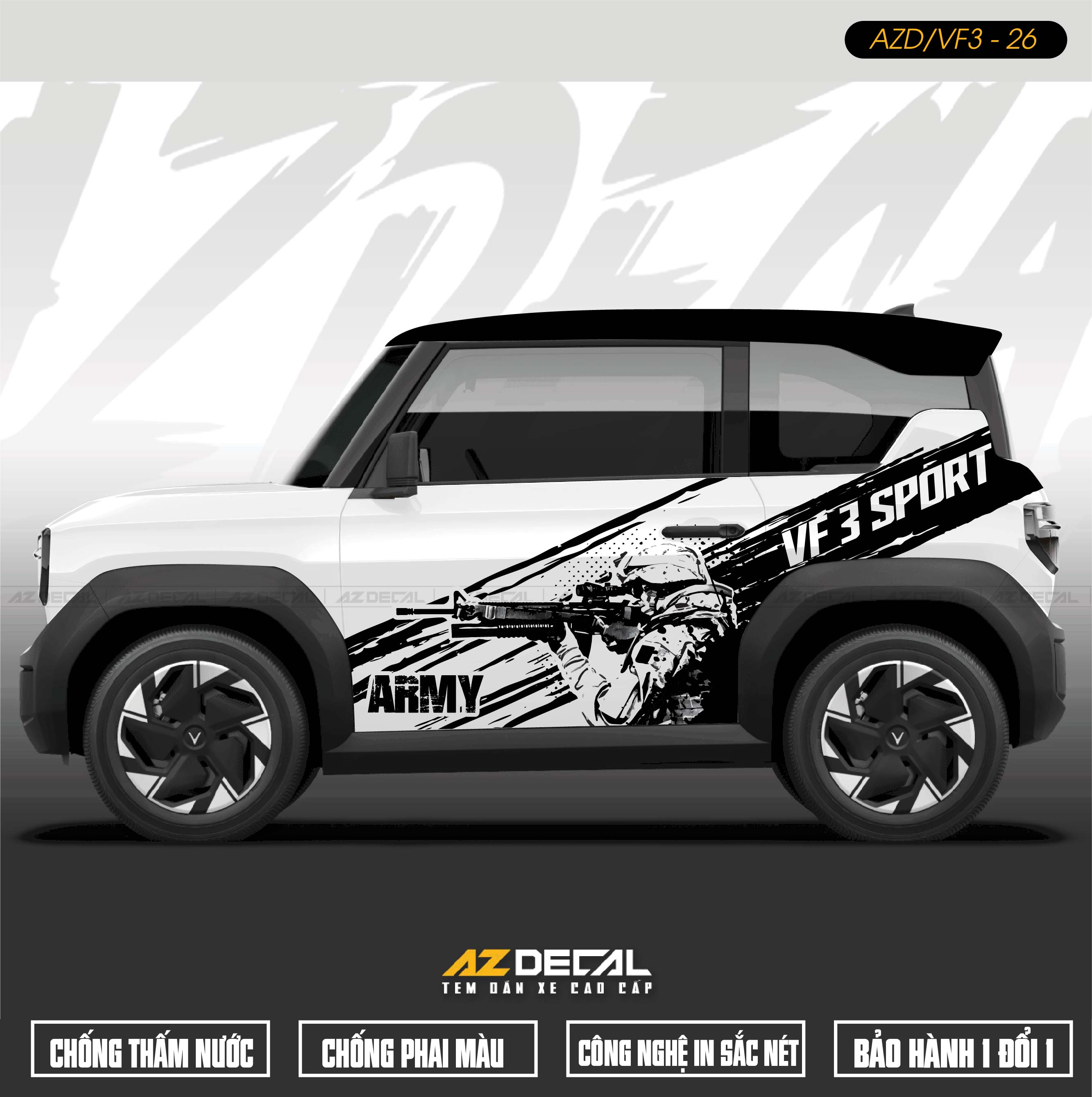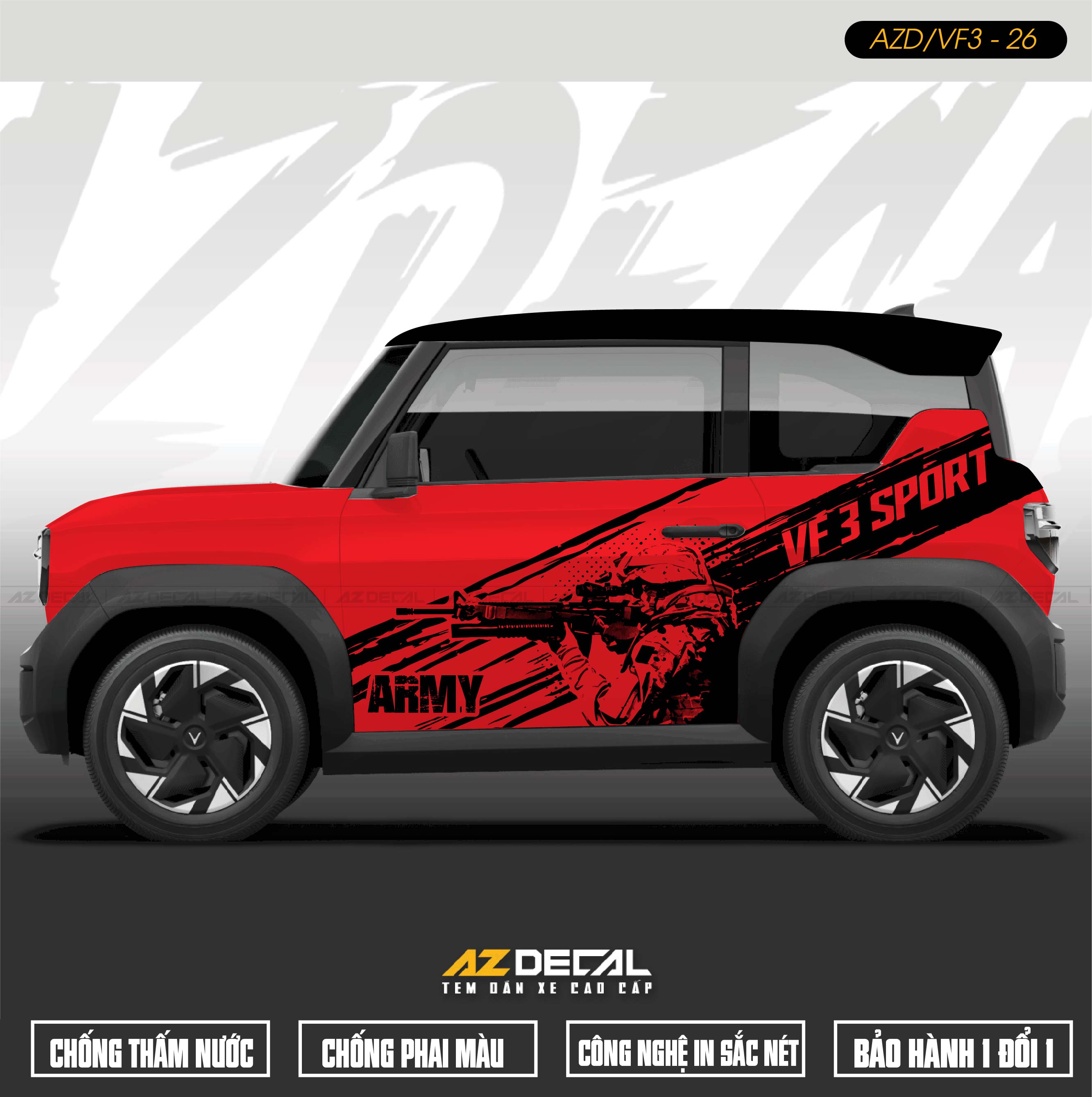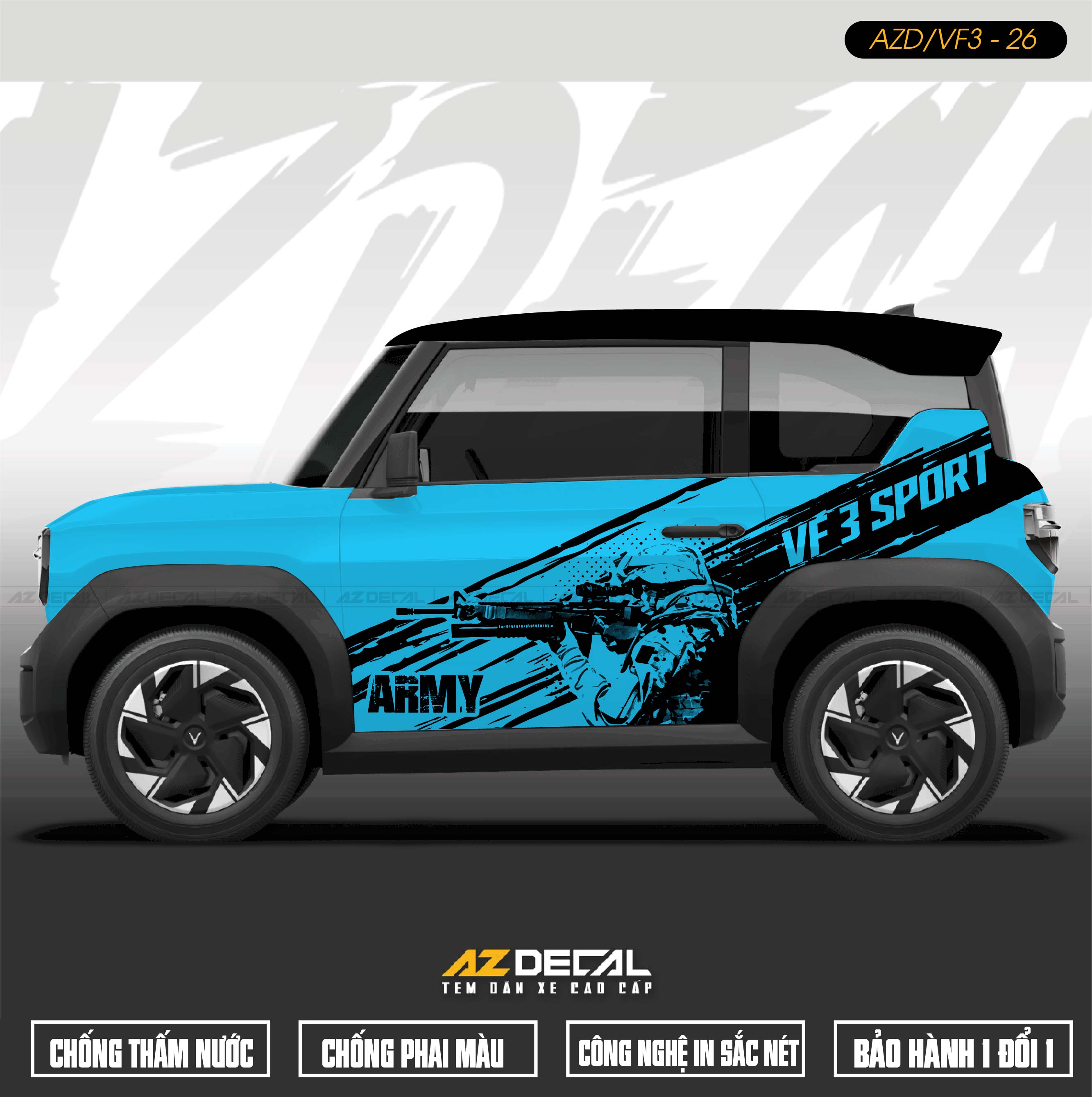 AZDECAL là đơn vị hàng đầu cung cấp các dịch vụ dán xe máy - ô tô, tem xe Vinfast VF3 tại Hà Nội, TPHCM, Đà Nẵng,... Đội ngũ thiết kế và thi công chuyên nghiệp, giàu kinh nghiệm. Cam kết: