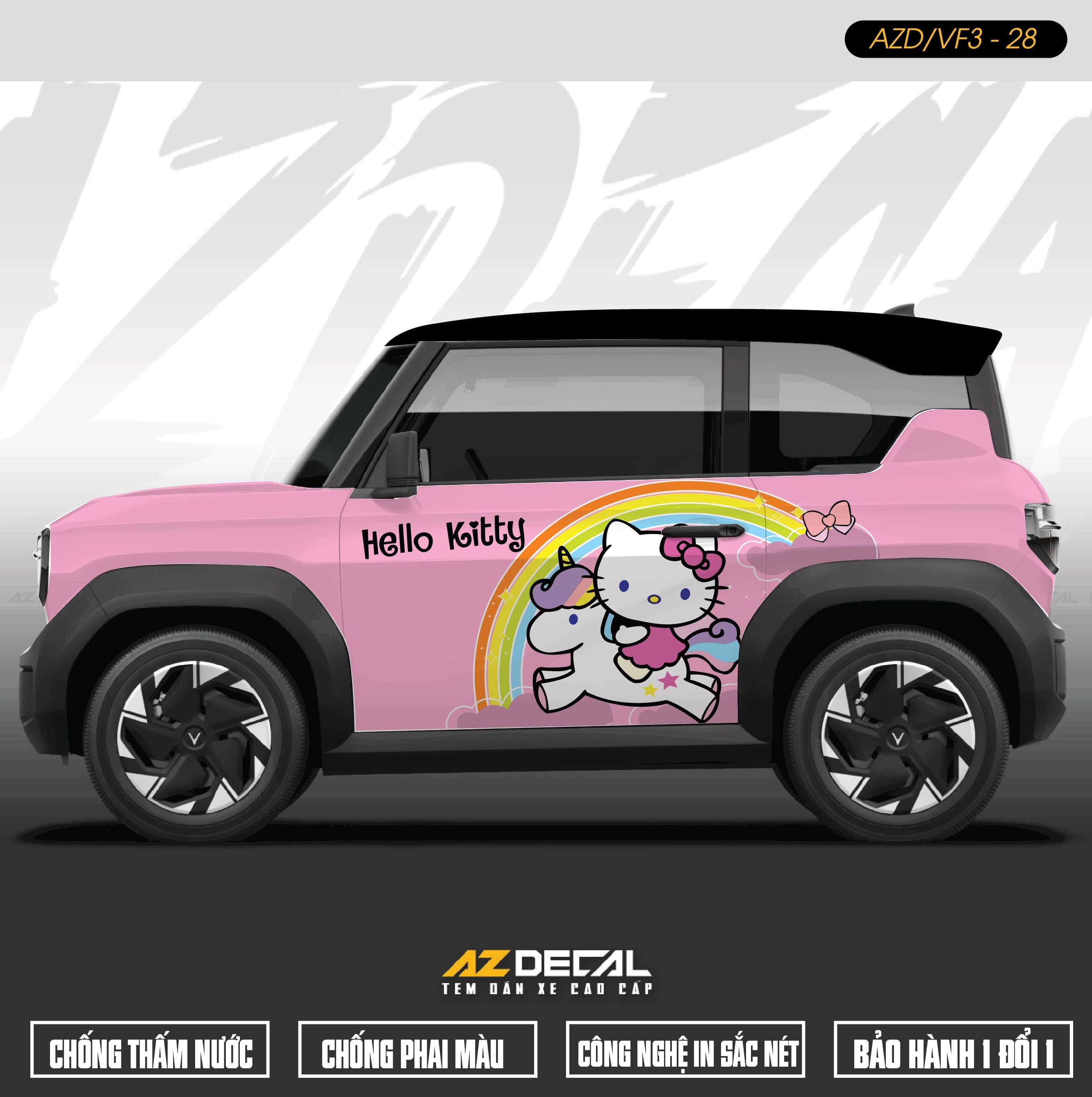 1. Dán tem xe Vinfast VF3 mẫu VF3-28 Hello Kitty