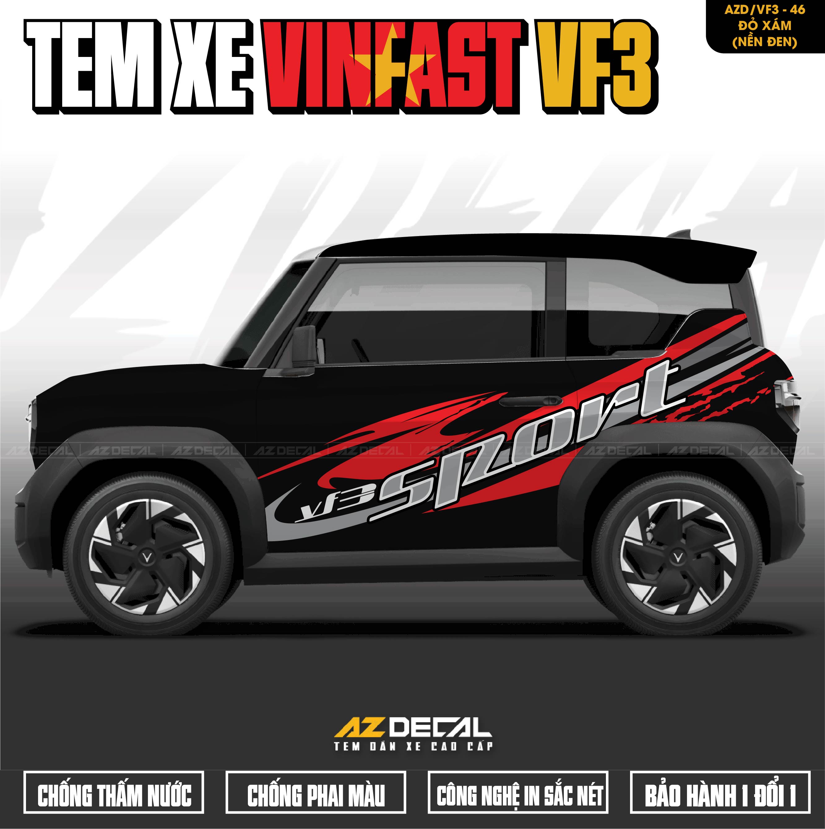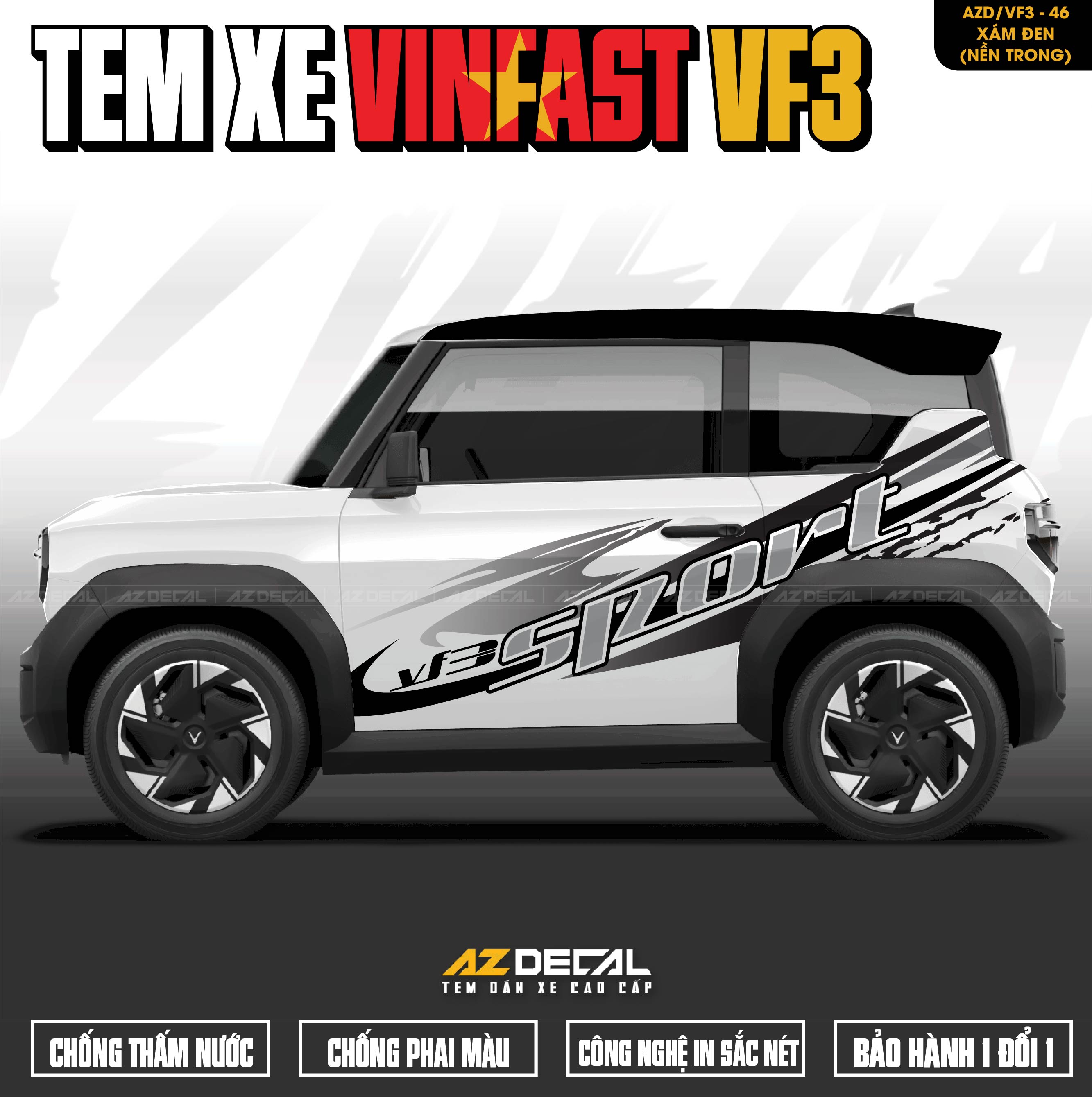1. Dán tem xe Vinfast VF3 mẫu VF3-46 Sport