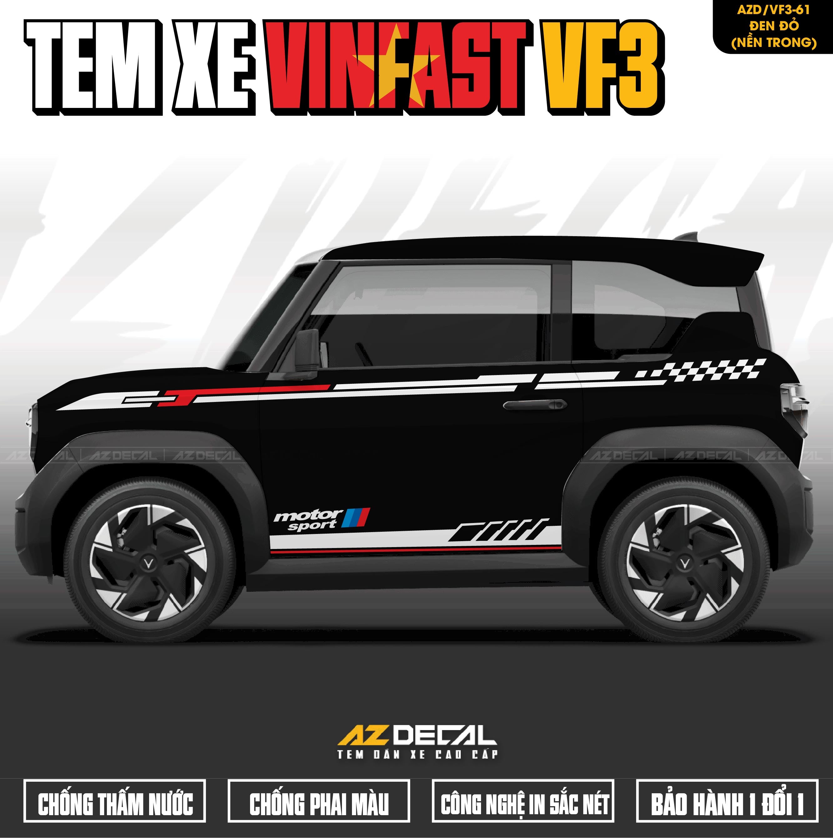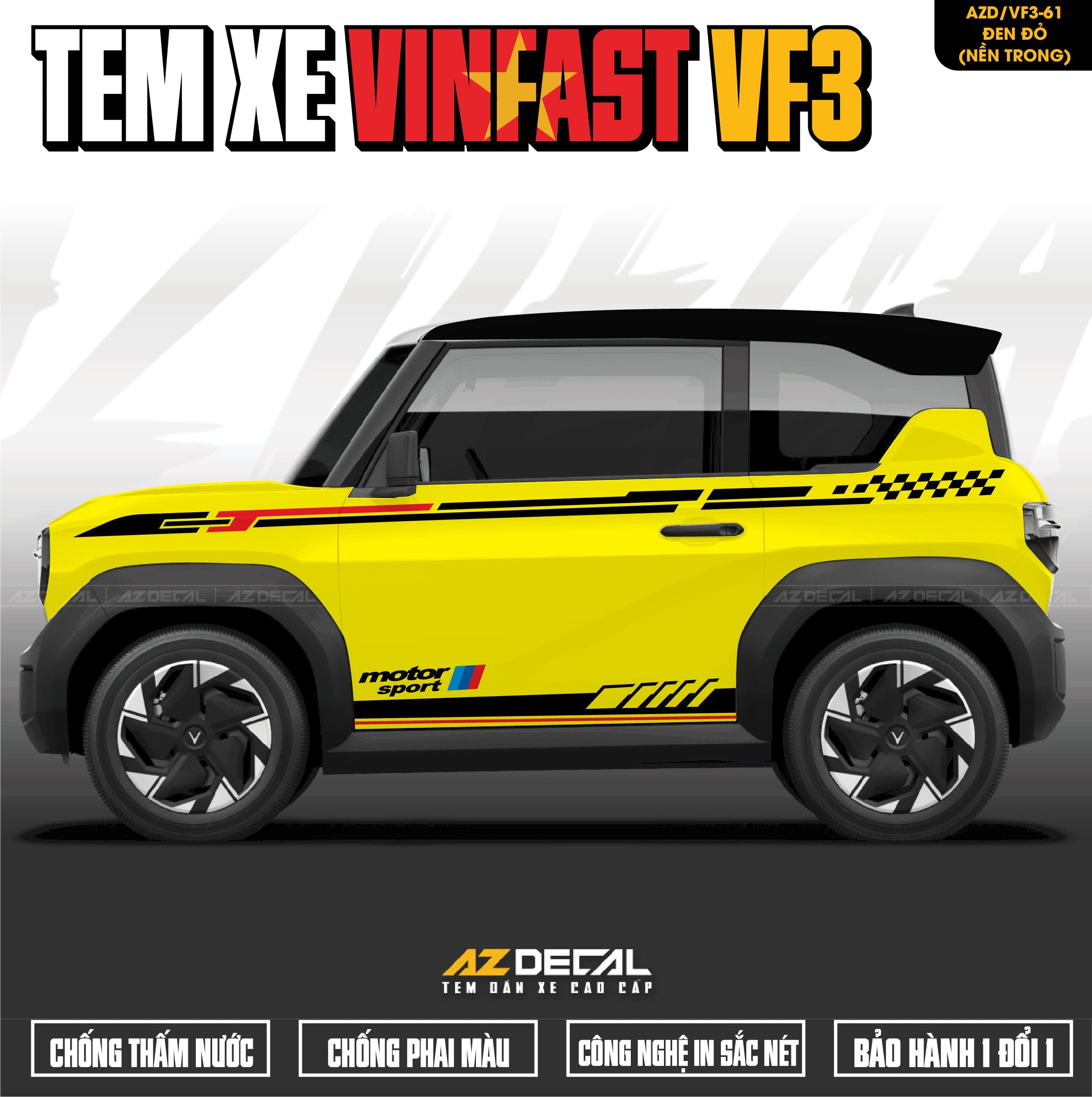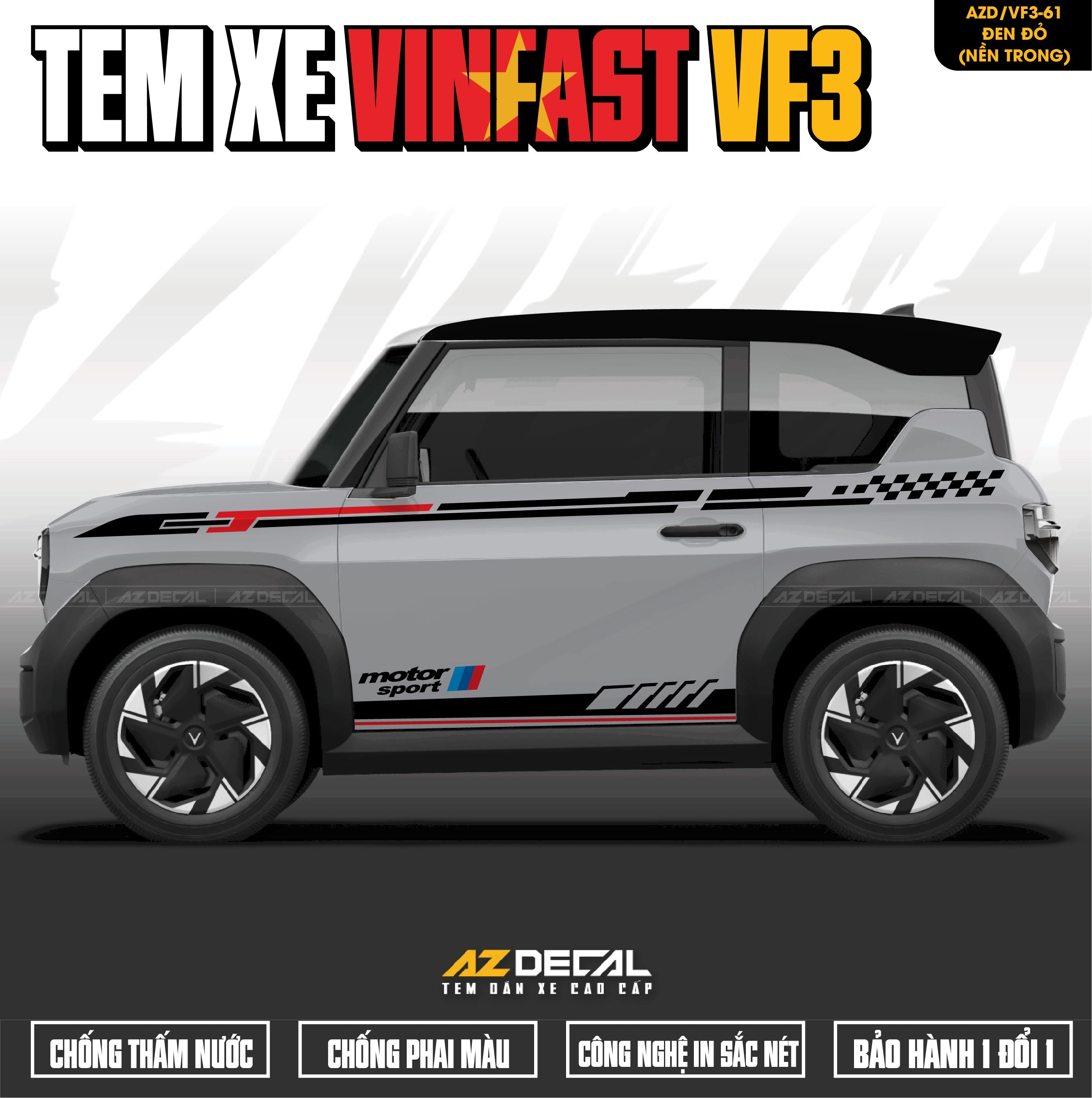 Dán tem Xe Vinfast VF3 - nâng tầm phong cách cho chiếc xe với những bộ tem đẹp độc mới lạ, thể thao, khỏe khoắn và ấn tượng. Mẫu mã đa dạng độc nhất được thiết kế và thi công tại AZDECAL.