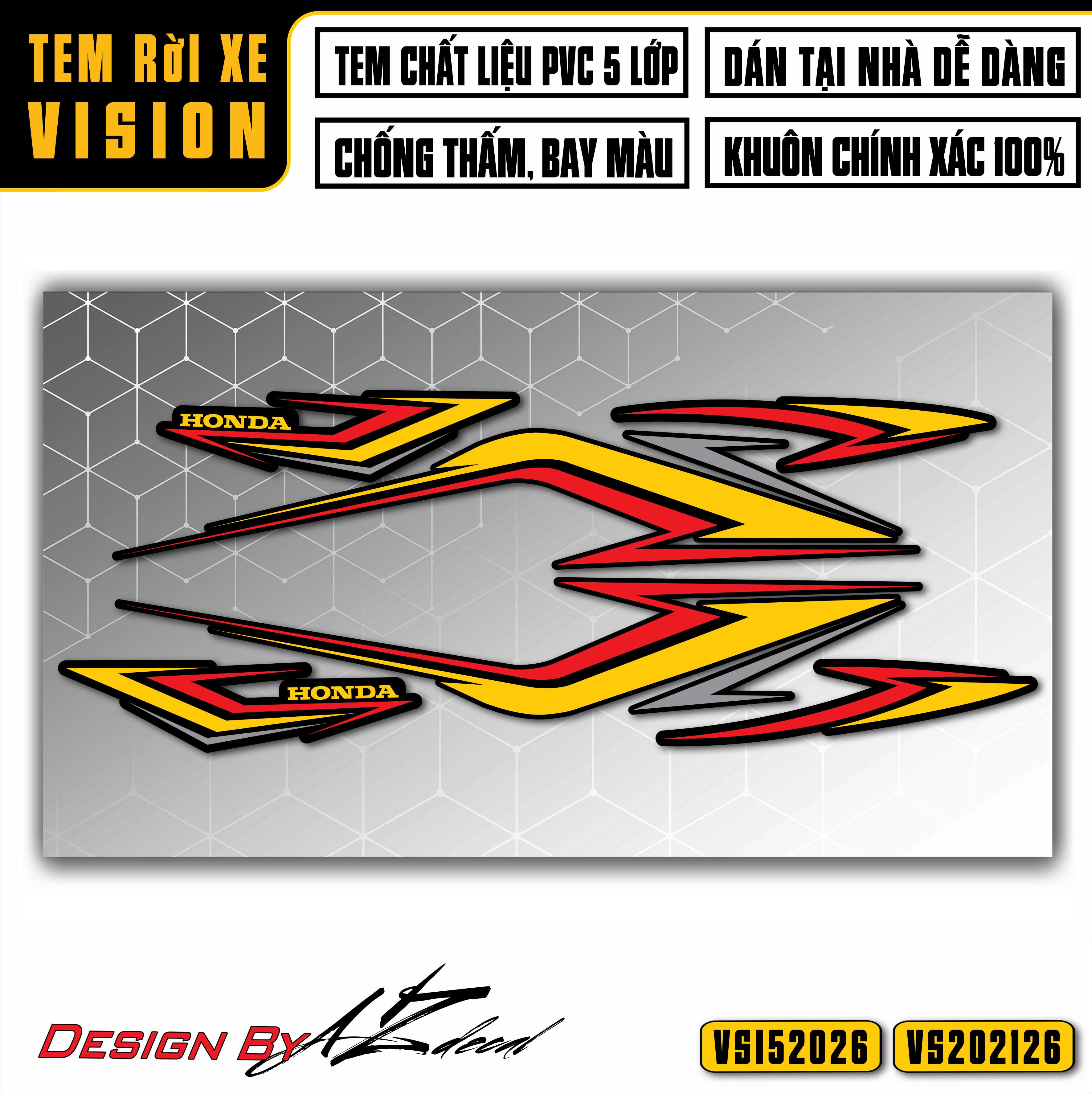 Tem xe Vision mẫu tem chỉ VS26 đỏ vàng dán xe đen