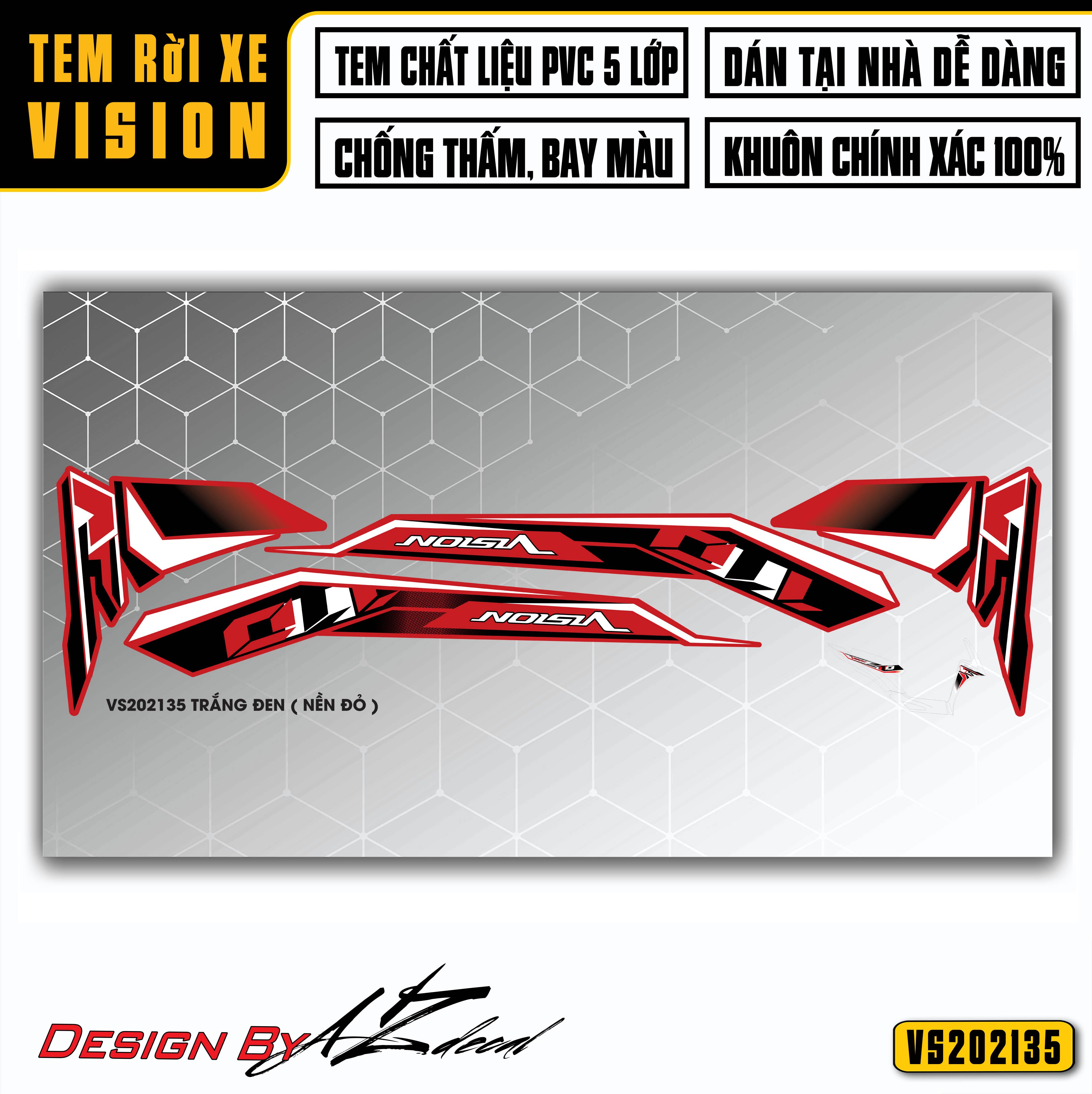 Tem xe Vision đẹp màu đỏ đen nền trắng
