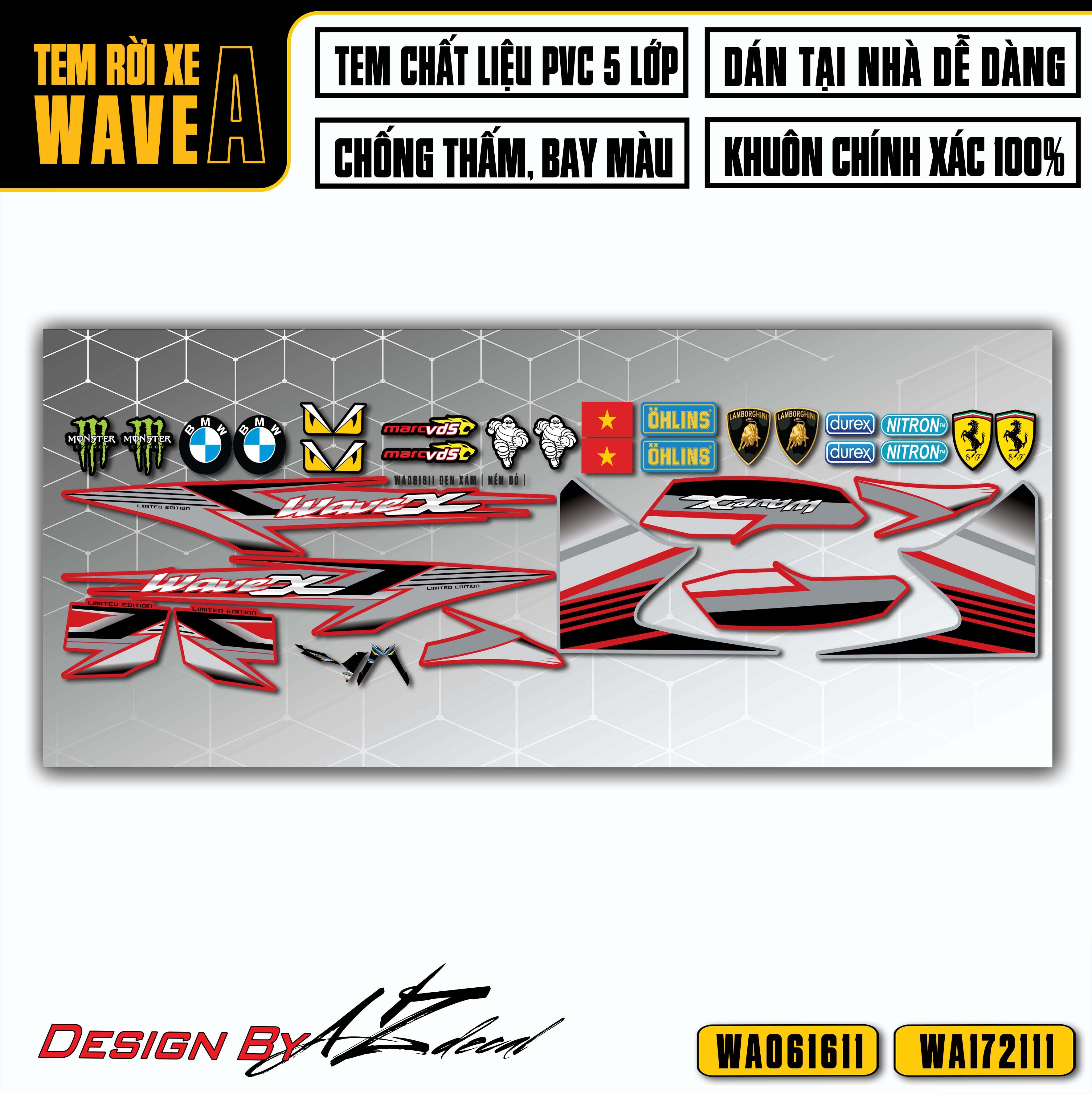 Tem dán xe Wave A 110 100 đỏ mẫu WA11