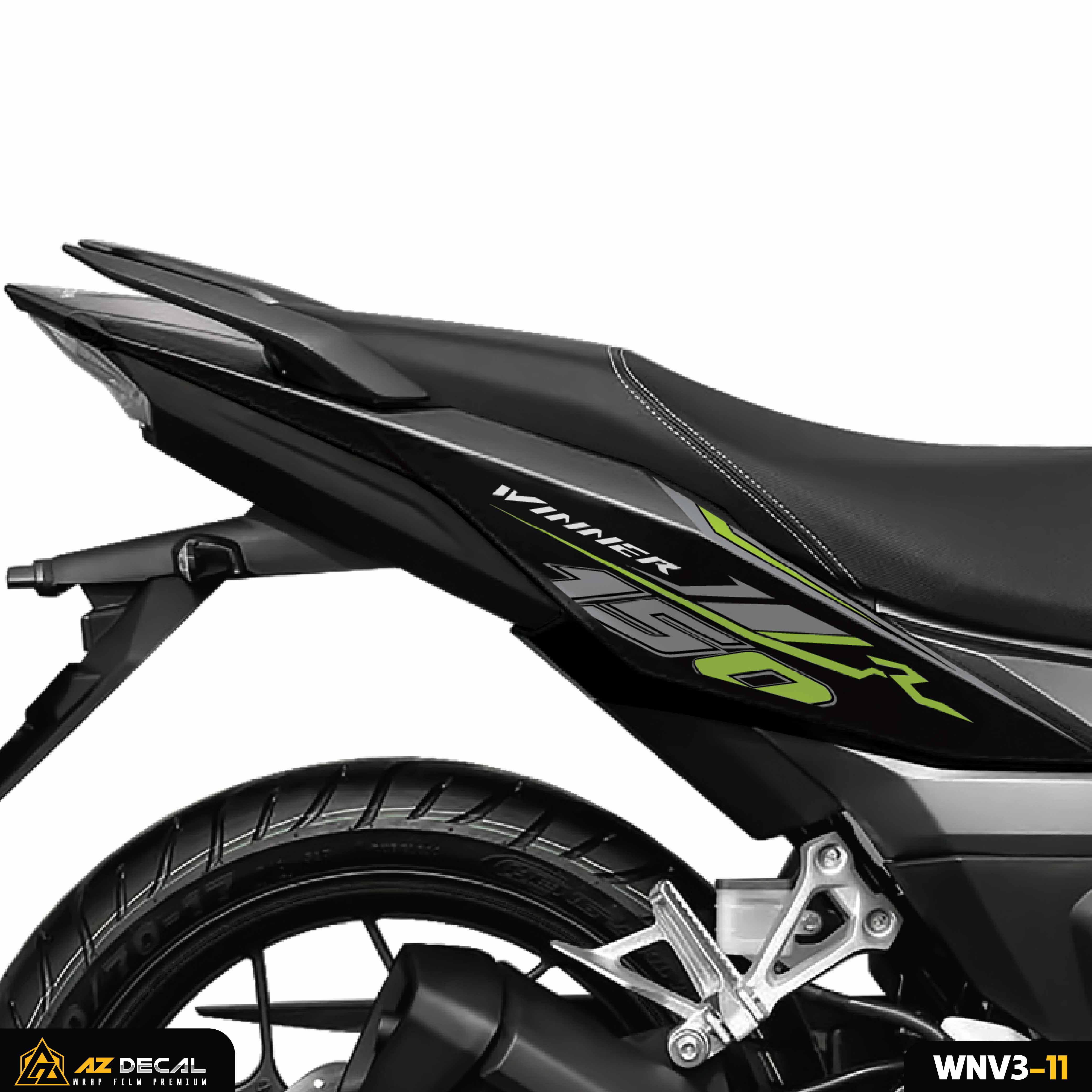 Chi tiết mẫu tem dán xe Winner v3 màu xanh xám (nền đen)