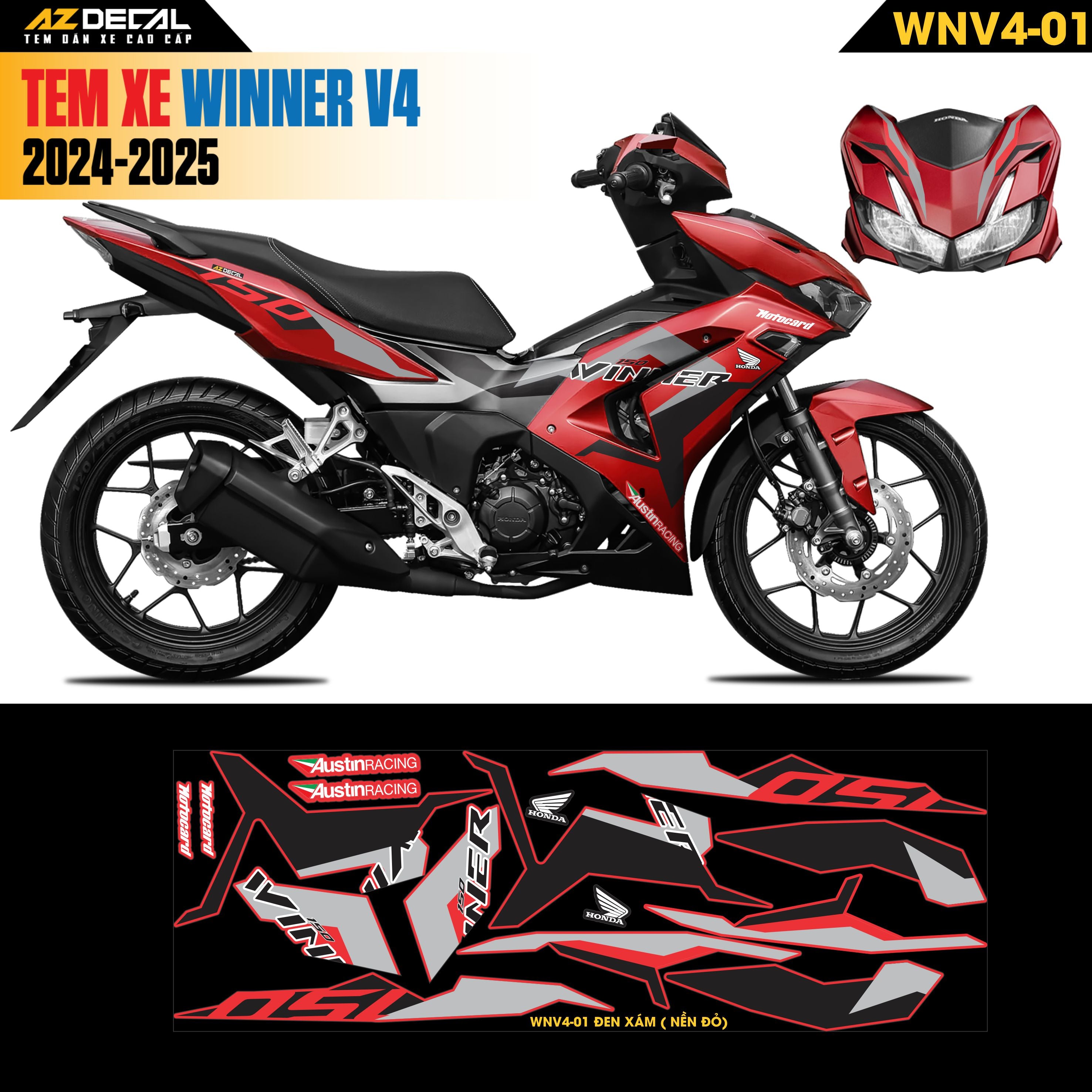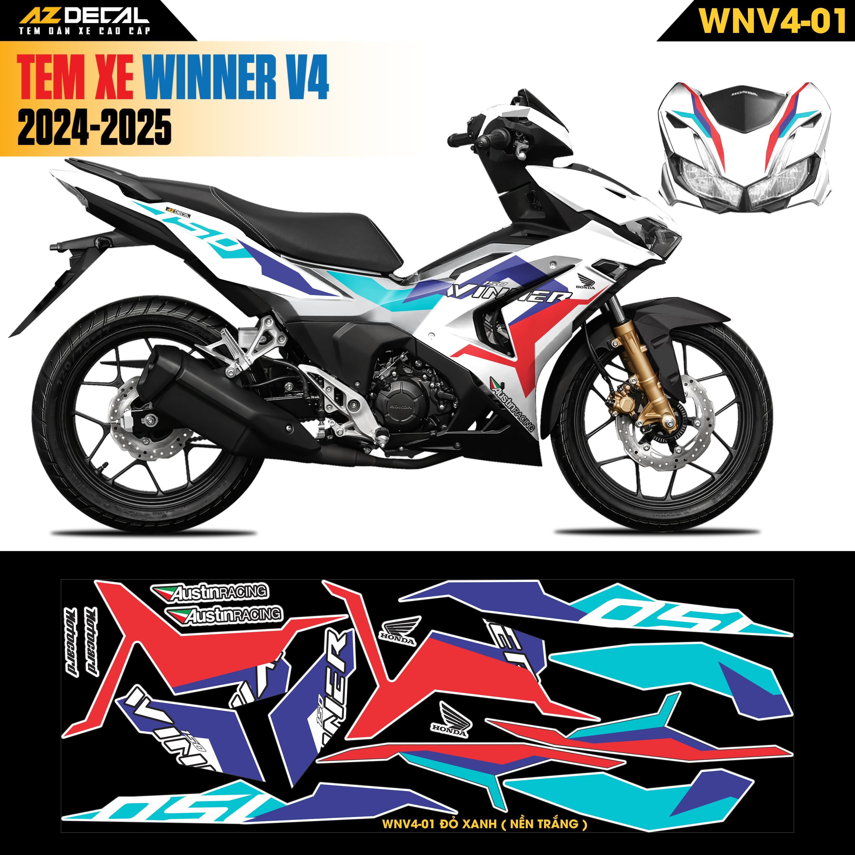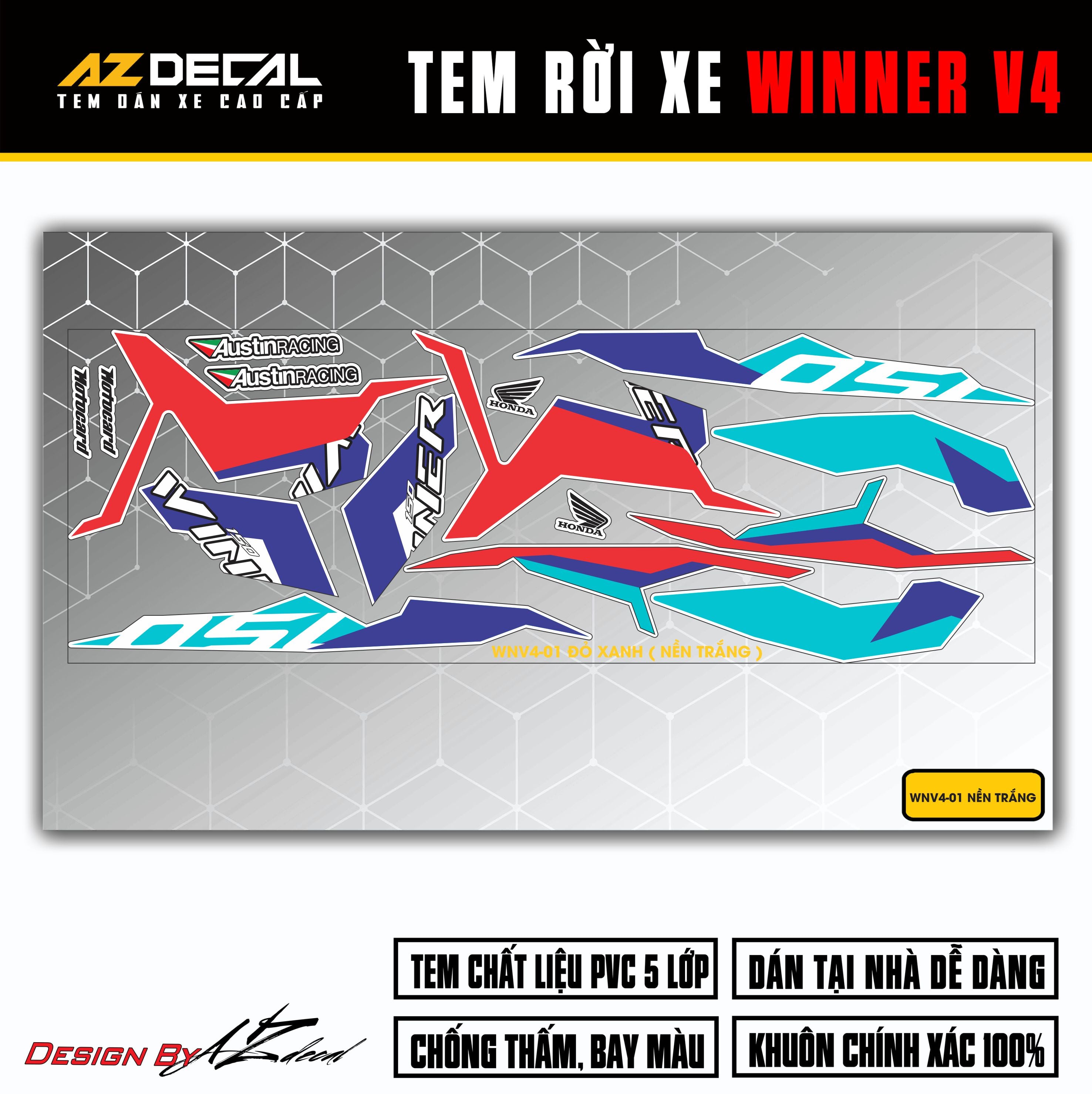Với công nghệ sản xuất hiện đại, Azdecal tự hào cho ra đời những bộ tem Winner X 2024 (Winner V4) cao cấp phủ màng Laminating với ưu điểm: